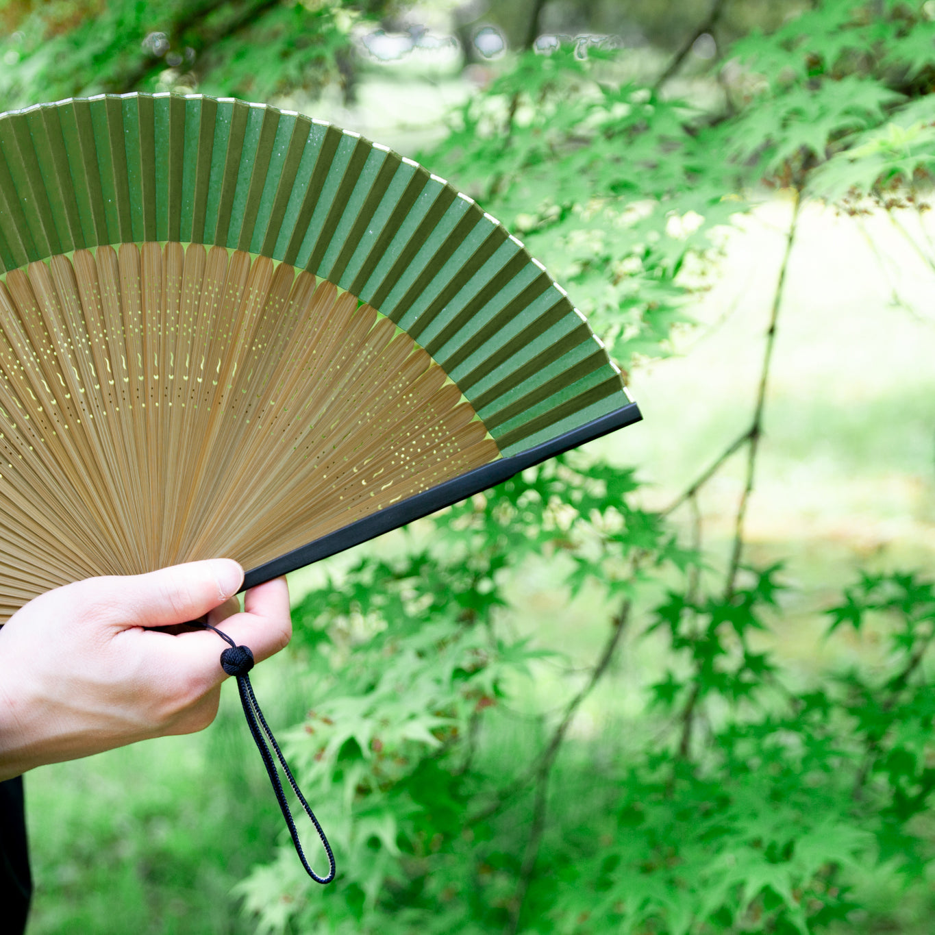 800年以上の歴史を持つ京都伝統の「黒谷和紙」を使用した京扇子。黒谷和紙は、京都府綾部市黒谷町・八代町周辺で作られる純粋な手漉き和紙です。破れにくく丈夫なため、扇子との相性は抜群。