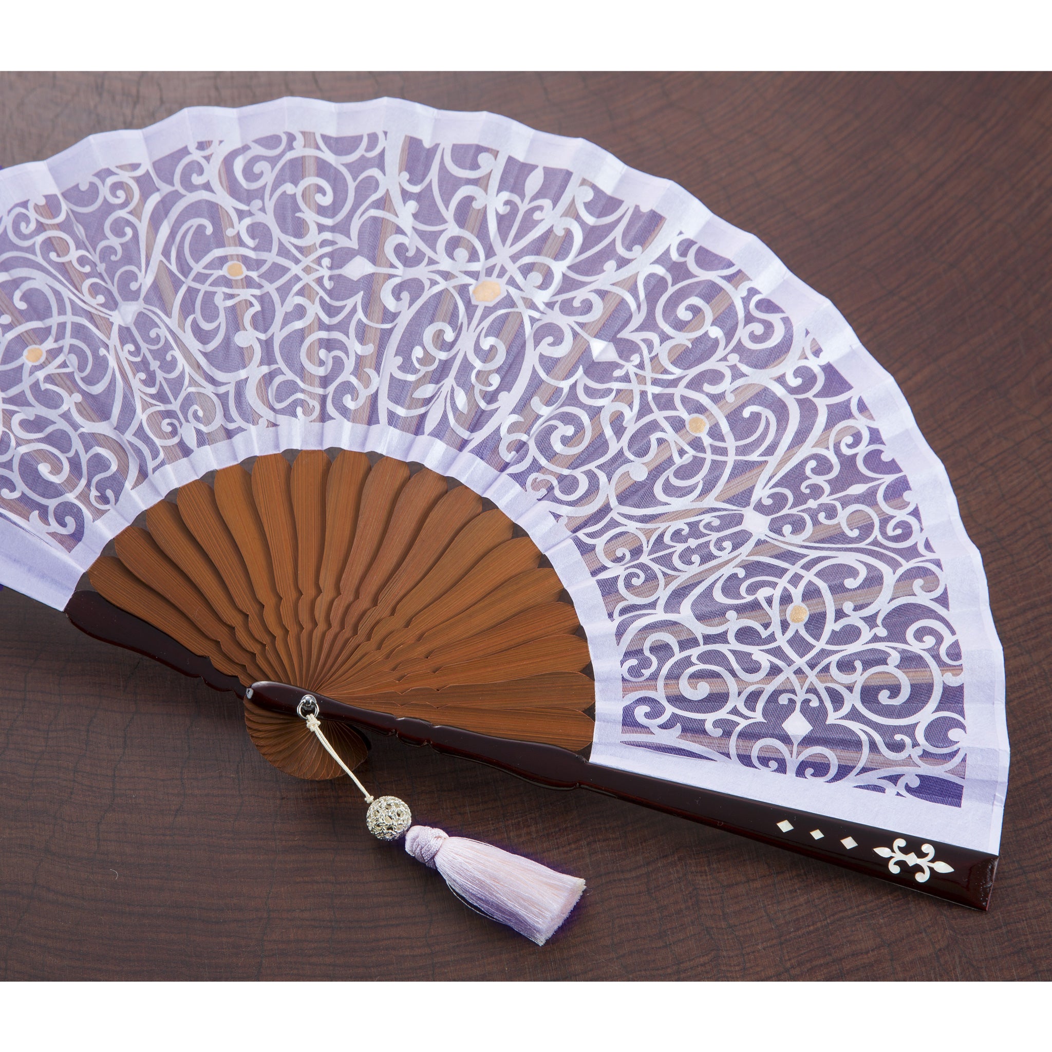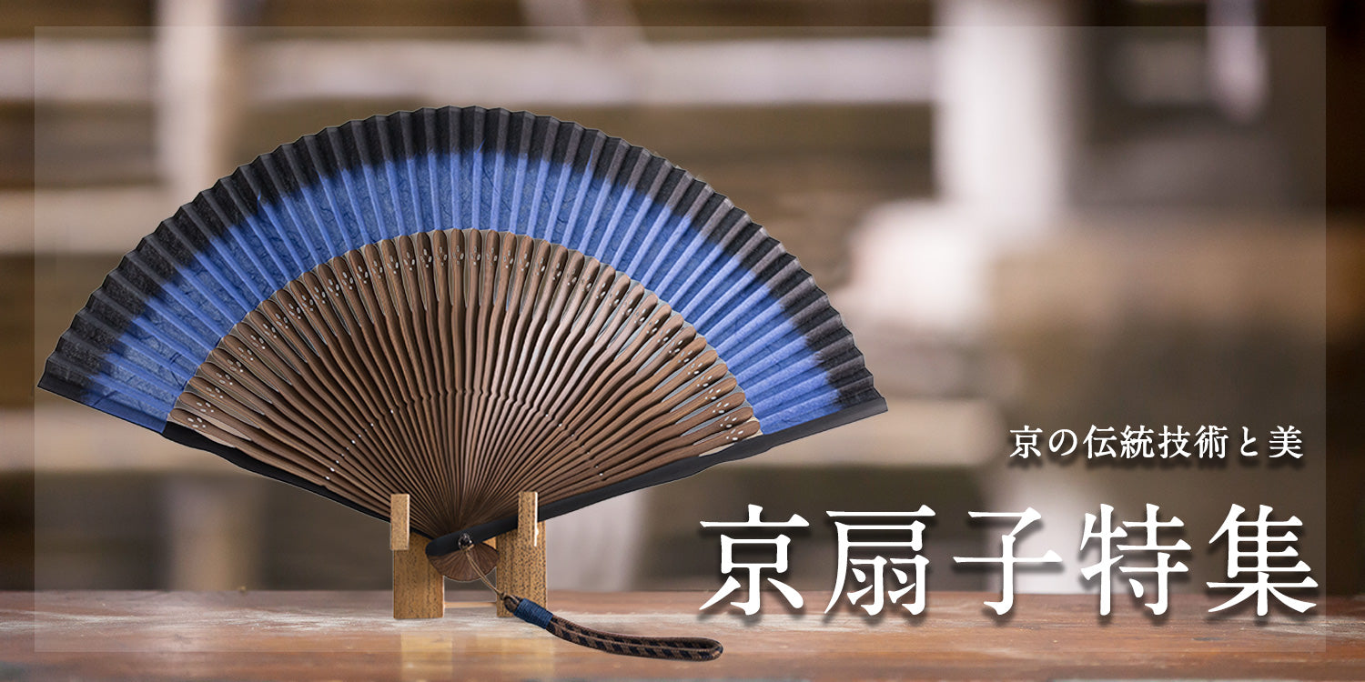 京扇子は、日本製の素材を用いて京都を中心に作られている扇子のことです。多くの職人たちにより分業で行われる京扇子づくりの制作工程数は八十八にもなります。美しさ・手へのなじみやすさ・しなやかな風が魅力です。