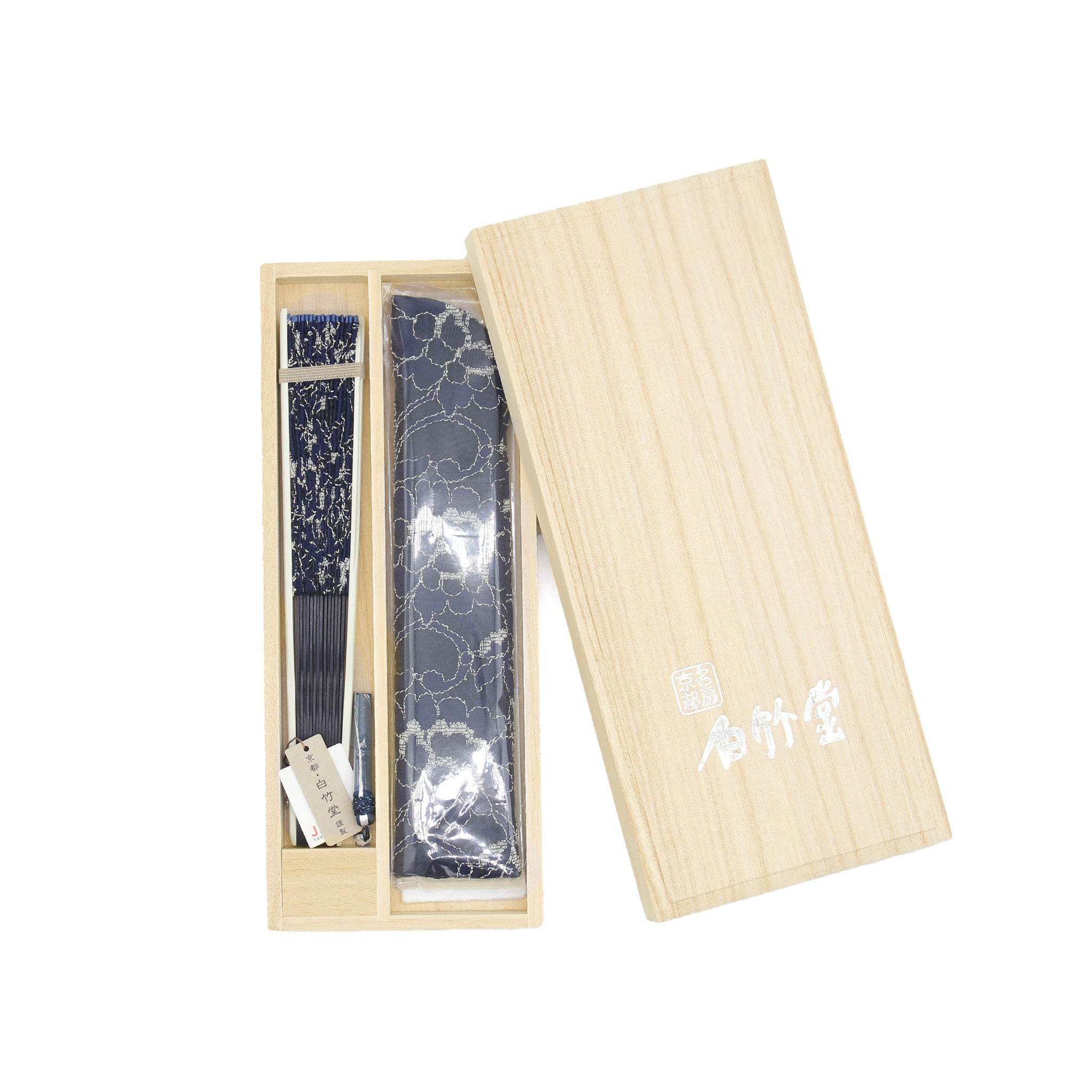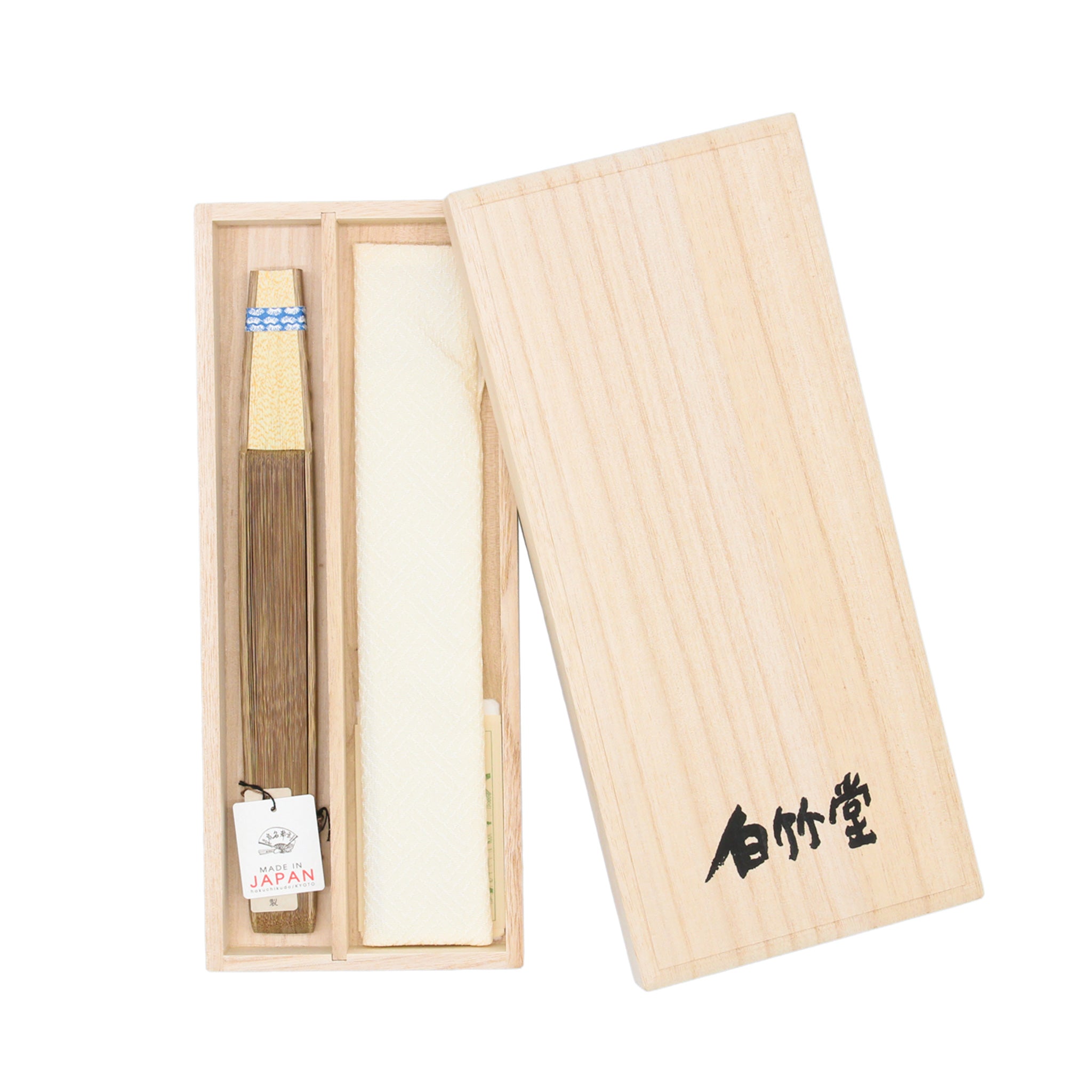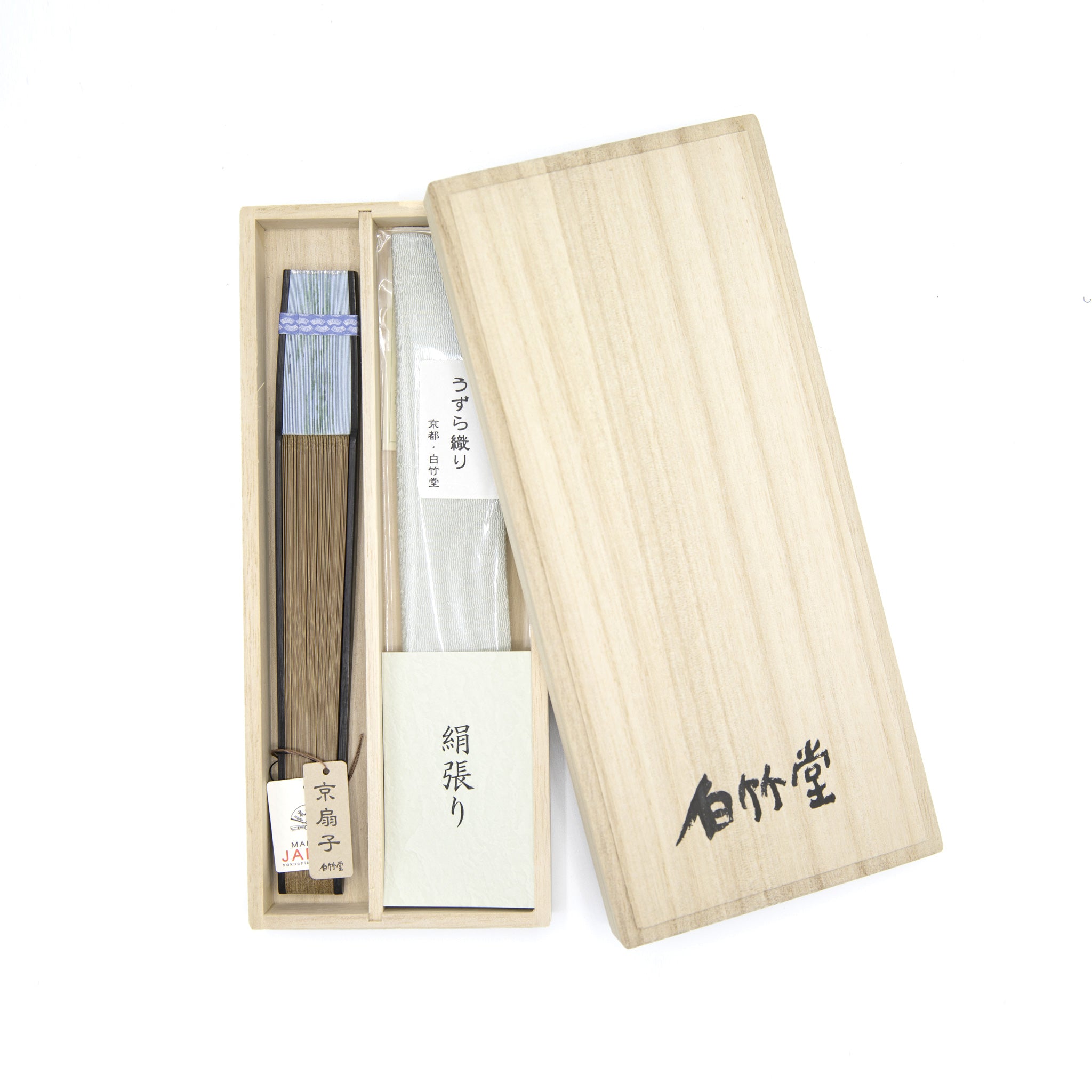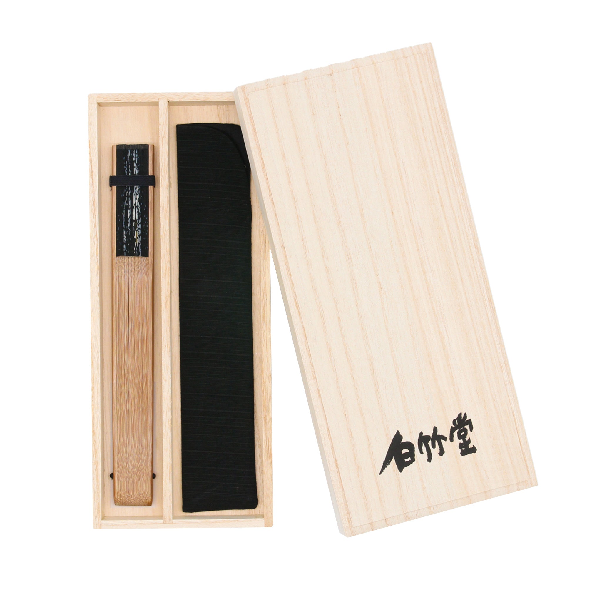 白竹堂の扇子の多くは、専用の扇子袋と高級感ある桐箱とのセット仕様。そのまま贈り物としてお使いいただけます。桐箱は防虫・防湿効果があり扇子を長持ちさせますので、保管の際も大変便利です。
