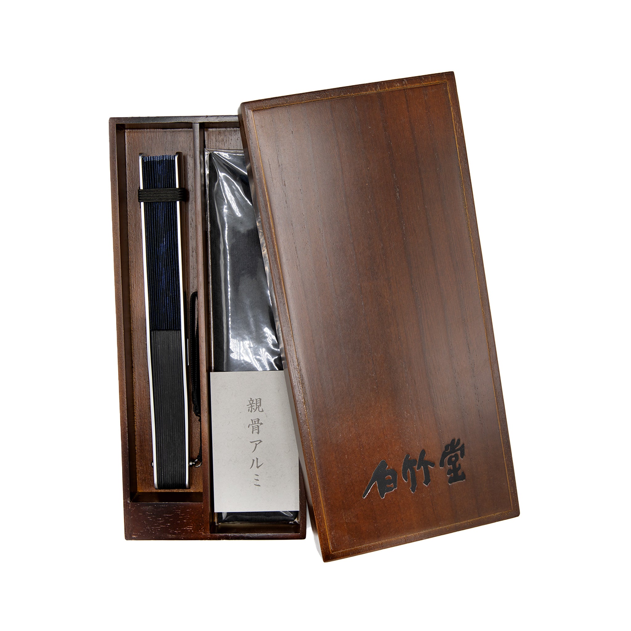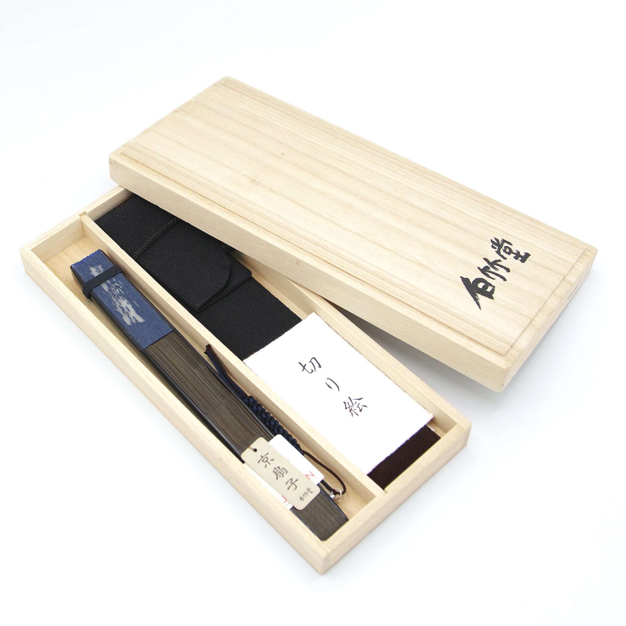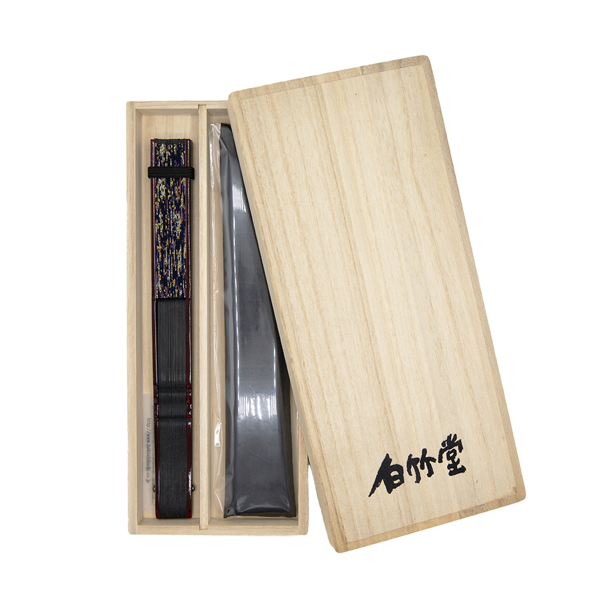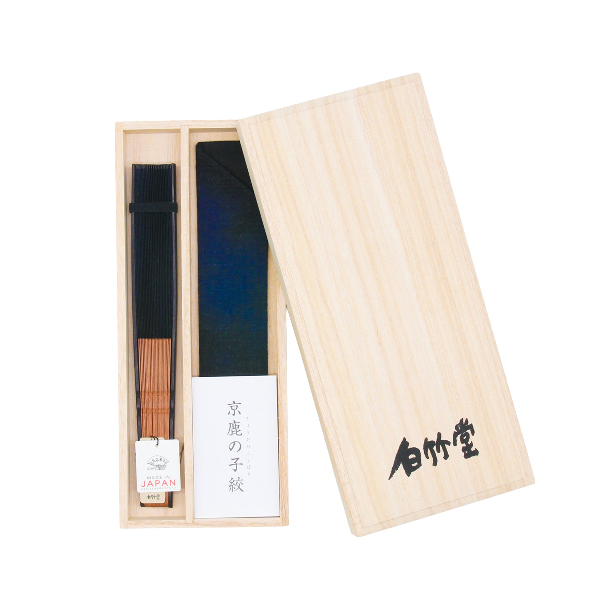 白竹堂の扇子の多くは、専用の扇子袋と高級感ある桐箱とのセット仕様。そのまま贈り物としてお使いいただけます。桐箱は防虫・防湿効果があり扇子を長持ちさせますので、保管の際も大変便利です。