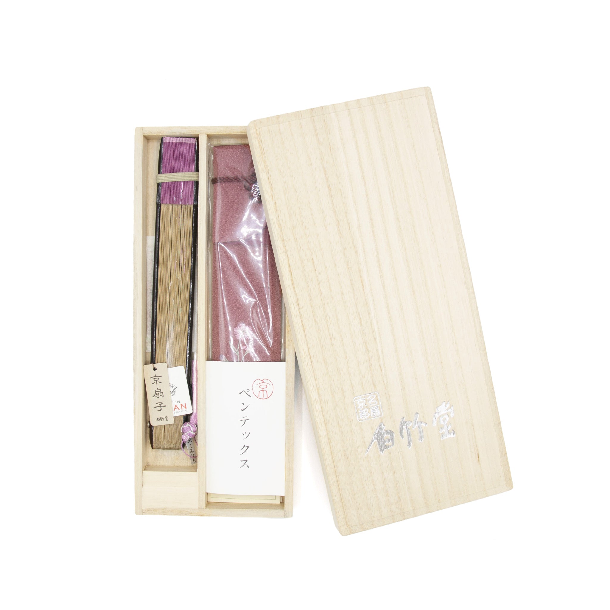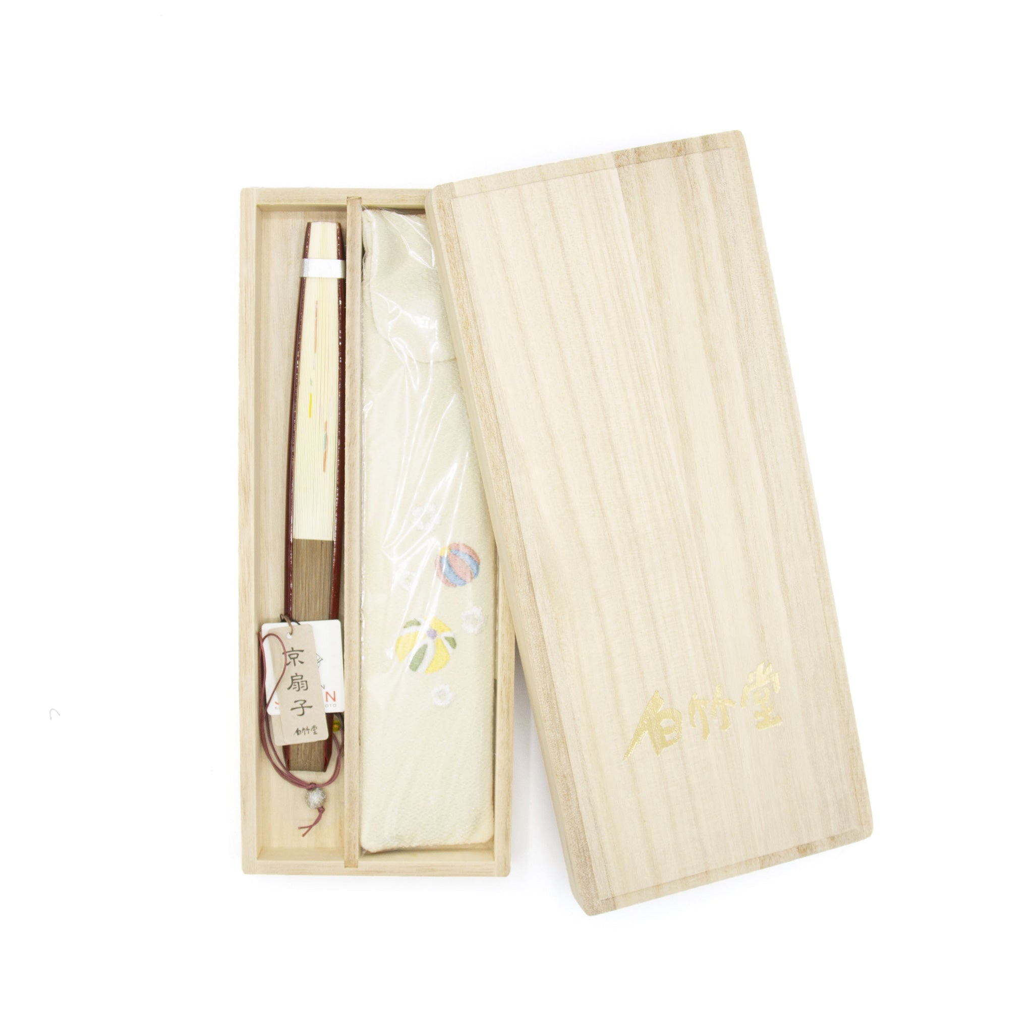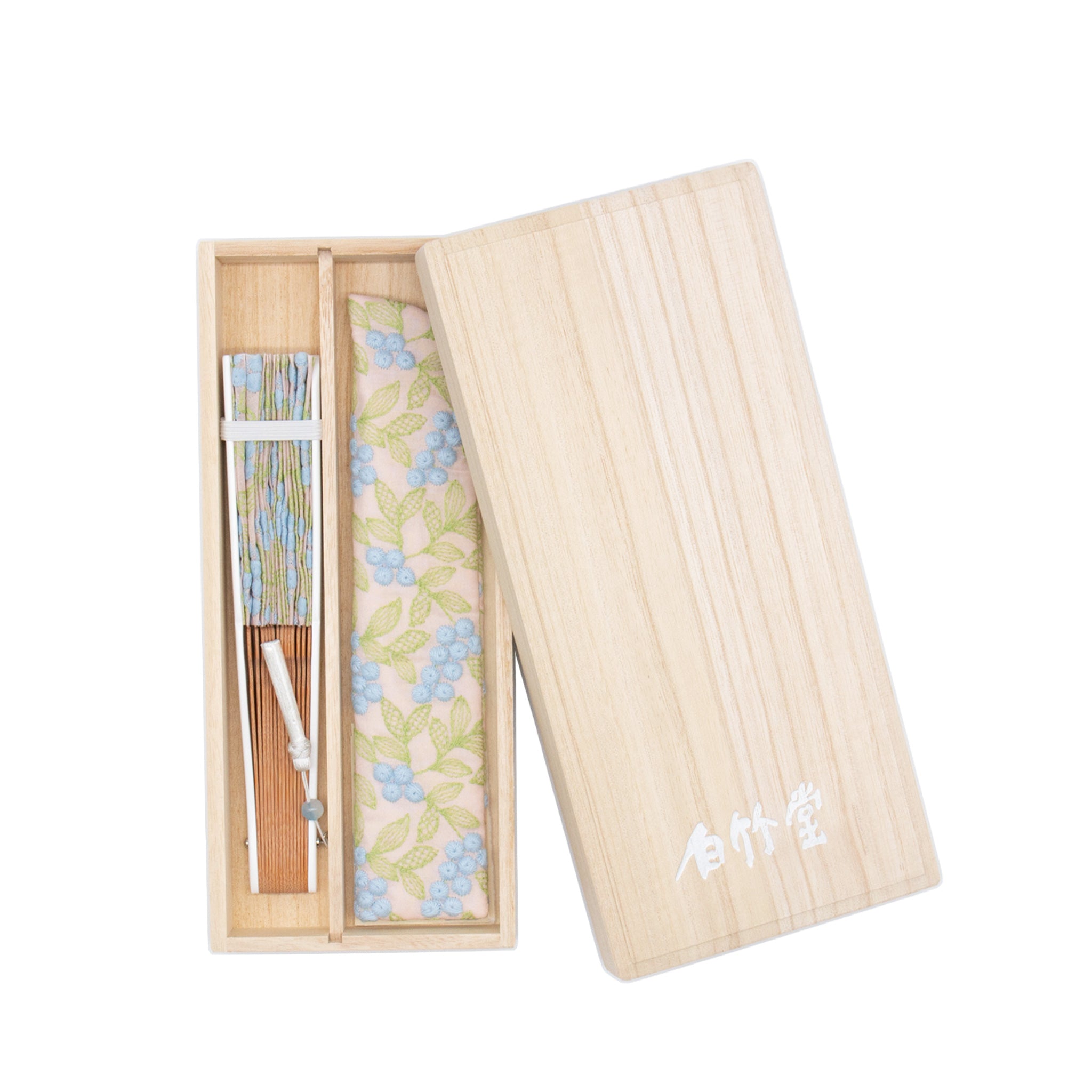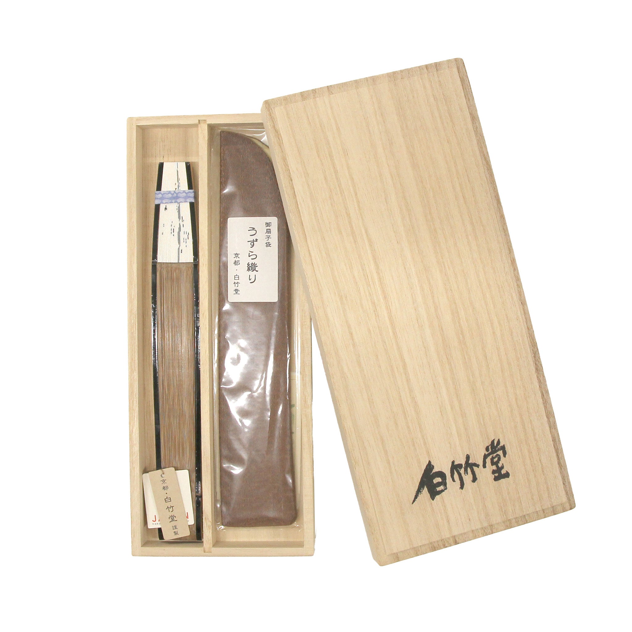 白竹堂の扇子の多くは、専用の扇子袋と高級感ある桐箱とのセット仕様。そのまま贈り物としてお使いいただけます。桐箱は防虫・防湿効果があり扇子を長持ちさせますので、保管の際も大変便利です。