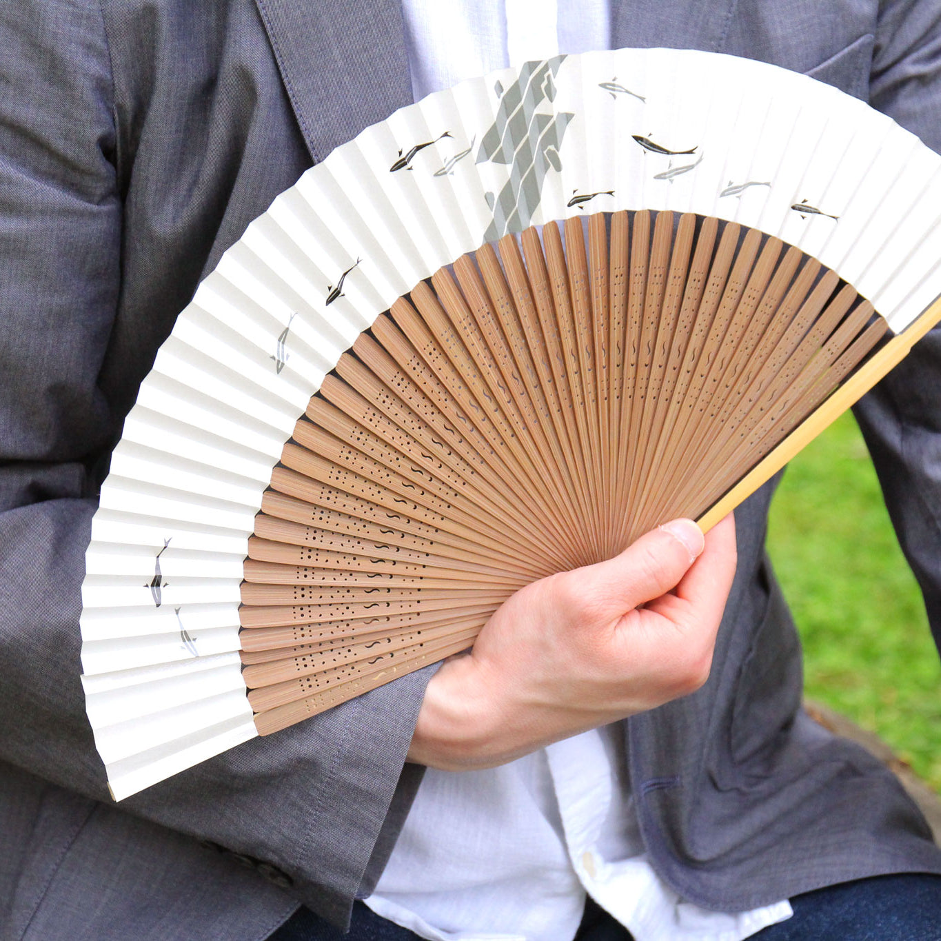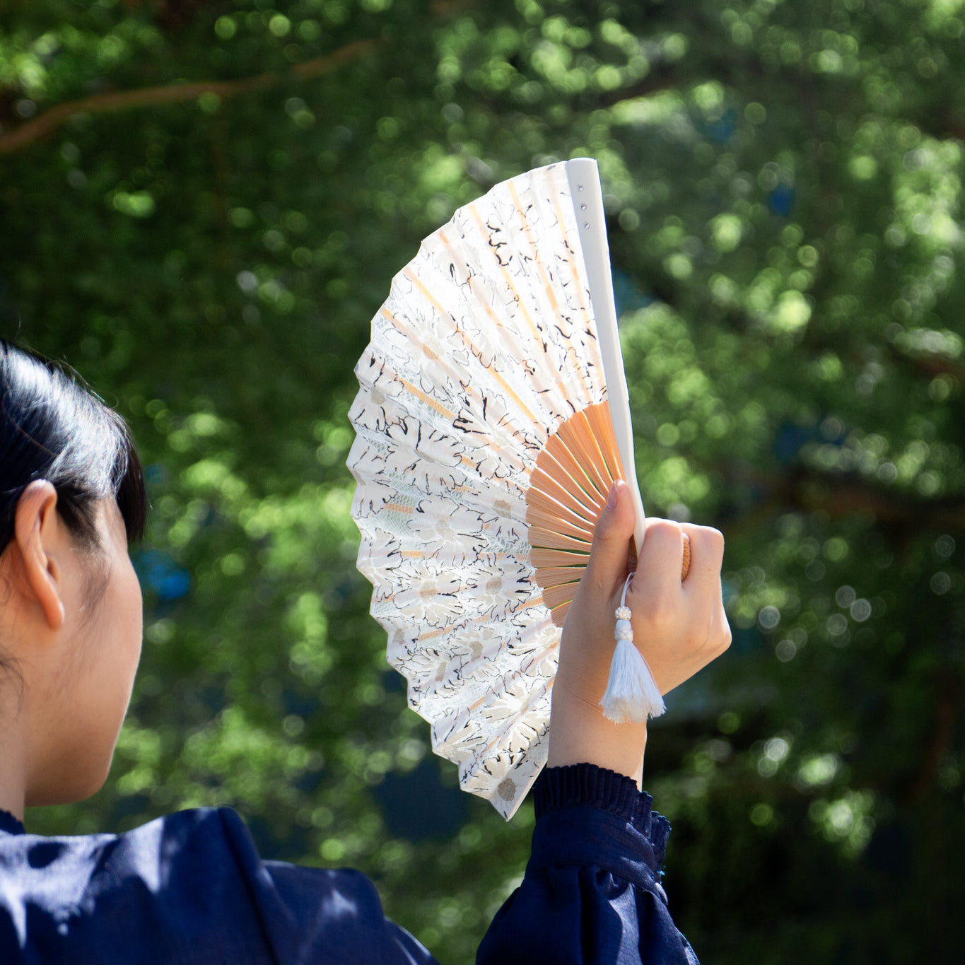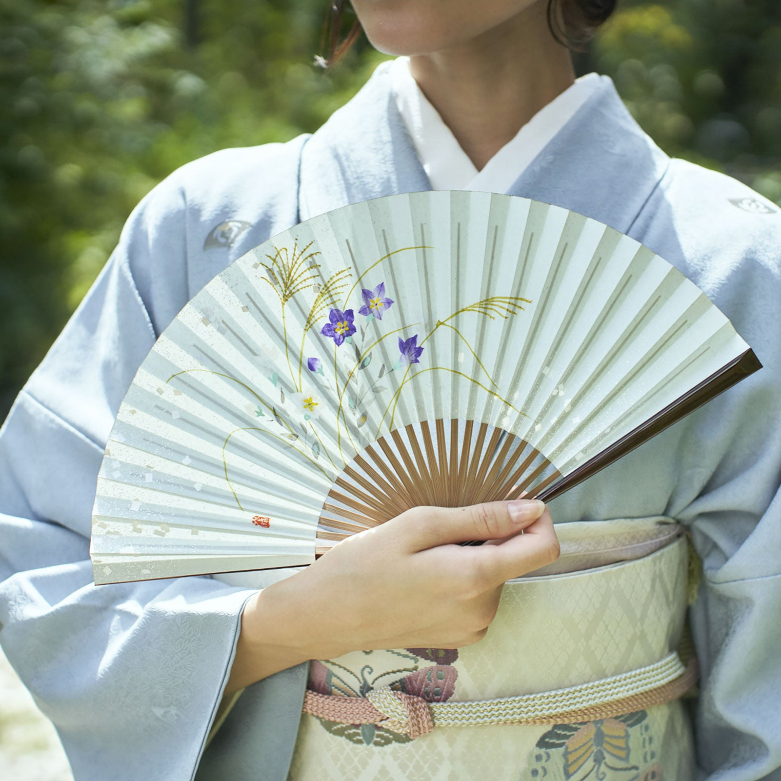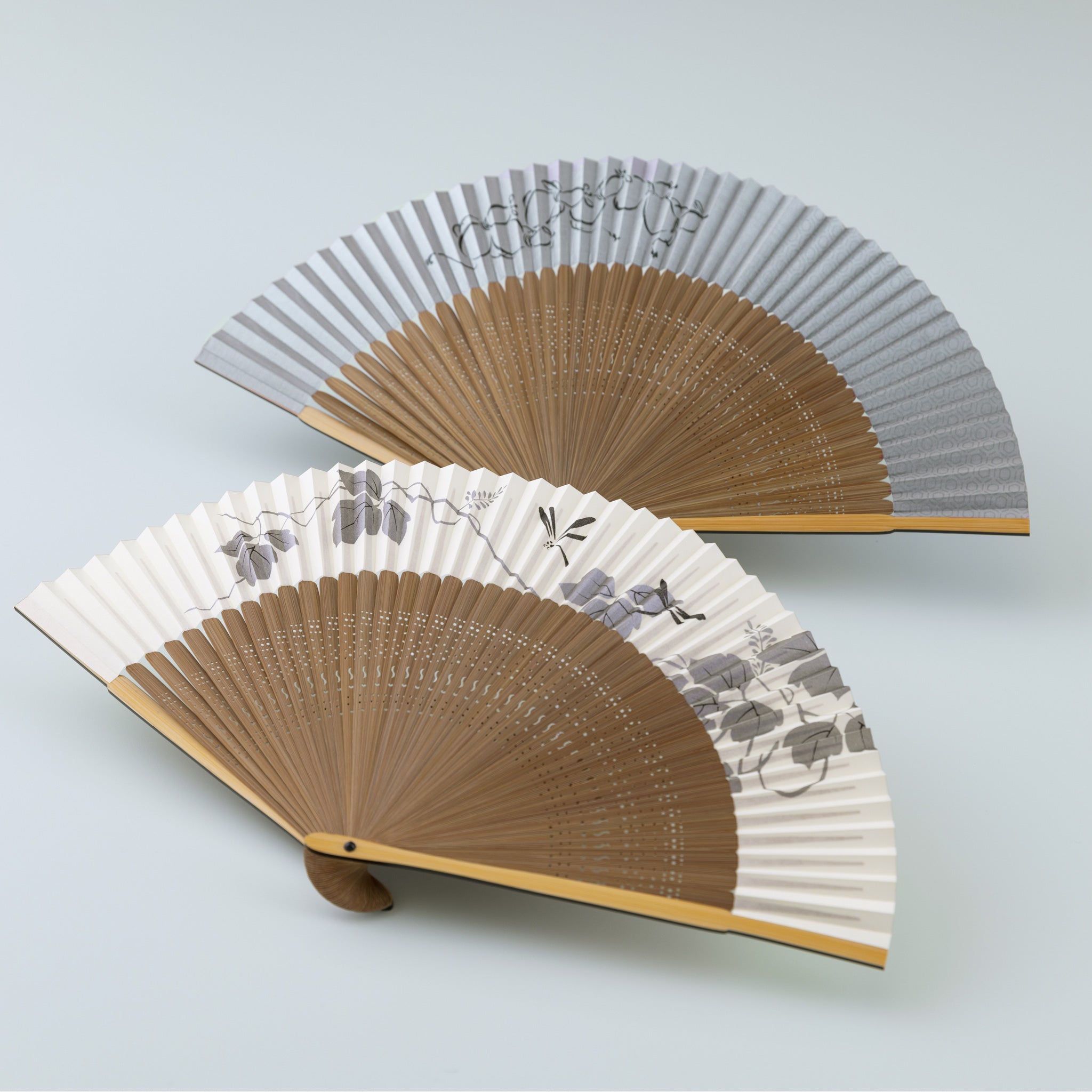 京扇子は、日本製の素材を用いて京都を中心に作られている扇子のことです。多くの職人たちにより分業で行われる京扇子づくりの制作工程数は八十八にもなります。美しさ・手へのなじみやすさ・しなやかな風が魅力です。