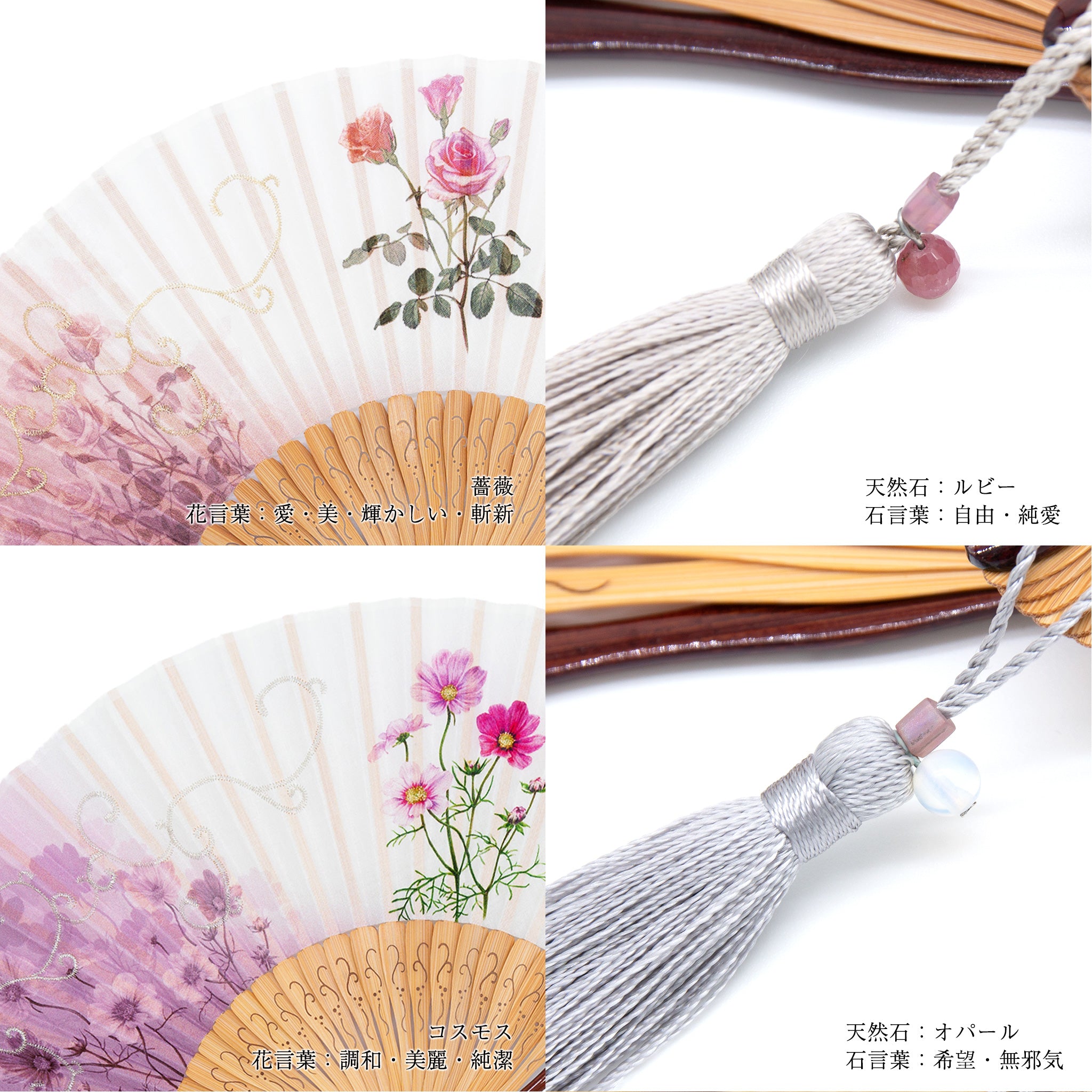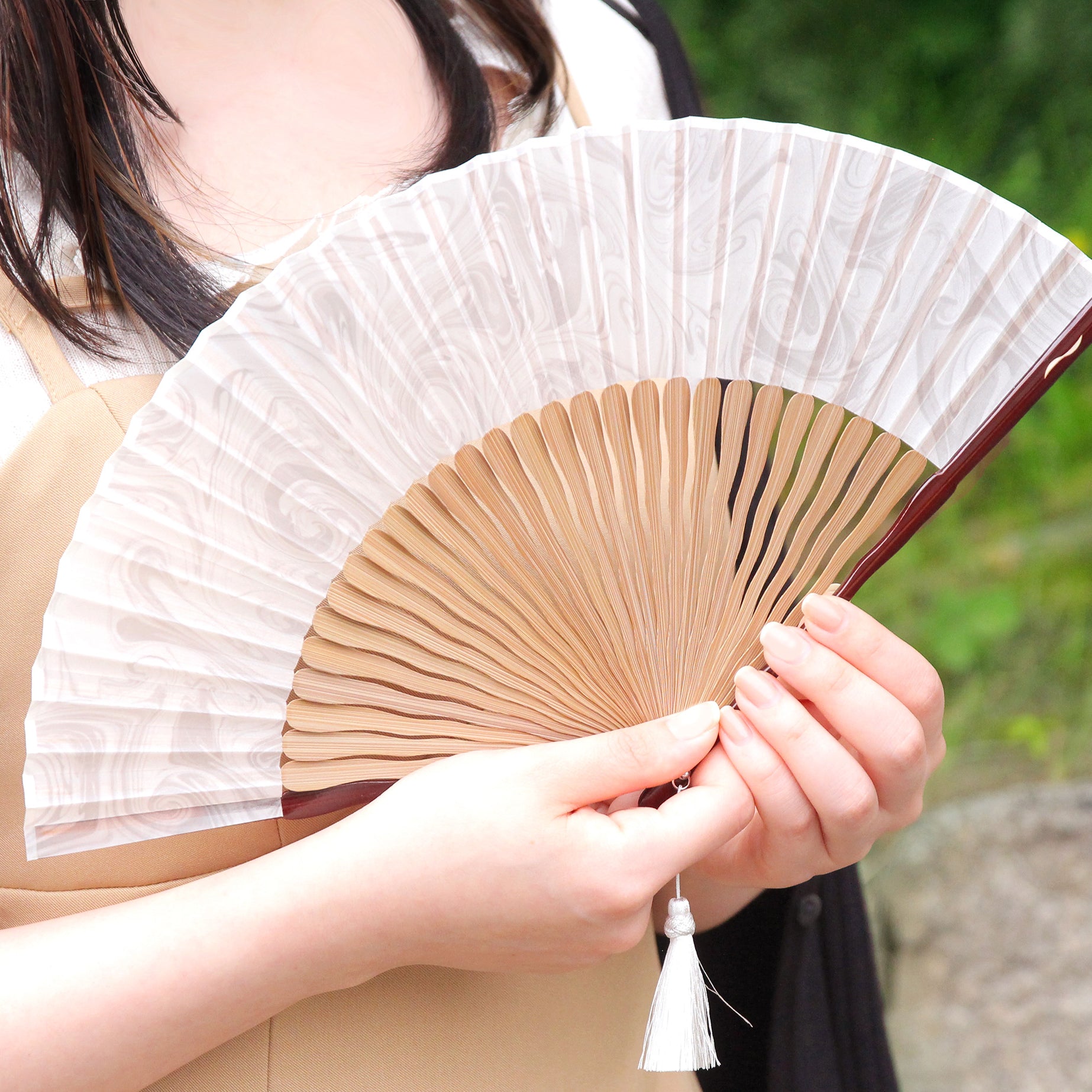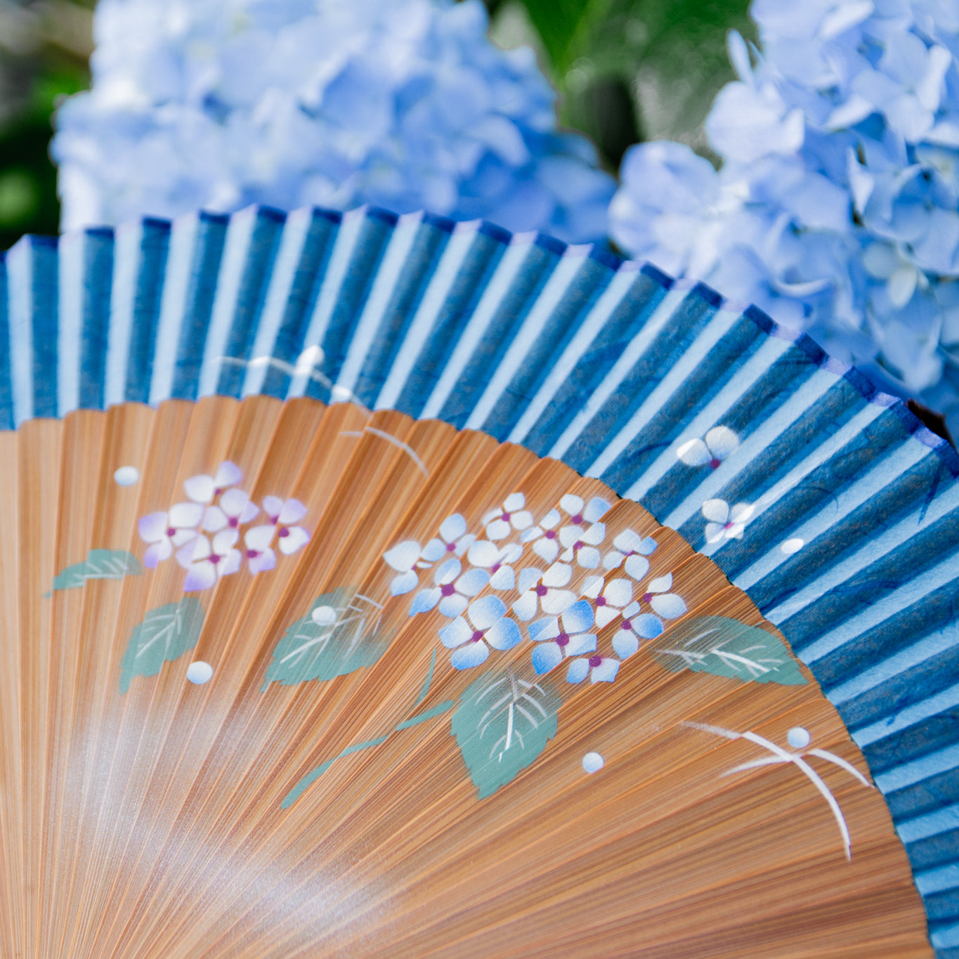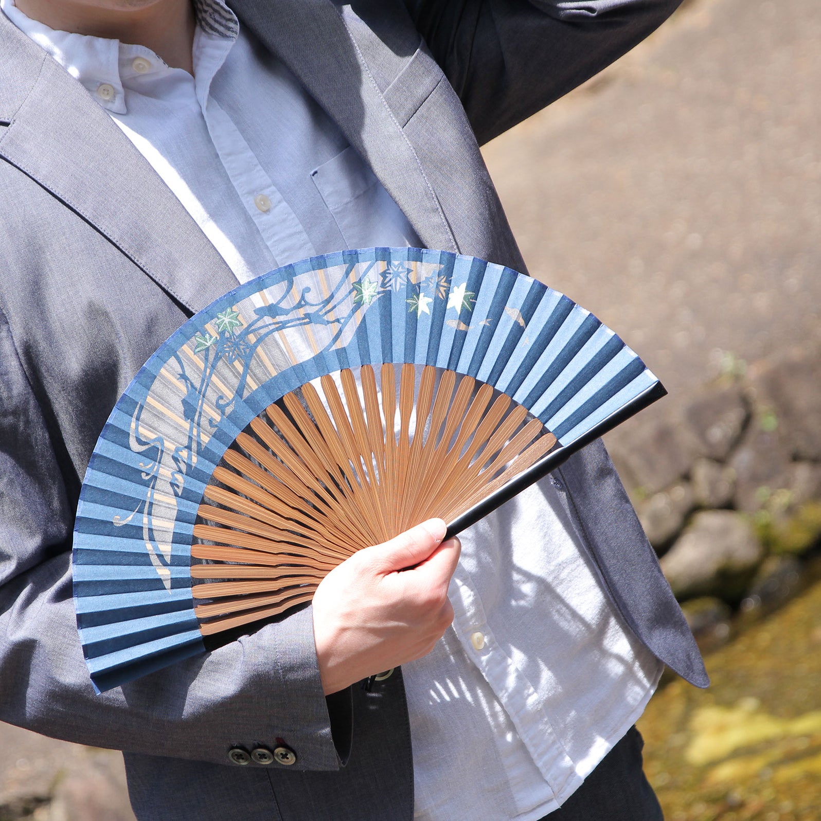 京扇子は、日本製の素材を用いて京都を中心に作られている扇子のことです。多くの職人たちにより分業で行われる京扇子づくりの制作工程数は八十八にもなります。美しさ・手へのなじみやすさ・しなやかな風が魅力です。