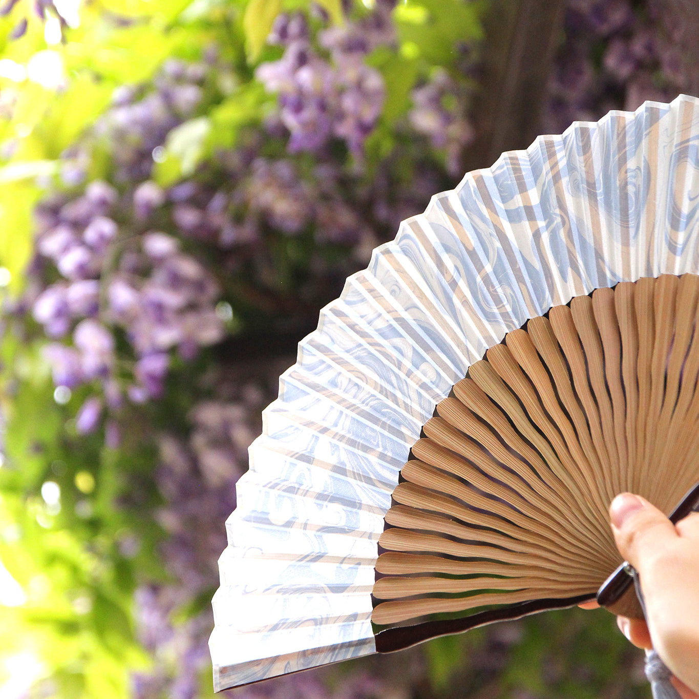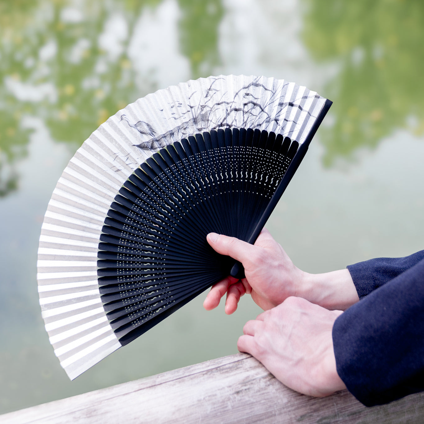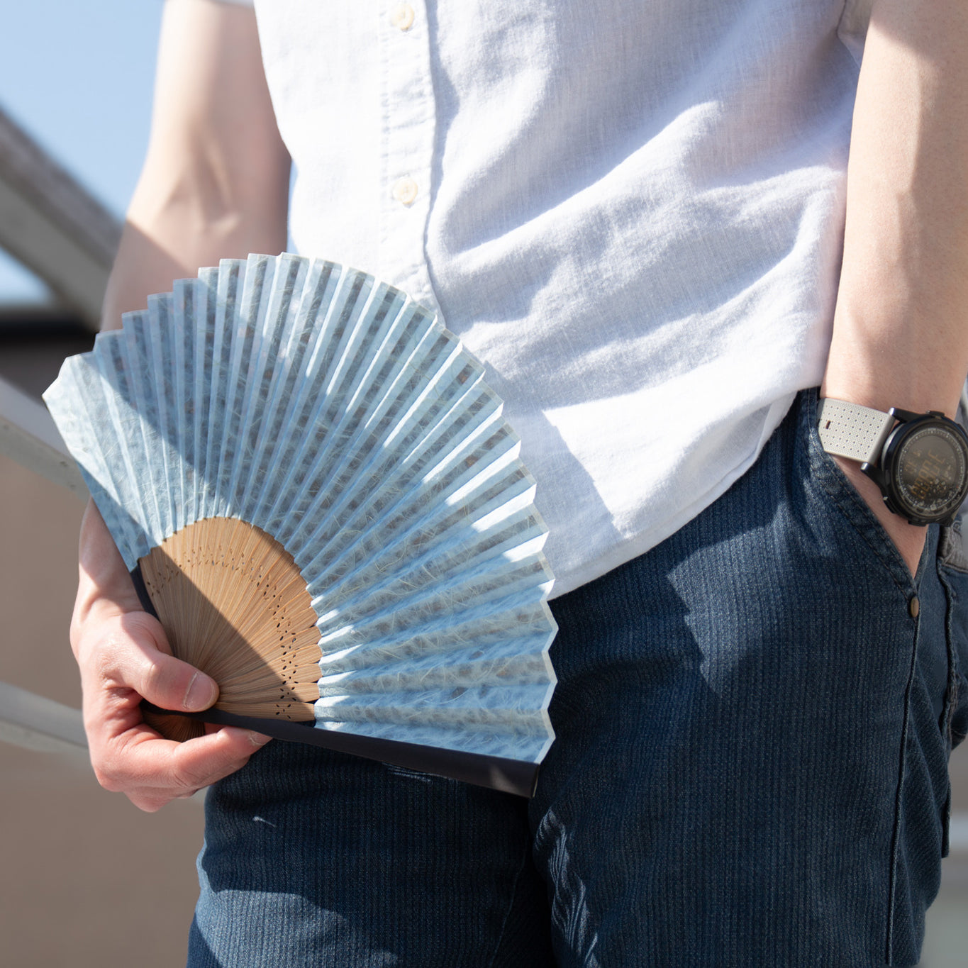 800年以上の歴史を持つ京都伝統の「黒谷和紙」を使用した京扇子。黒谷和紙は、京都府綾部市黒谷町・八代町周辺で作られる純粋な手漉き和紙です。破れにくく丈夫なため、扇子との相性は抜群。