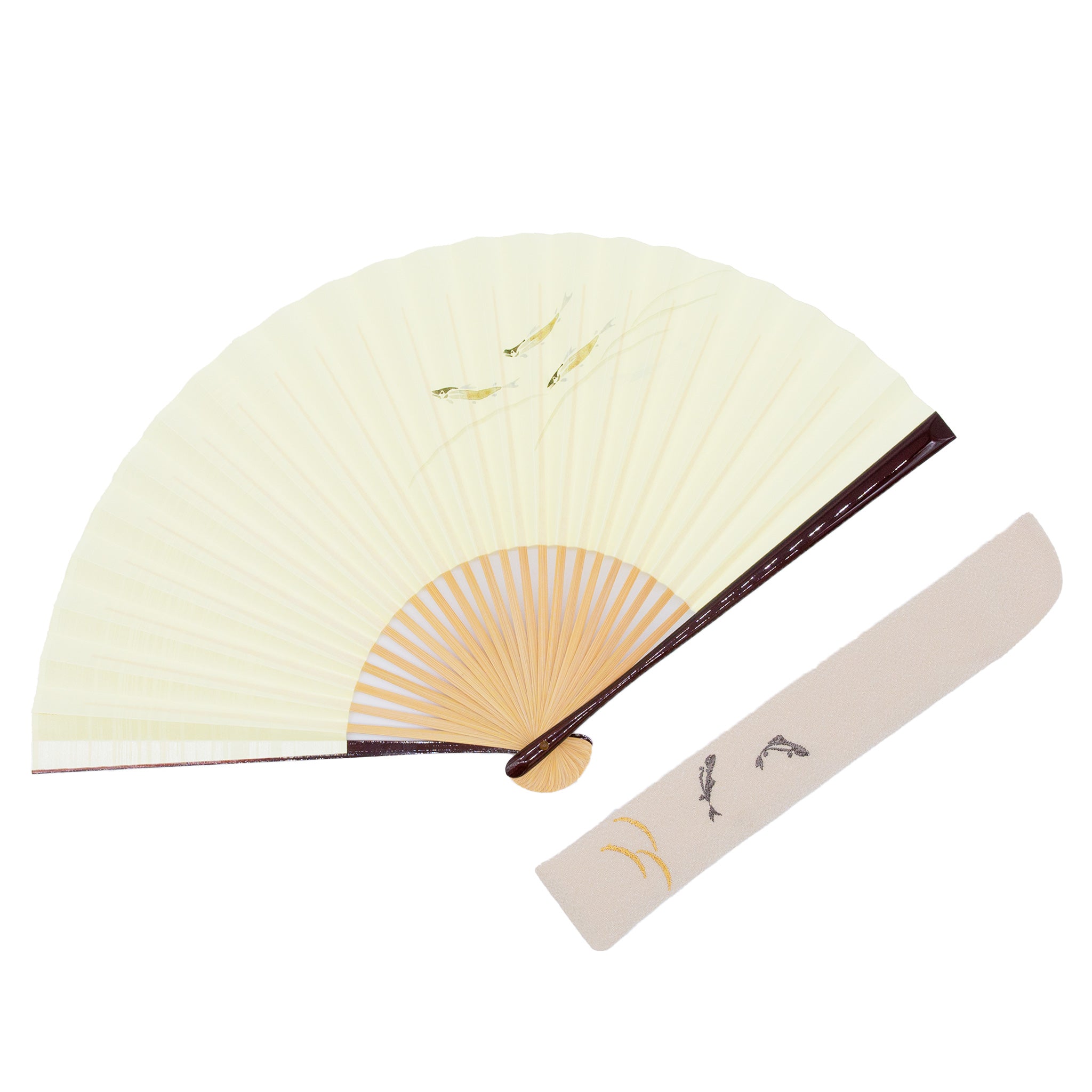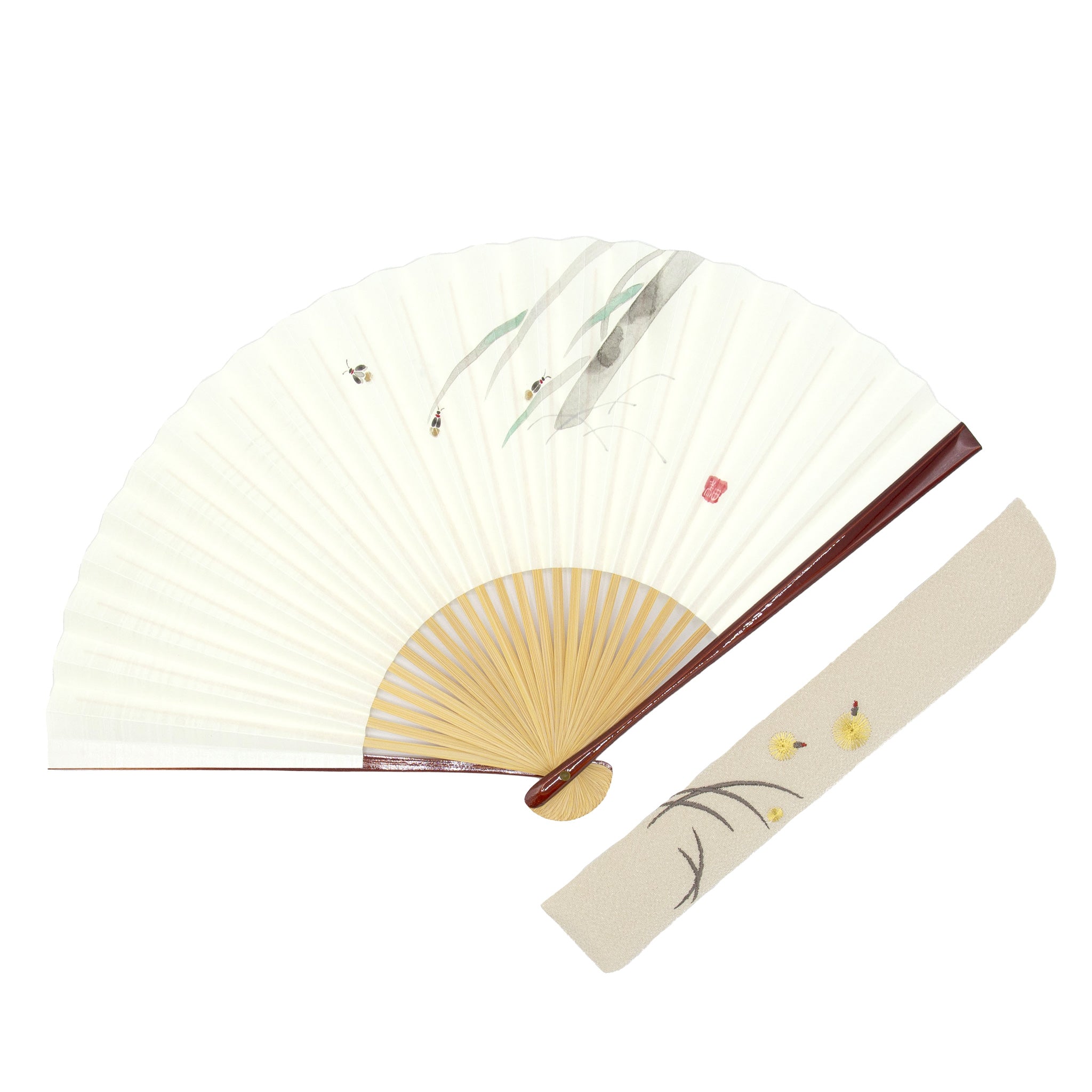 手描きで描かれた上品な夏のモチーフに黒塗の親骨を組み合わせた、年齢性別問わずお持ちいただける扇子です。