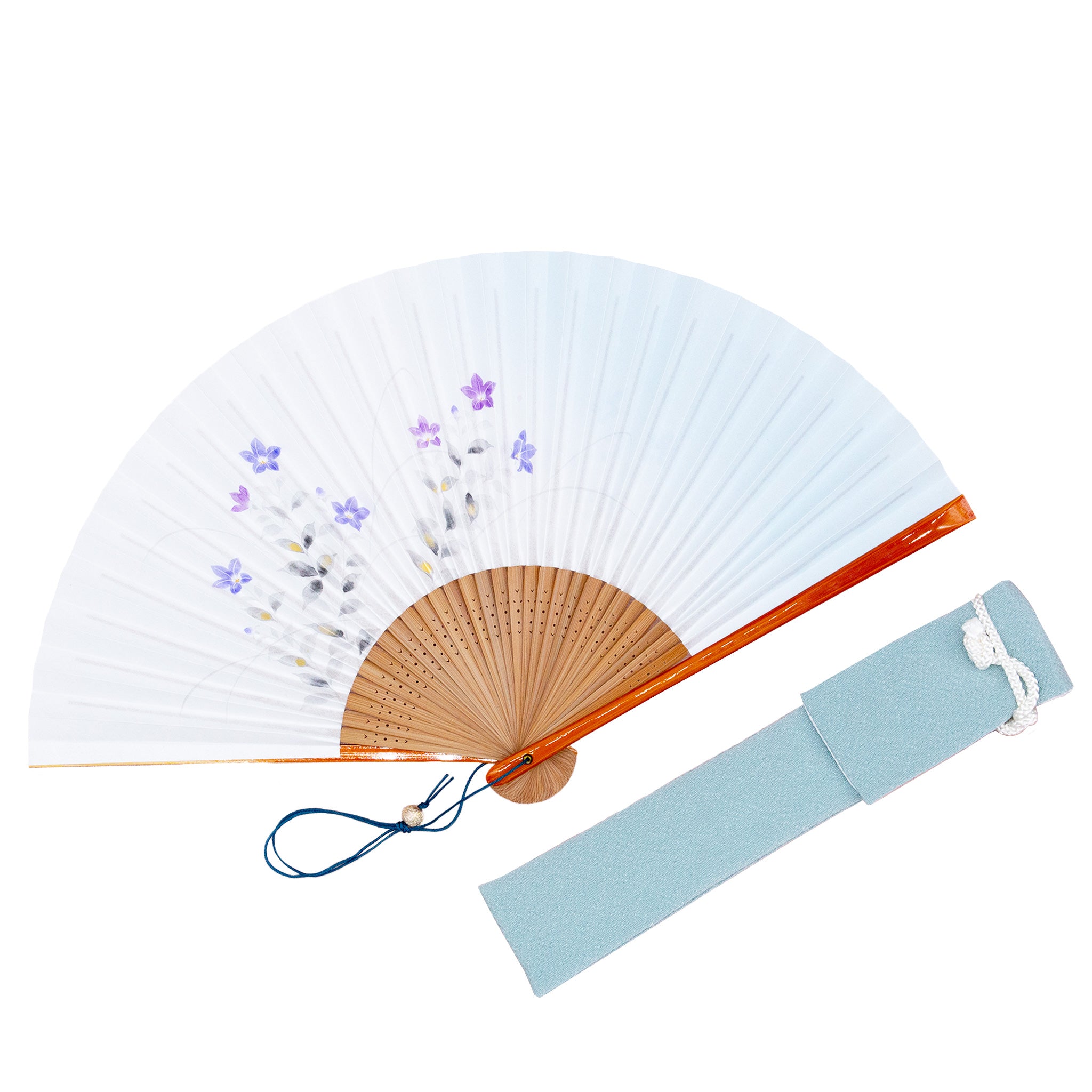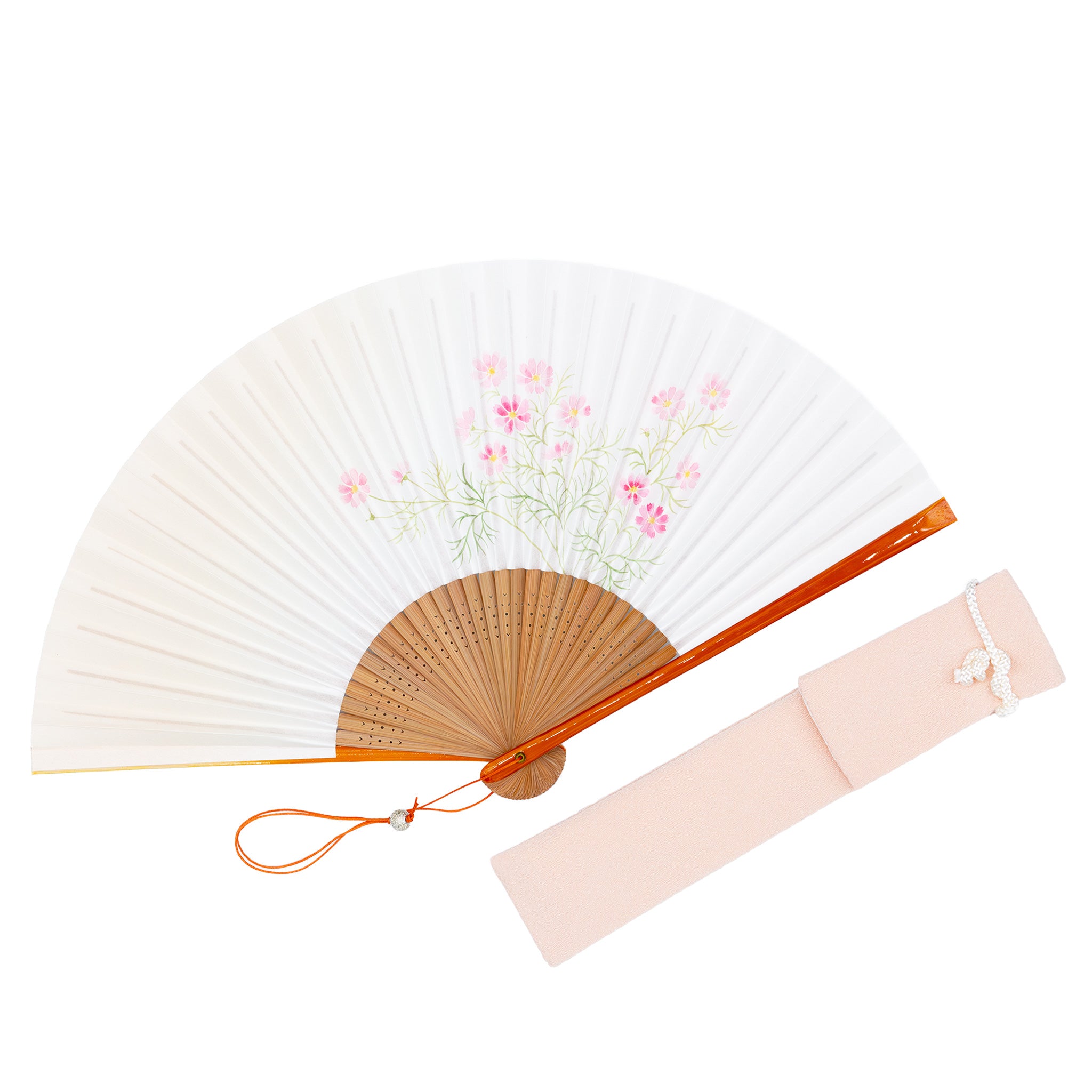 上品にさり気なく輝くパール加工を施した扇面には、手描きの花々が描かれています。