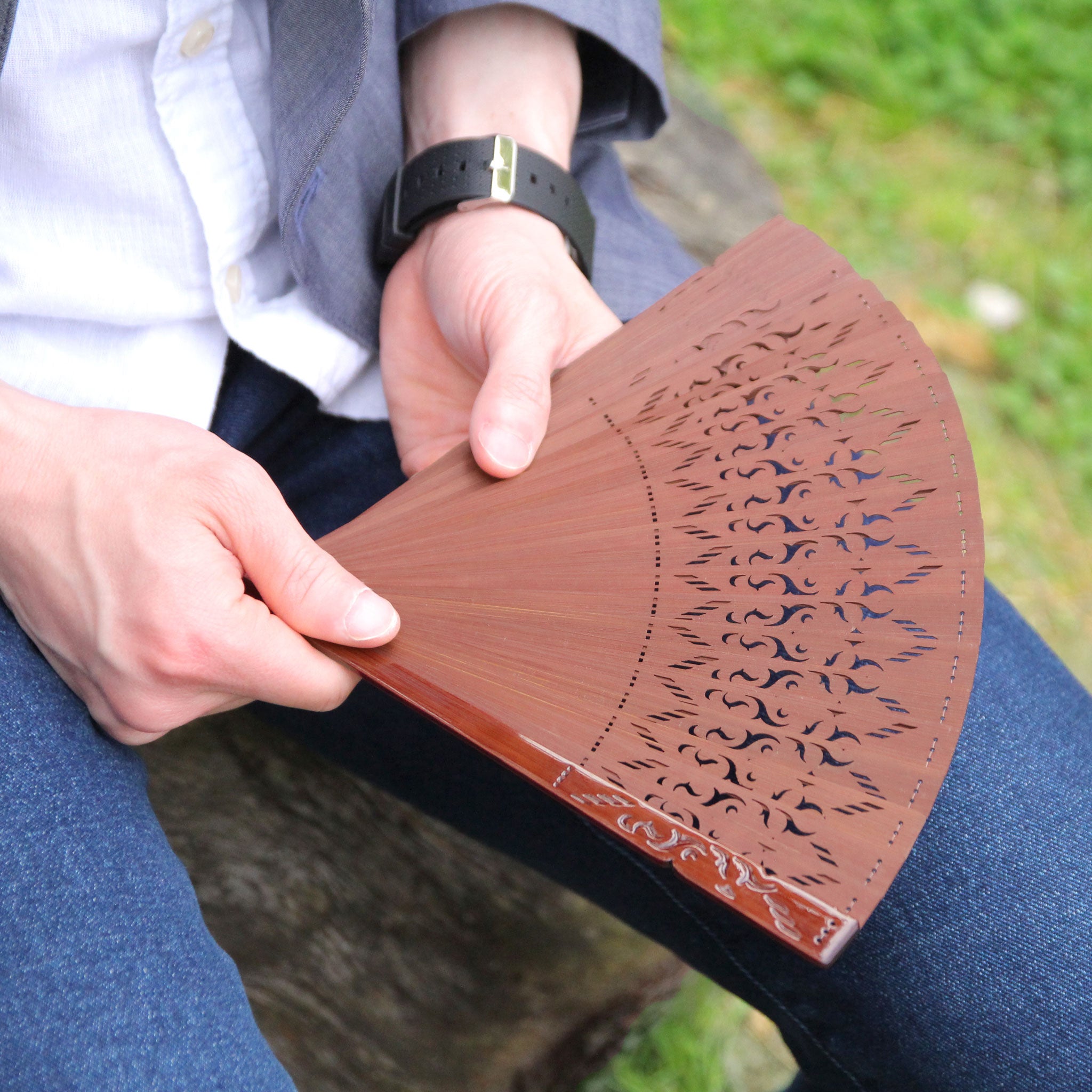 扇面に施された彫加工がオリエンタルな雰囲気を感じさせます。