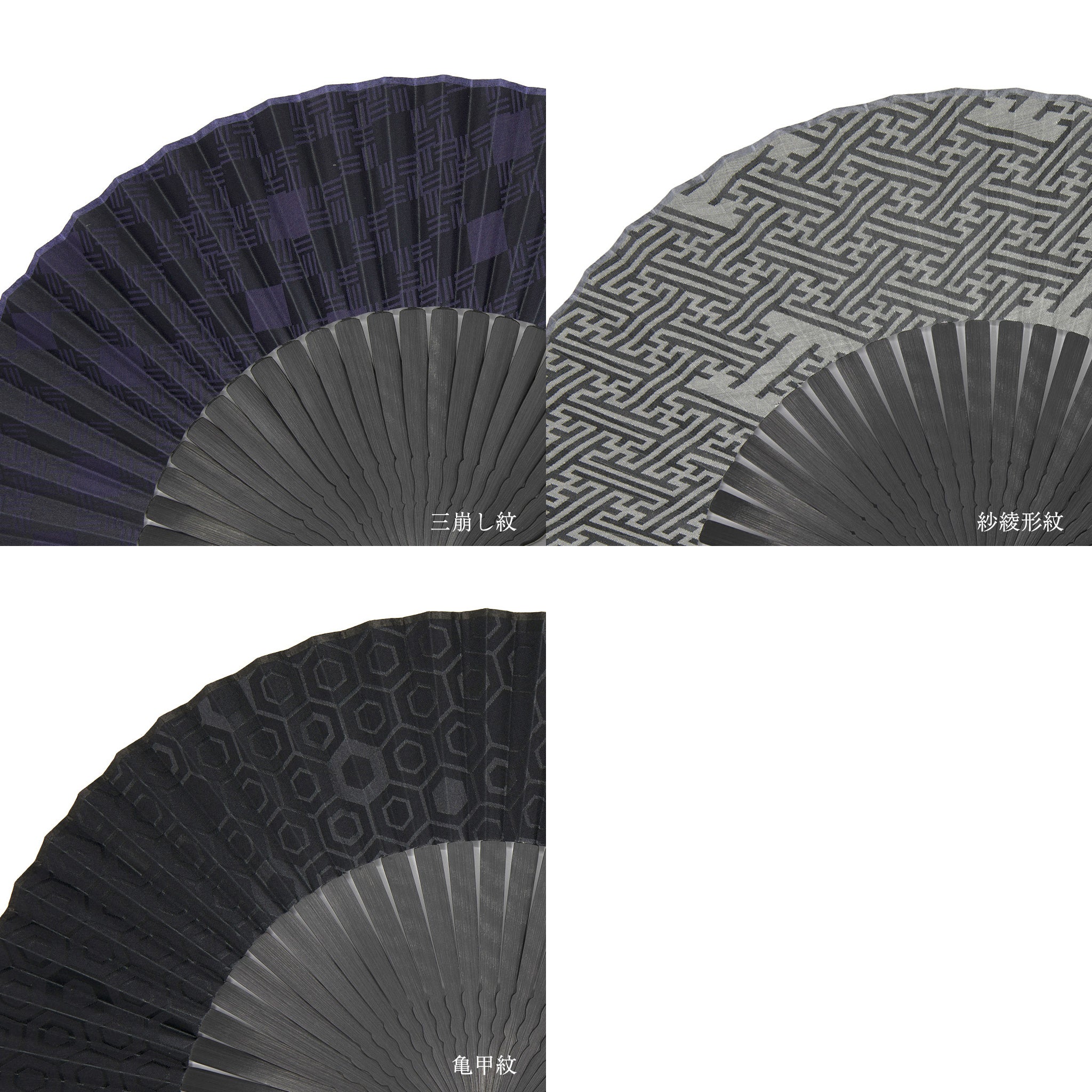 日本の伝統紋様をジャガード生地にデザインしたシックな雰囲気の扇子です。