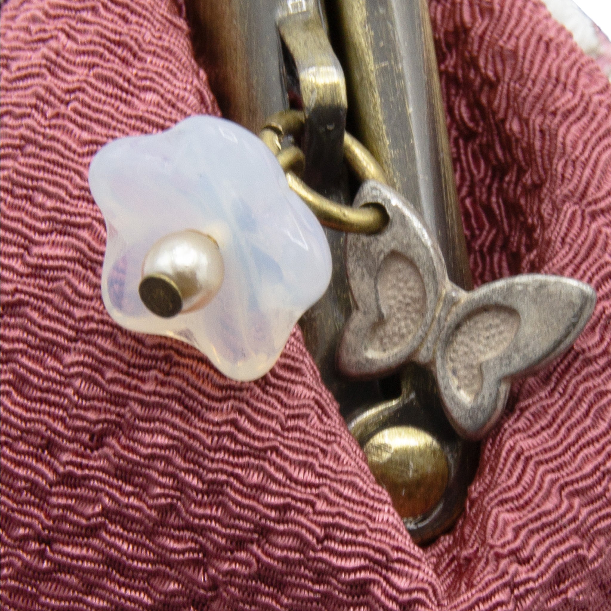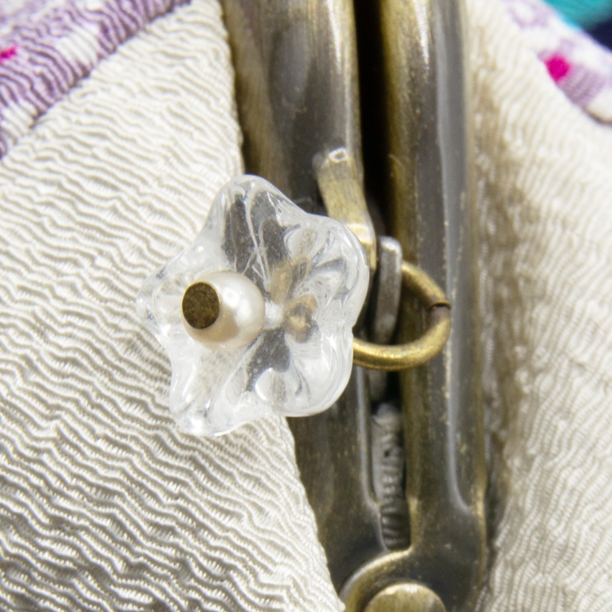 マチがしっかりとあるボストンタイプのがまぐち。コンパクトな手の平サイズですが、小銭やアクセサリーなど小さいものならたっぷり収納できます。