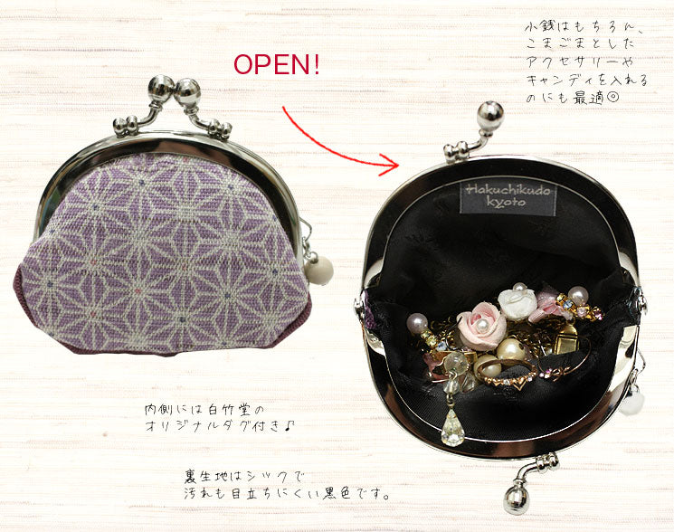 てのひらサイズの小さめがまぐち。小銭入れとしてはもちろん、失くしやすいピアスやイヤリングを入れるアクセサリーケースとしても使えます。身近な人へのプチギフトにおすすめです。