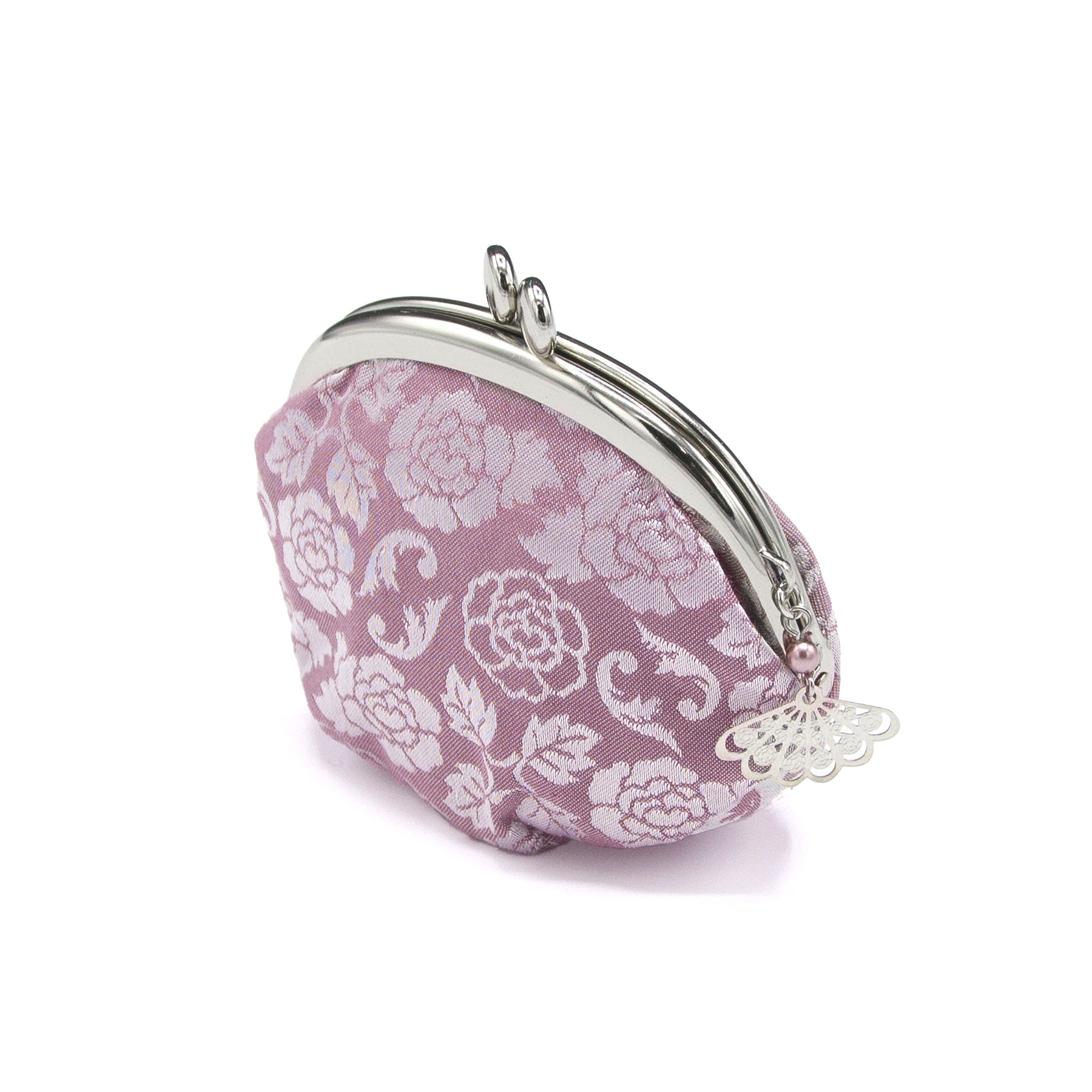ぷっくりとした形がかわいらしい乙女心くすぐるがまぐち。開け口が大きく開いてマチもあるので、見た目によらずいろいろ収納できちゃいます。