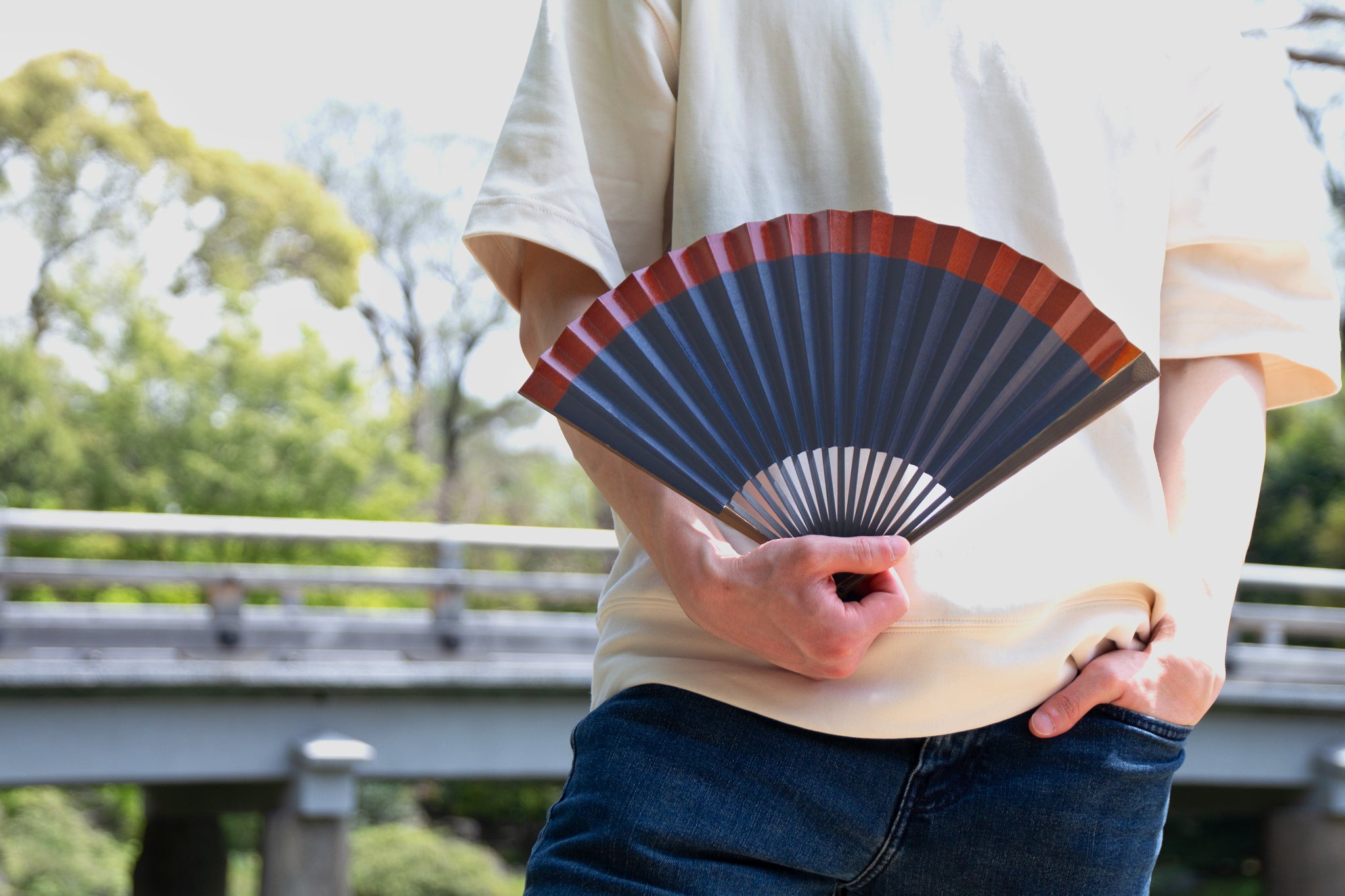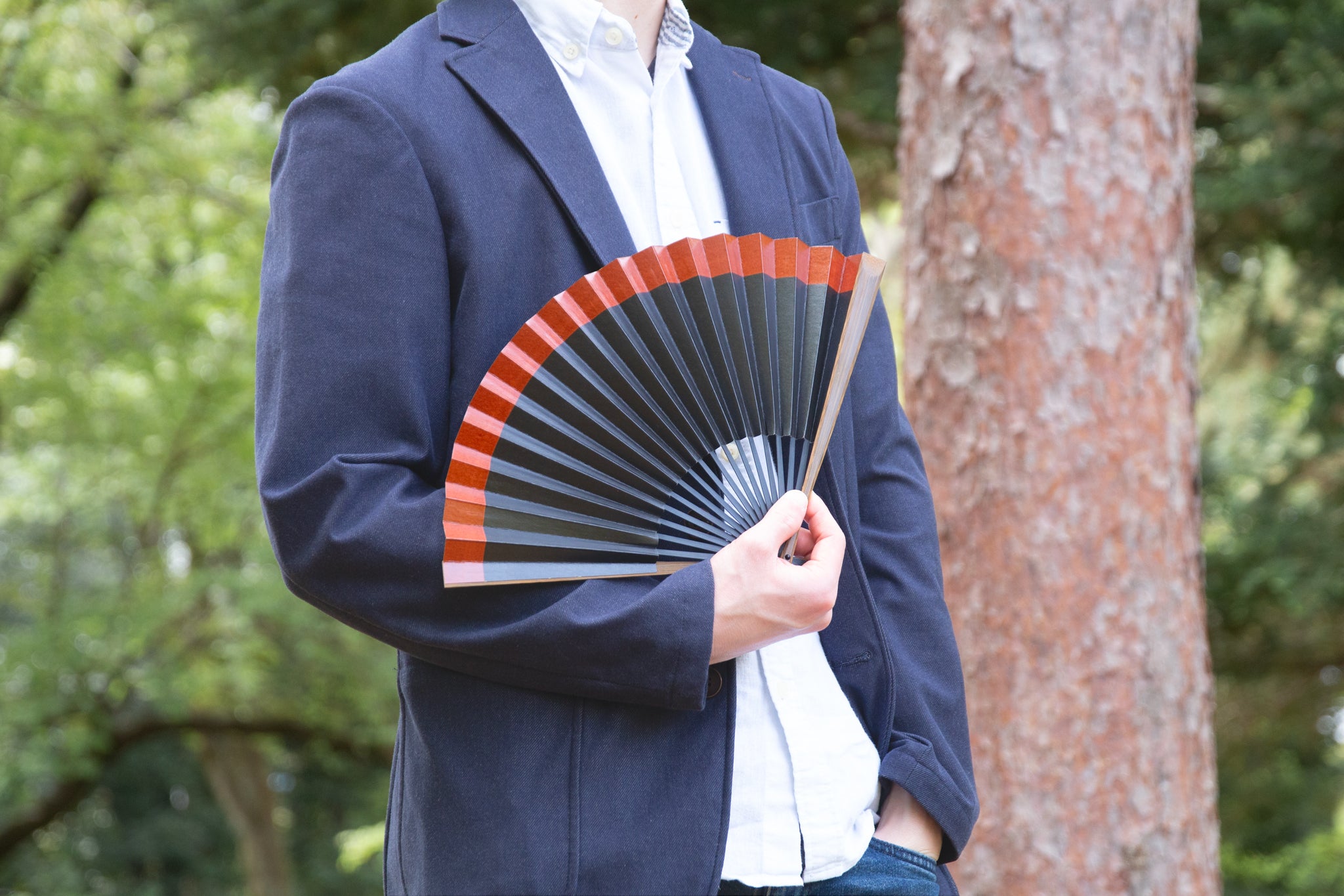 伝統的な柿渋を使った渋扇を、上下ツートンカラーに塗り分けることによって、モダンかつシックな雰囲気に仕上げました。