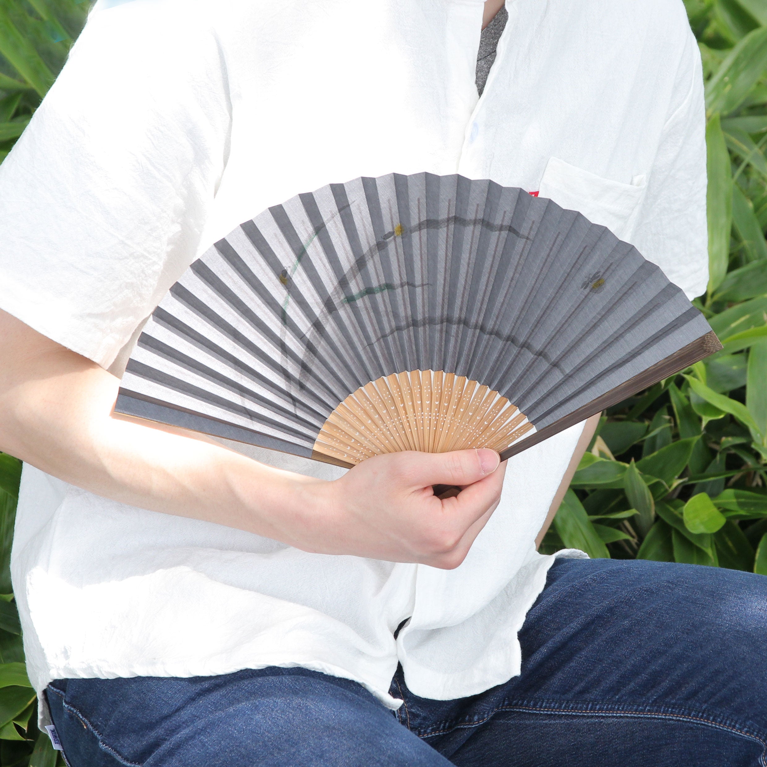 シンプルなモチーフと、他の紙扇子とは一味異なる表情の組み合わせで、上質な雰囲気のある扇子です。