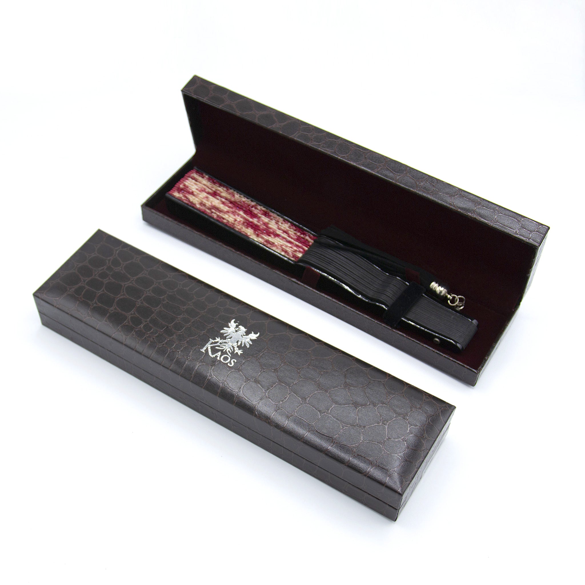 ロゴ入りの合皮箱にぴったりの個性あふれる大人の扇子。
