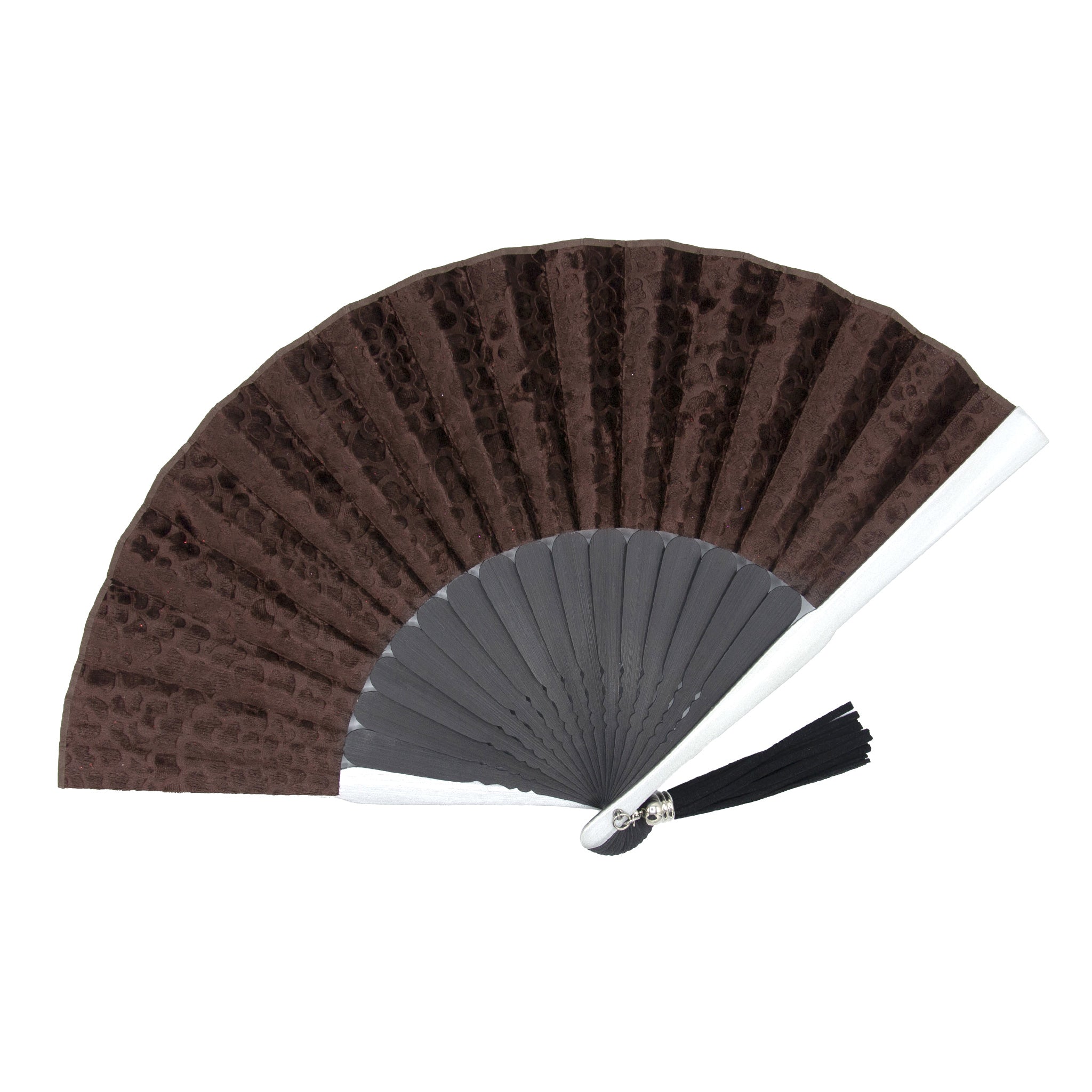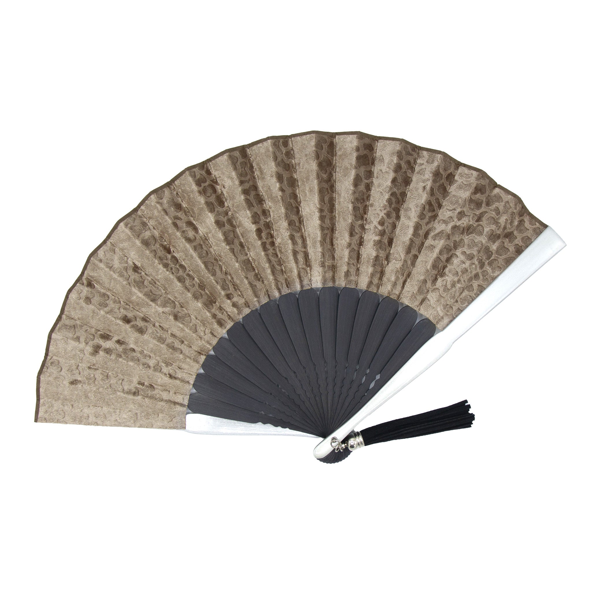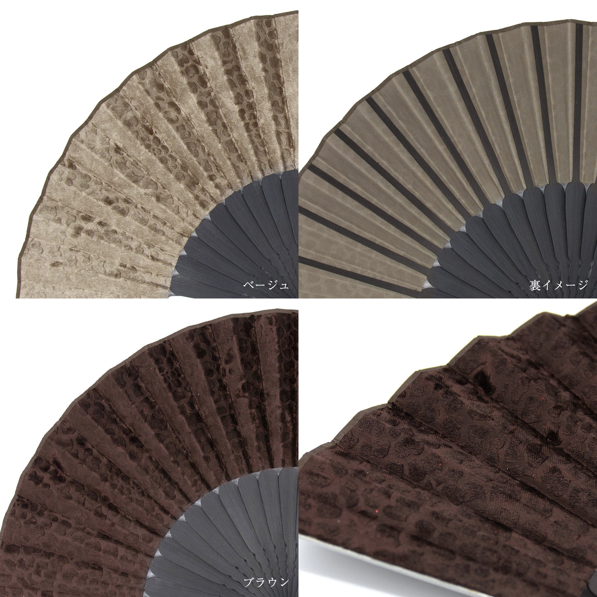 型押しで表現された、立体感のある柄が特徴の生地扇子。