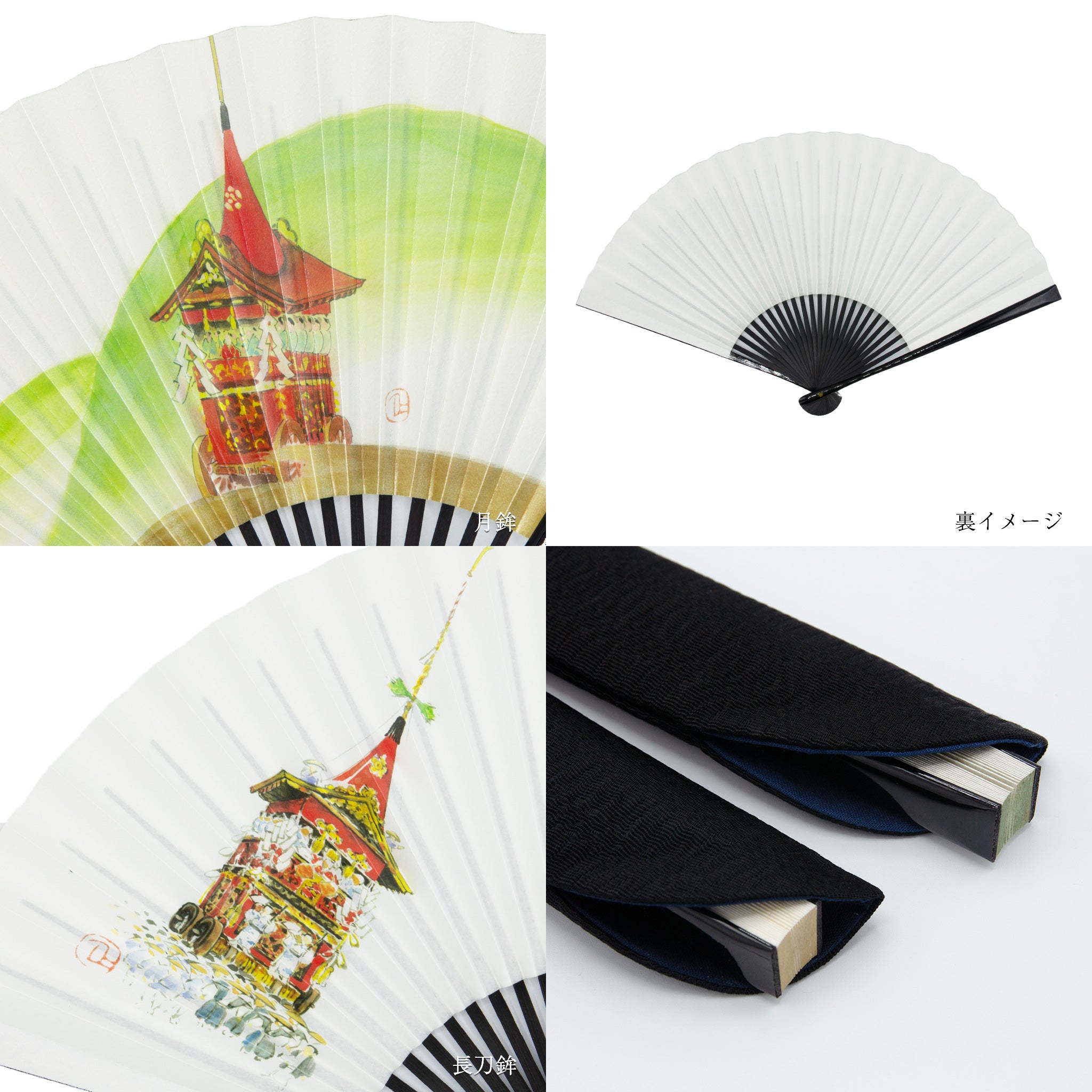 日本三大祭りのひとつ「祇園祭」の京扇子。月鉾と長刀鉾の2種類の絵柄をご用意しております。