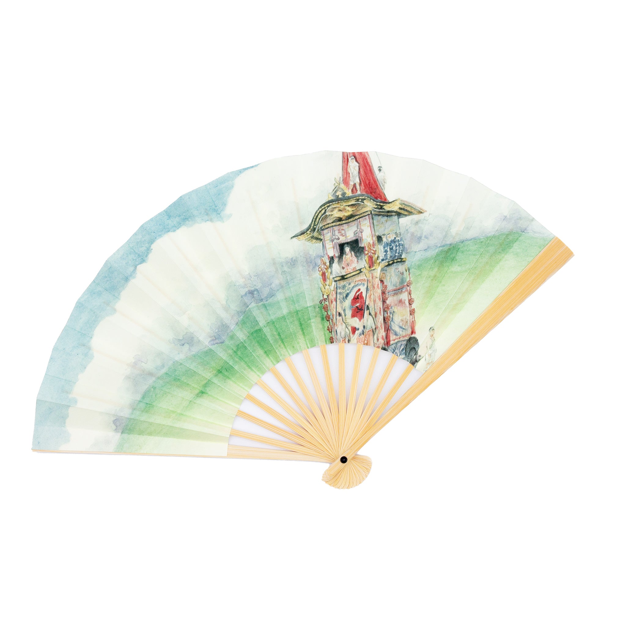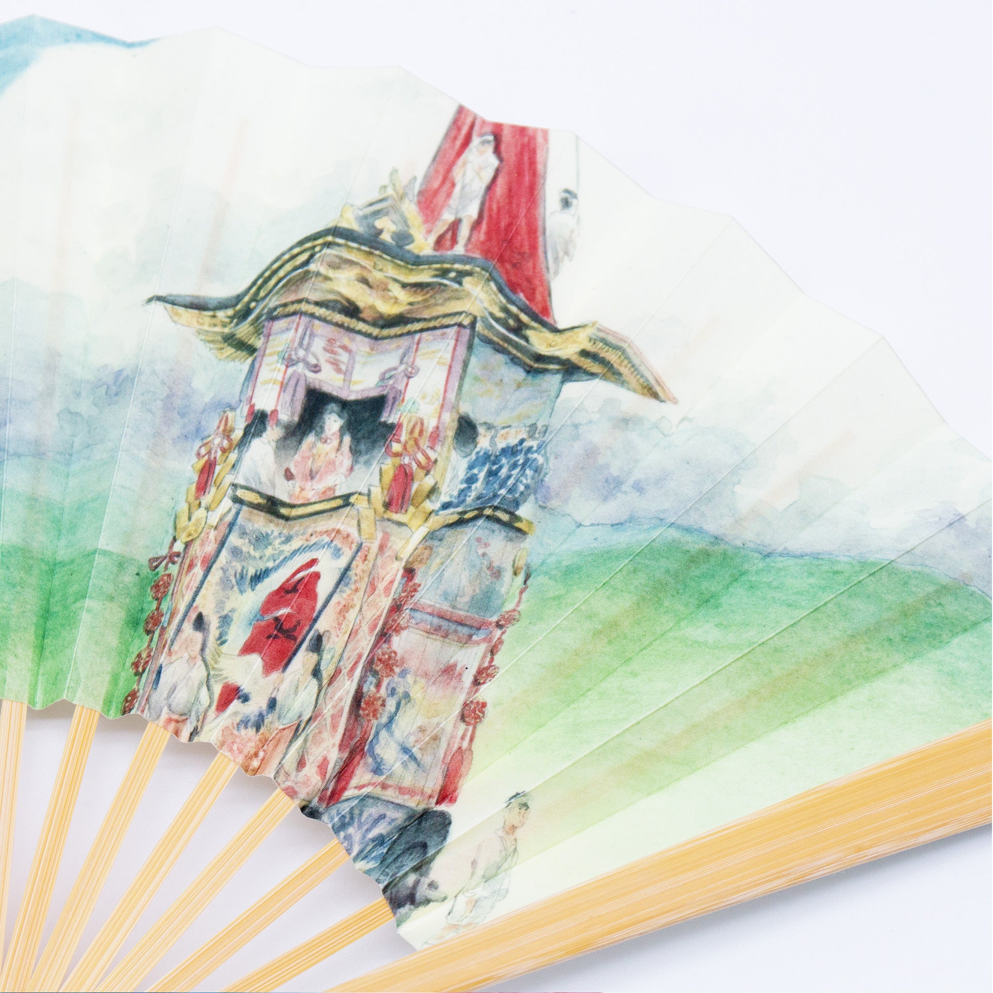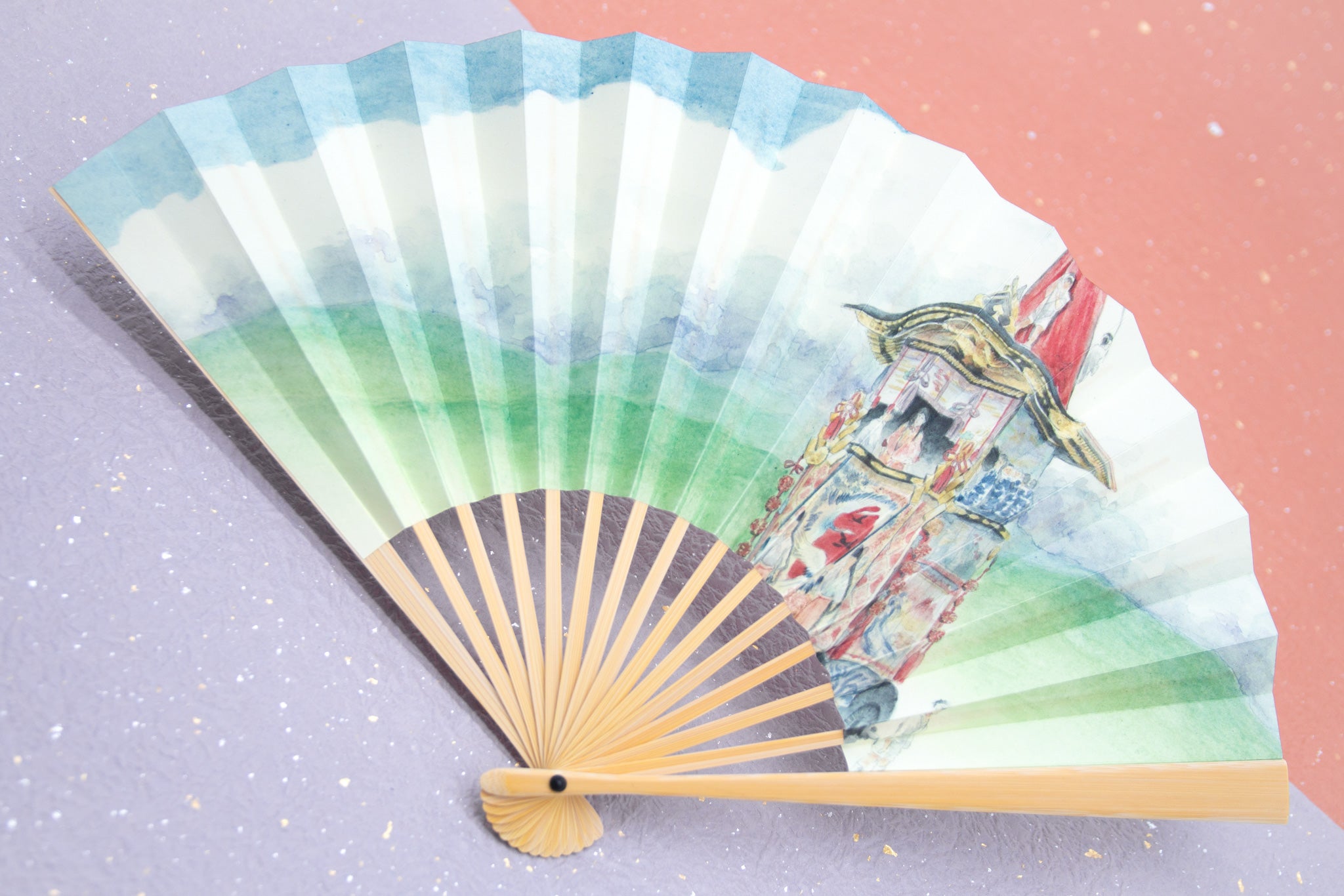 日本三大祭りのひとつである「祇園祭」の様子を描いた紙扇子です。