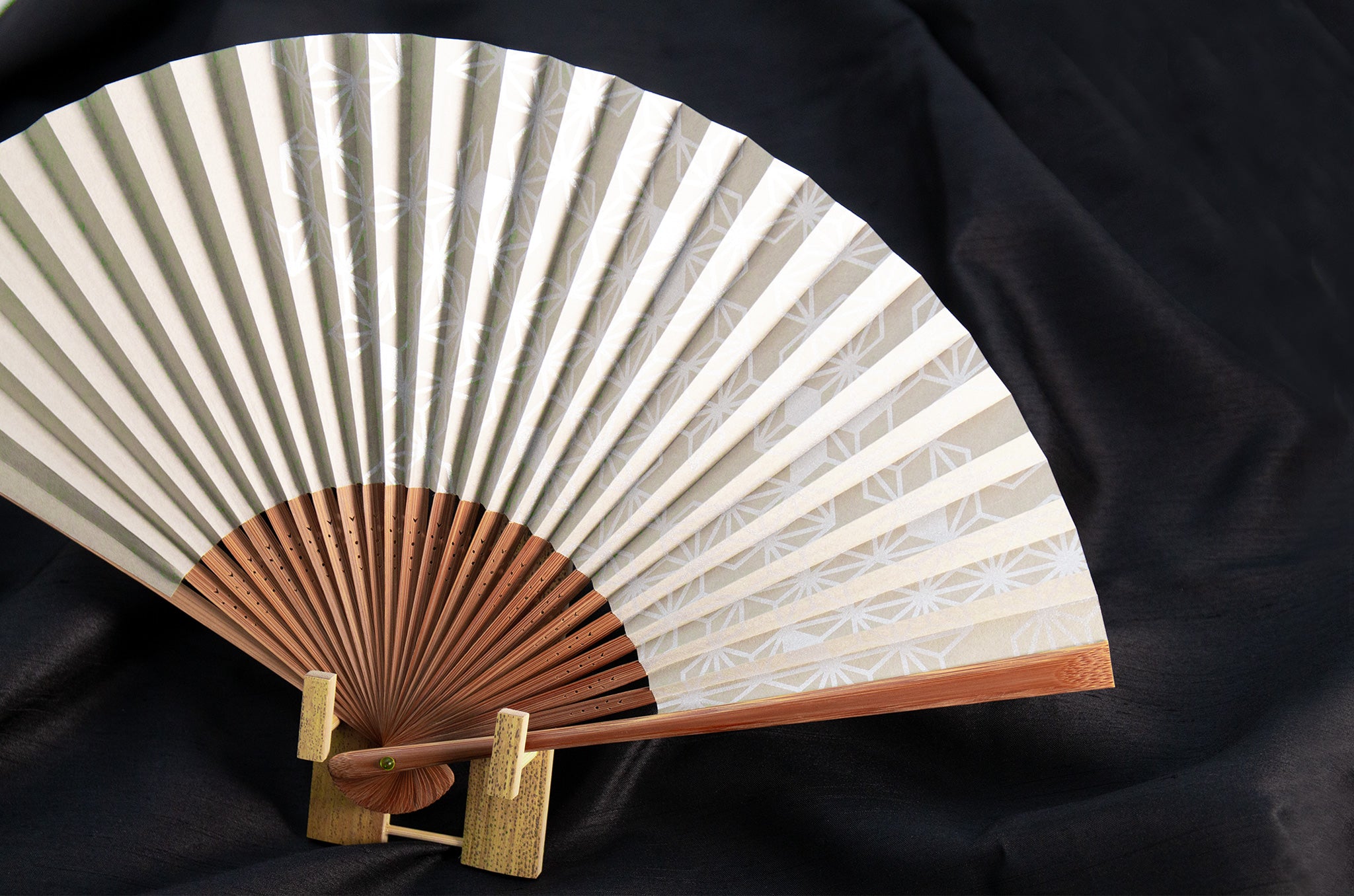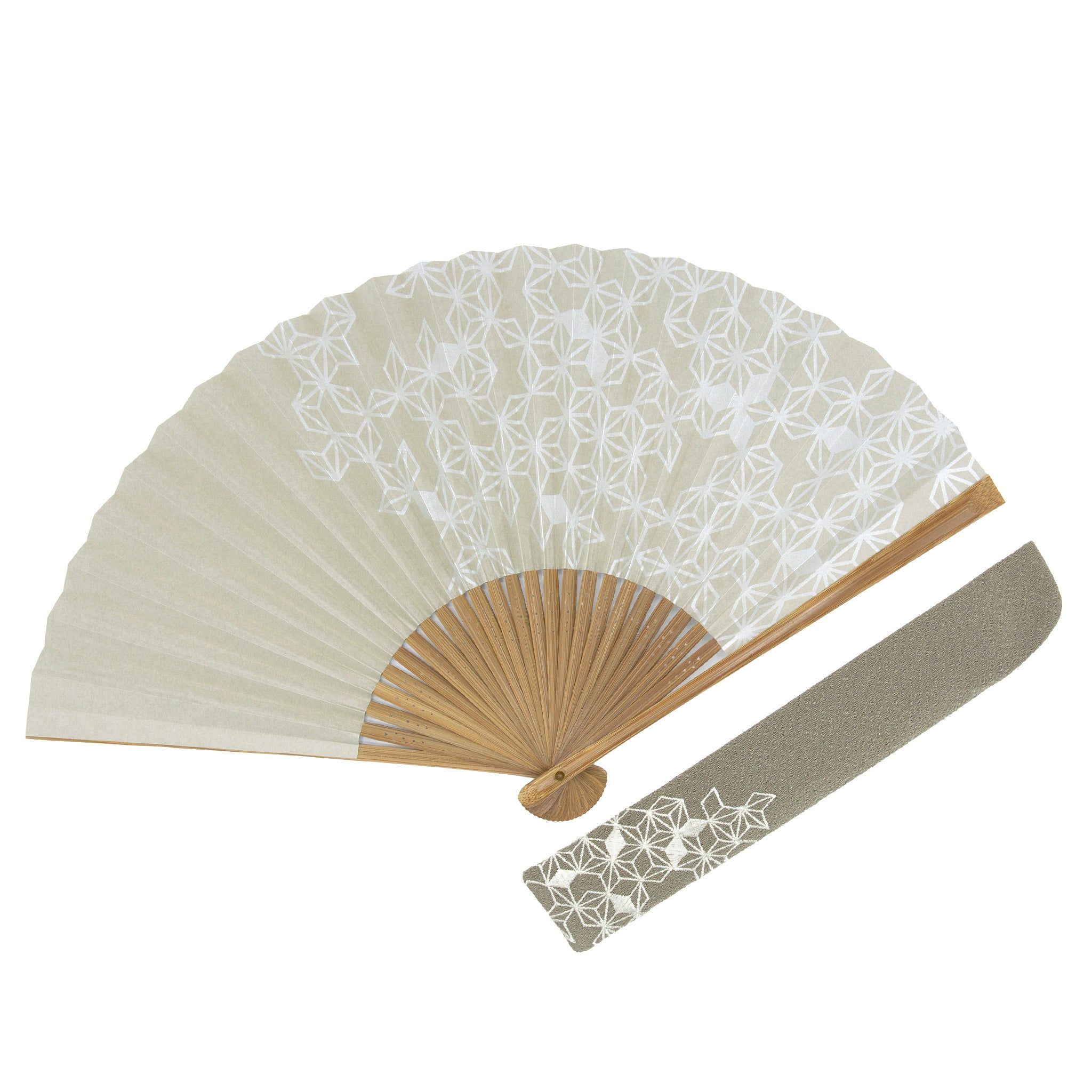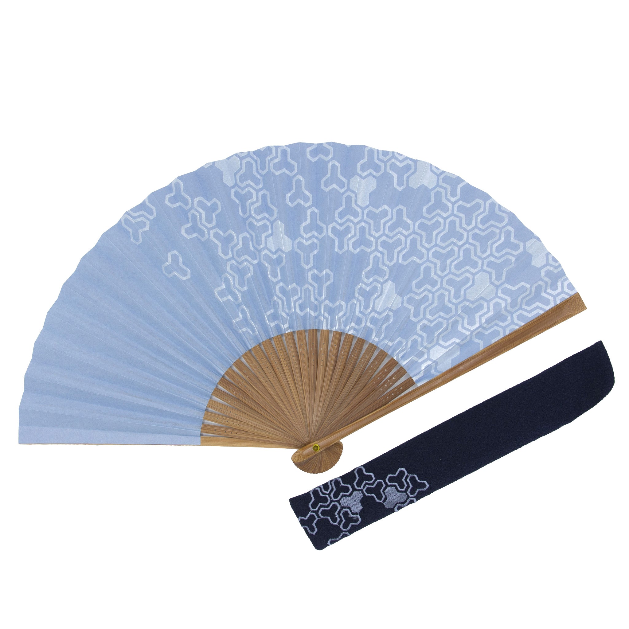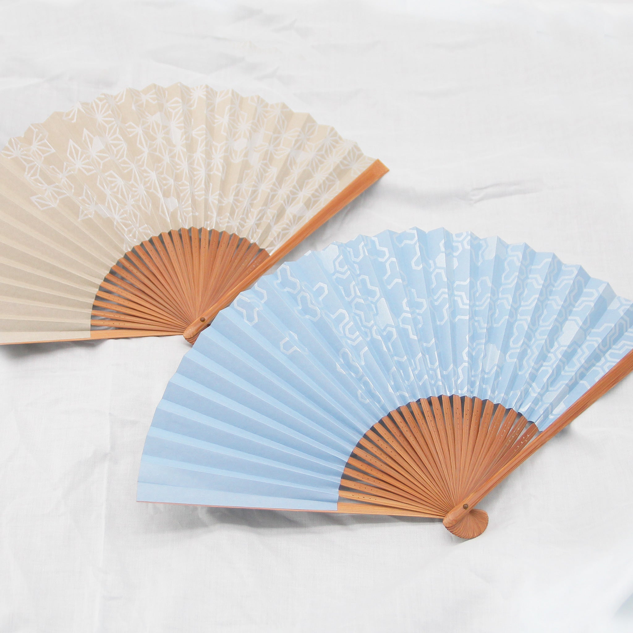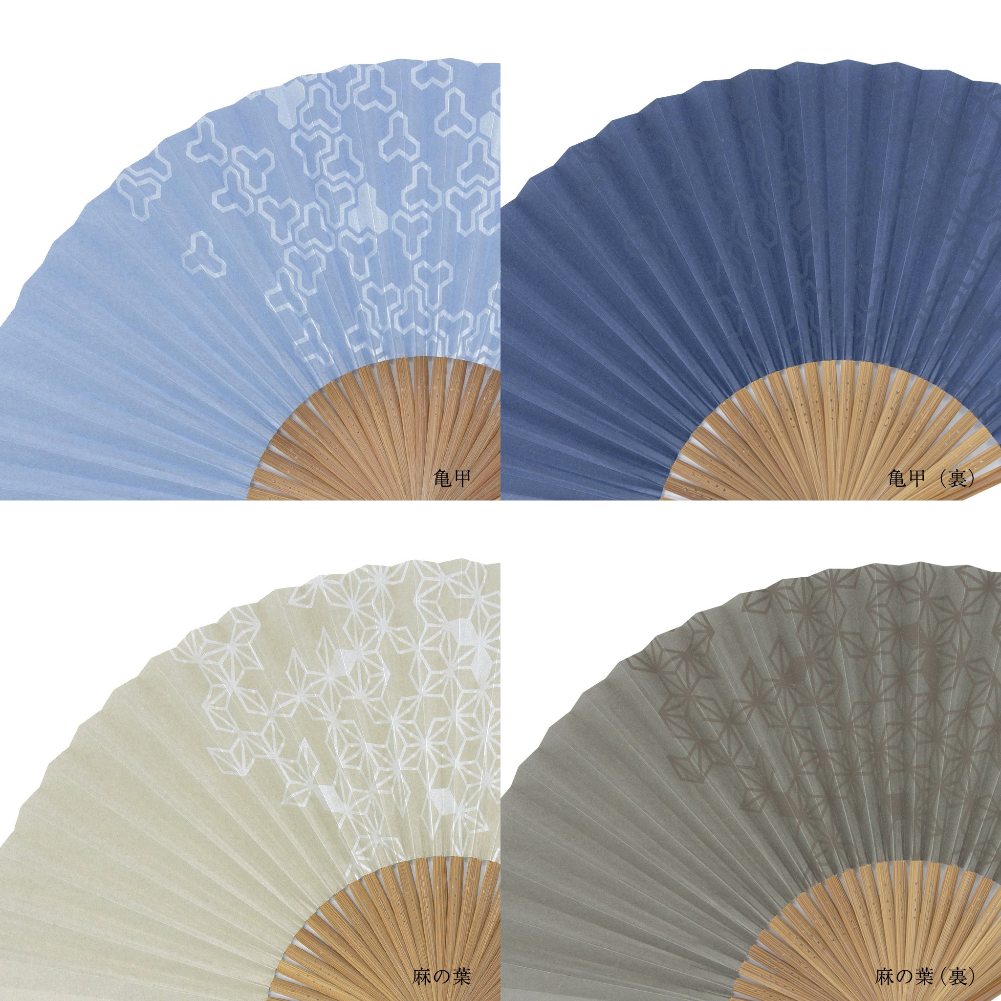 扇面に吉祥文様である「亀甲」と「麻の葉」をそれぞれ配した京扇子。