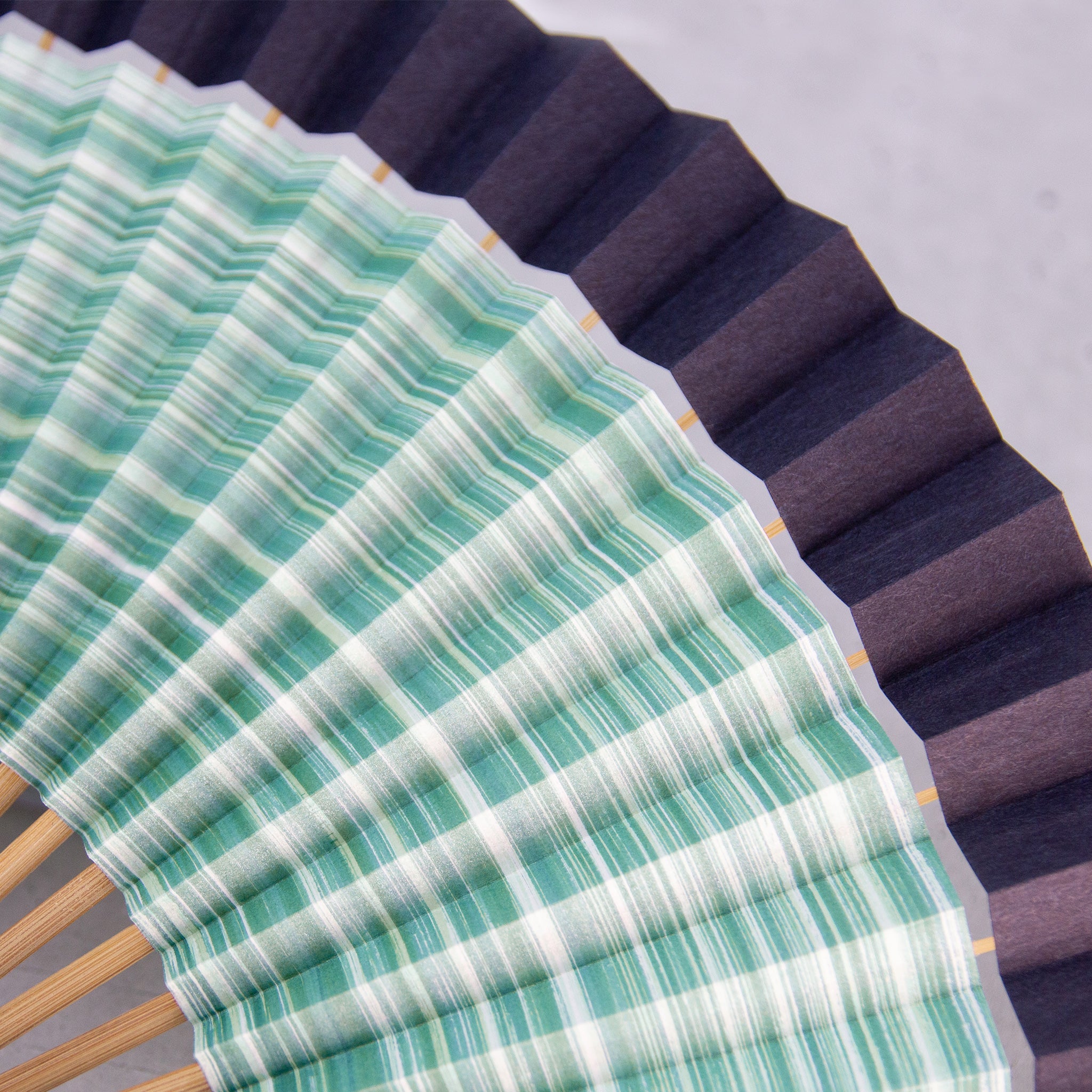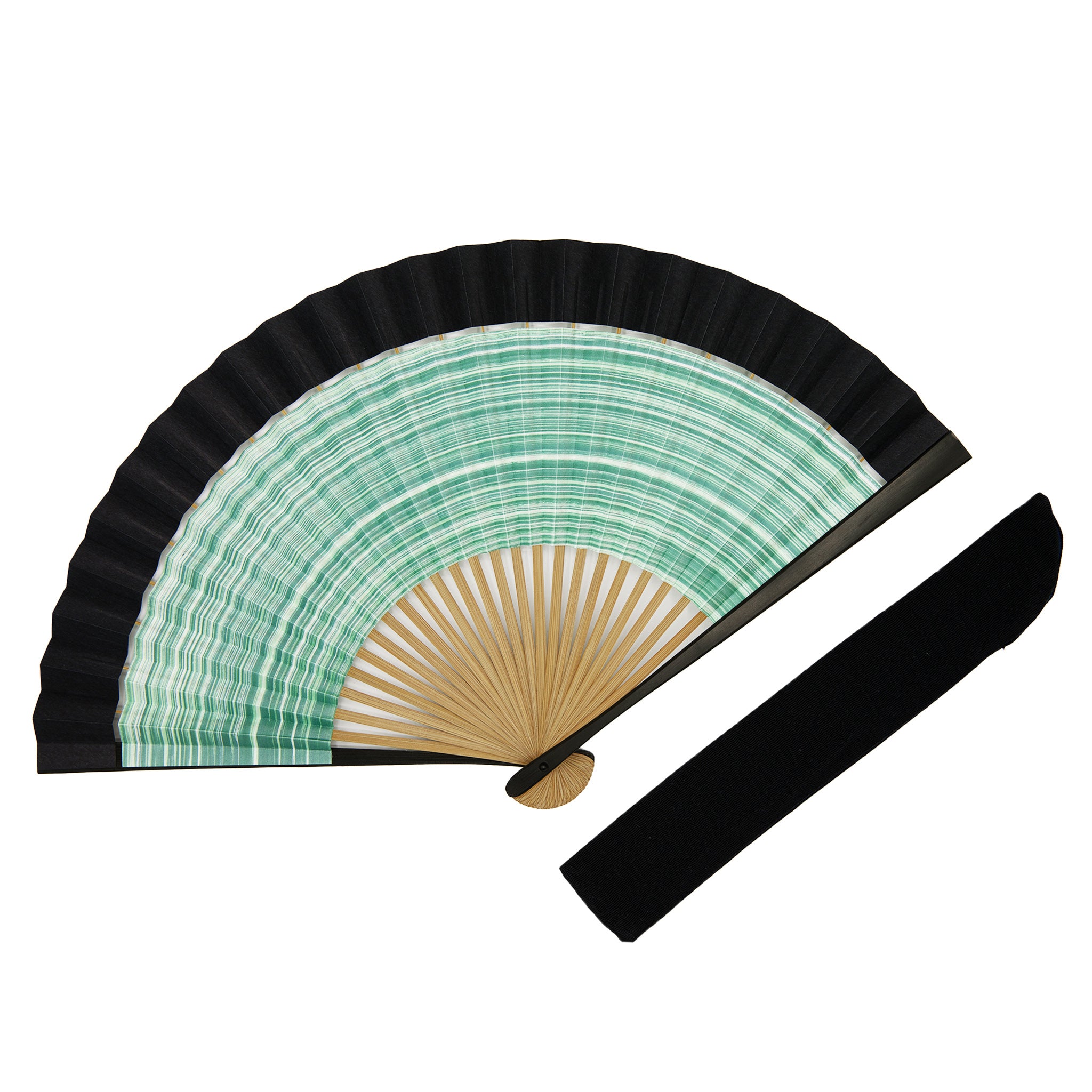 刷毛引きされた緑の扇面に切り返しの黒が美しいコントラストになっています。