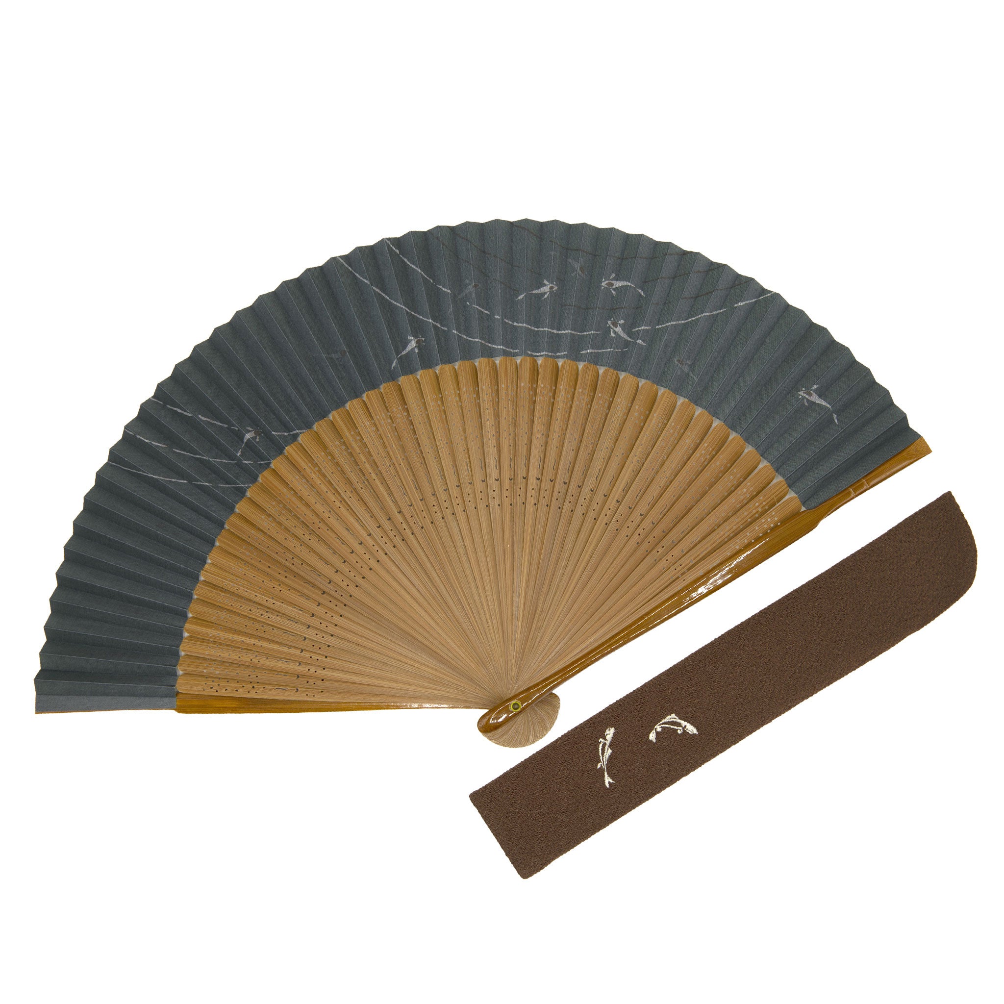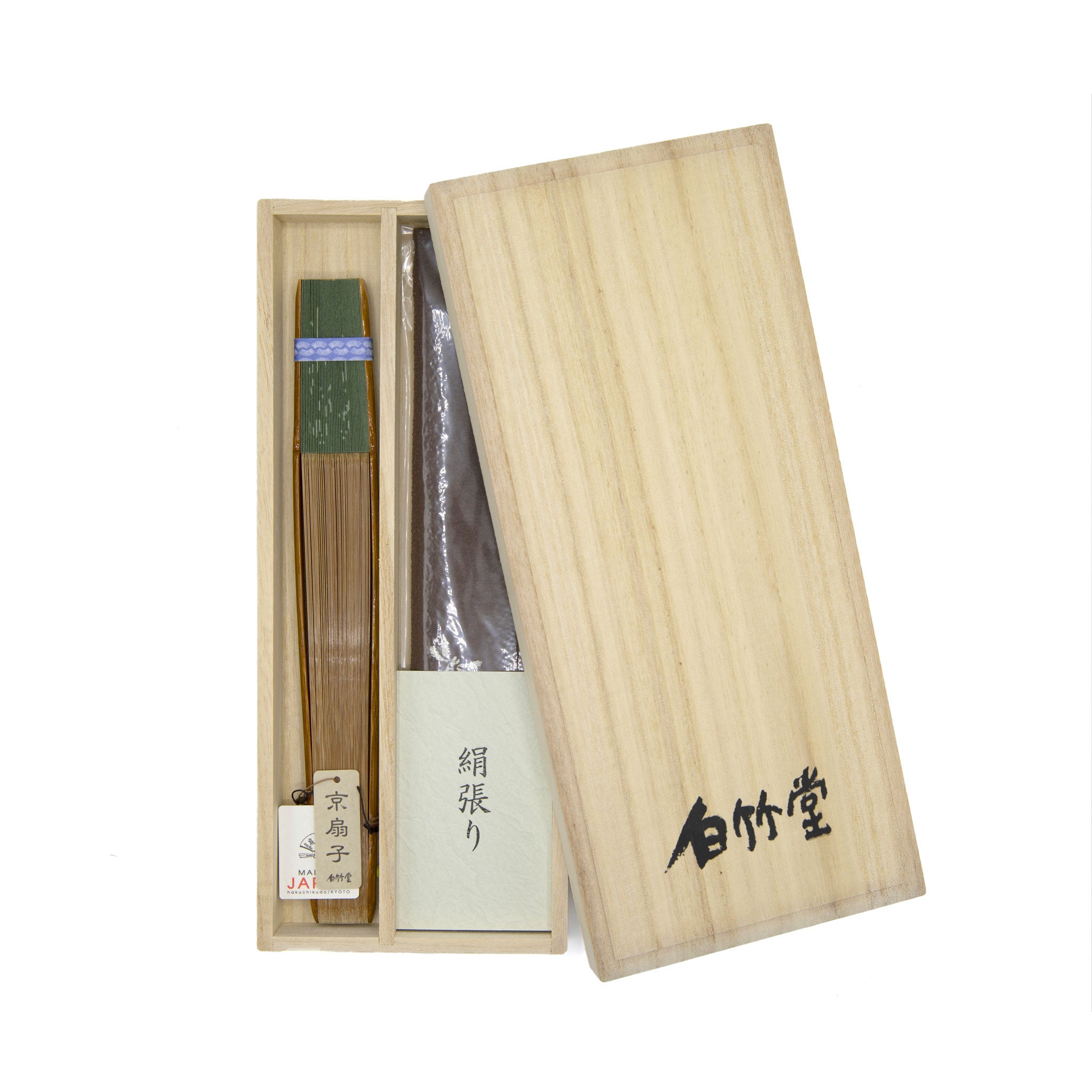 煙で燻し独特の風合いをつけた焼煤竹を扇骨に使用した京扇子です。