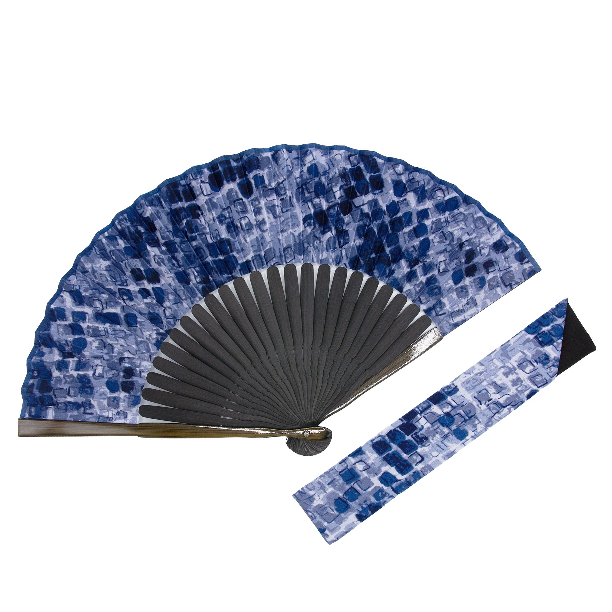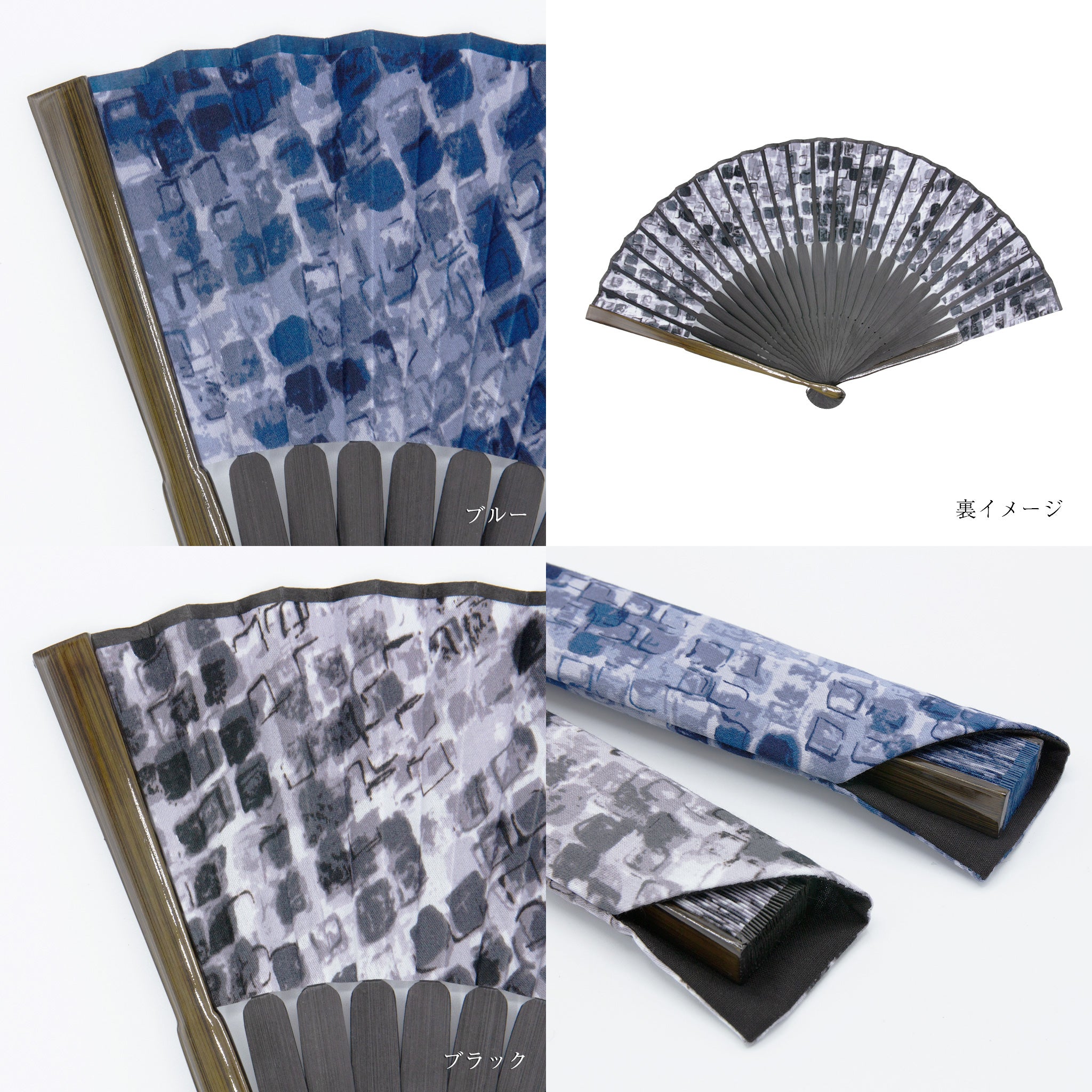 マジョリカタイルのような柄の扇面に深みのある家具調の親骨を組み合わせ、高級感ある扇子に仕上げました。