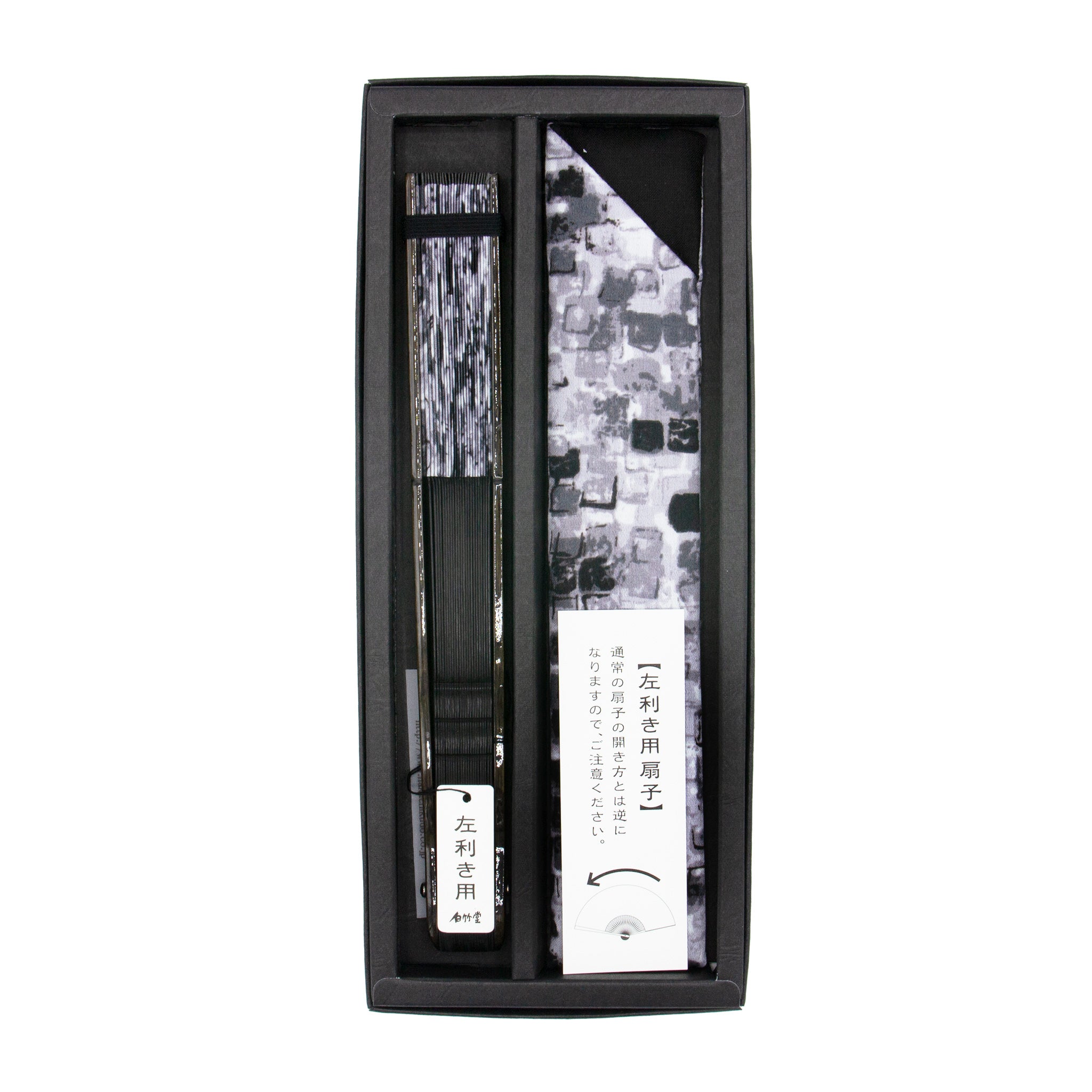 こちらは左利きの方が使いやすいよう、扇子の開く向きが通常とは逆となっております。開閉時にはご注意ください。