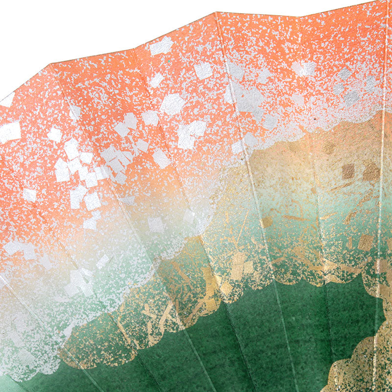 ほんのり桃色と抹茶色の組み合わせ。金箔の舞う様子が上品で高級感があります。