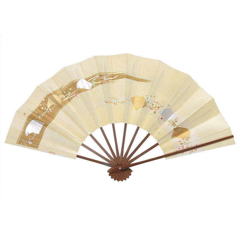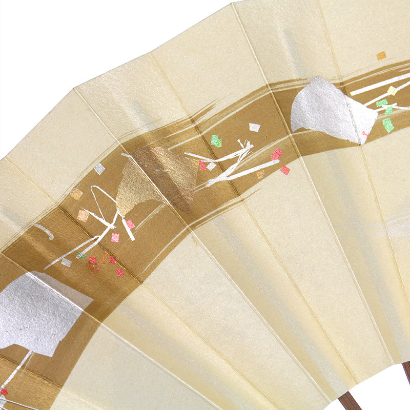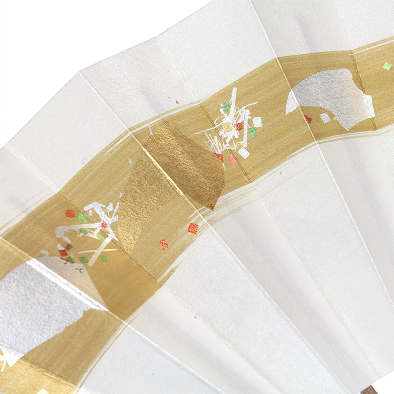 手描きの扇面に様々な箔が散らされ、高級感あふれる粋な扇子。