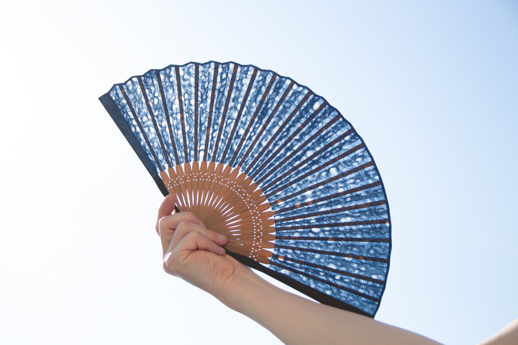 和紙に水を落として穴を開け模様を生み出す「落水和紙」を用いた京扇子。