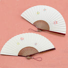 私のまりも写真ではわかりにくいですが、小さな白いお花も描かれていてとてもかわいく裏のピンクのお花もかわいいです。印刷ではない手書きの温かみを感じられる扇子です。 -