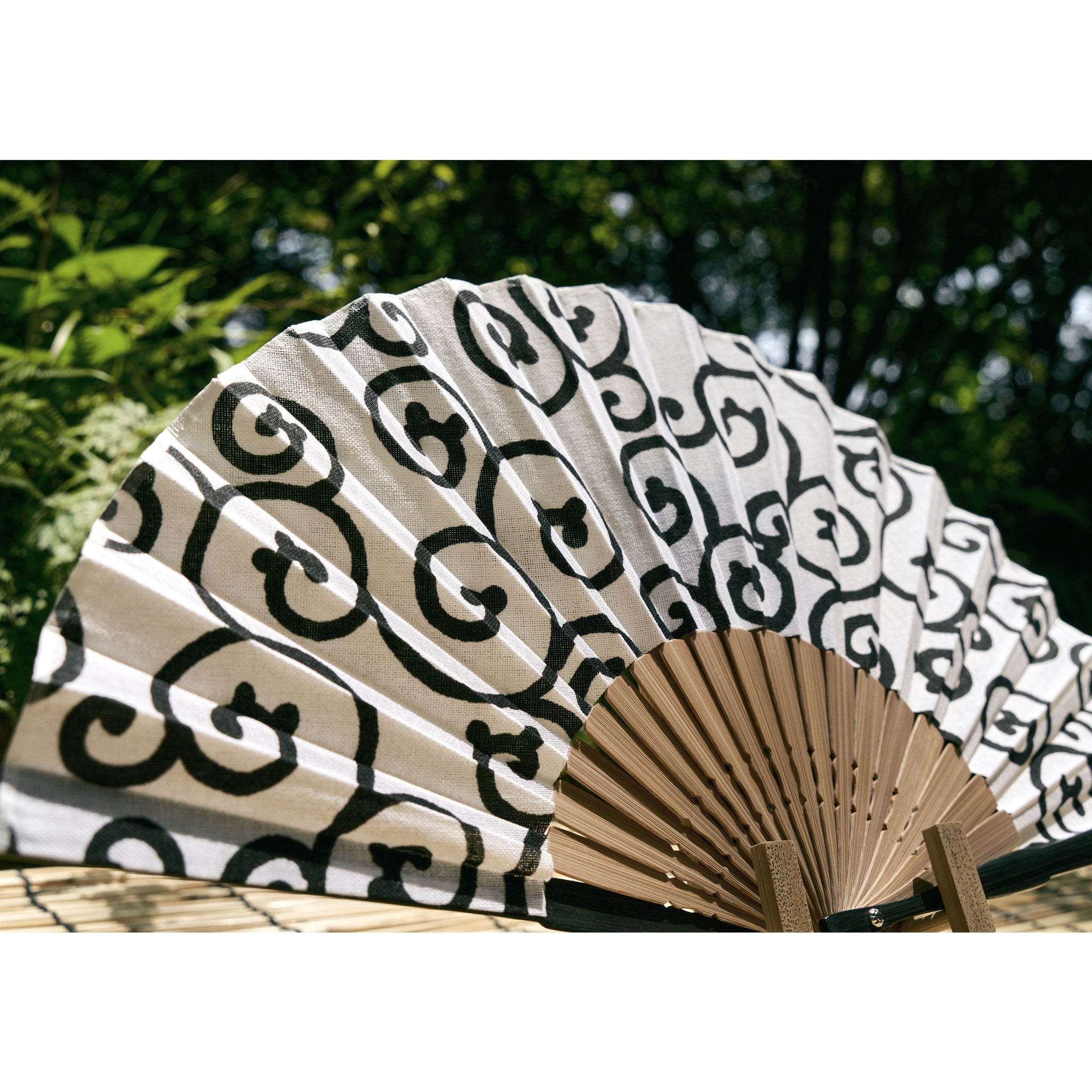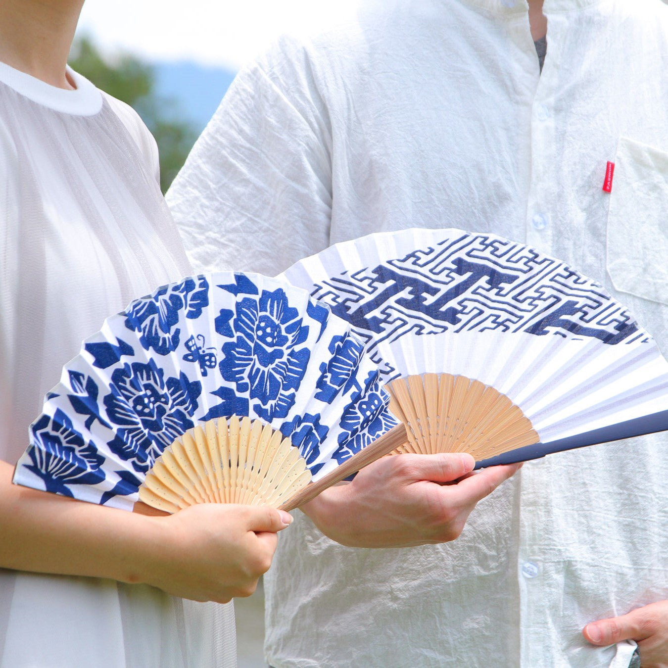 扇面には綿を使用し、浴衣をイメージした白×紺の組み合わせが涼しげ。