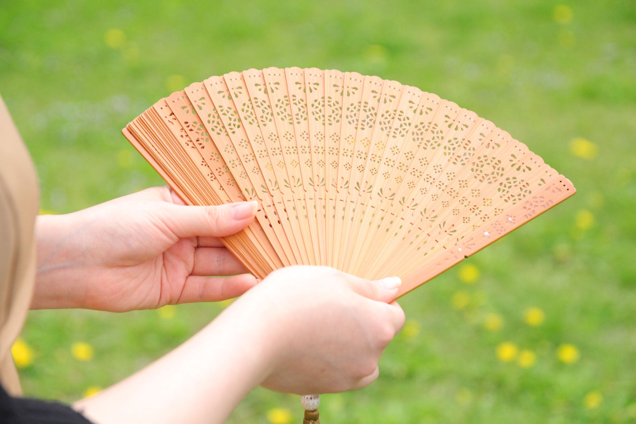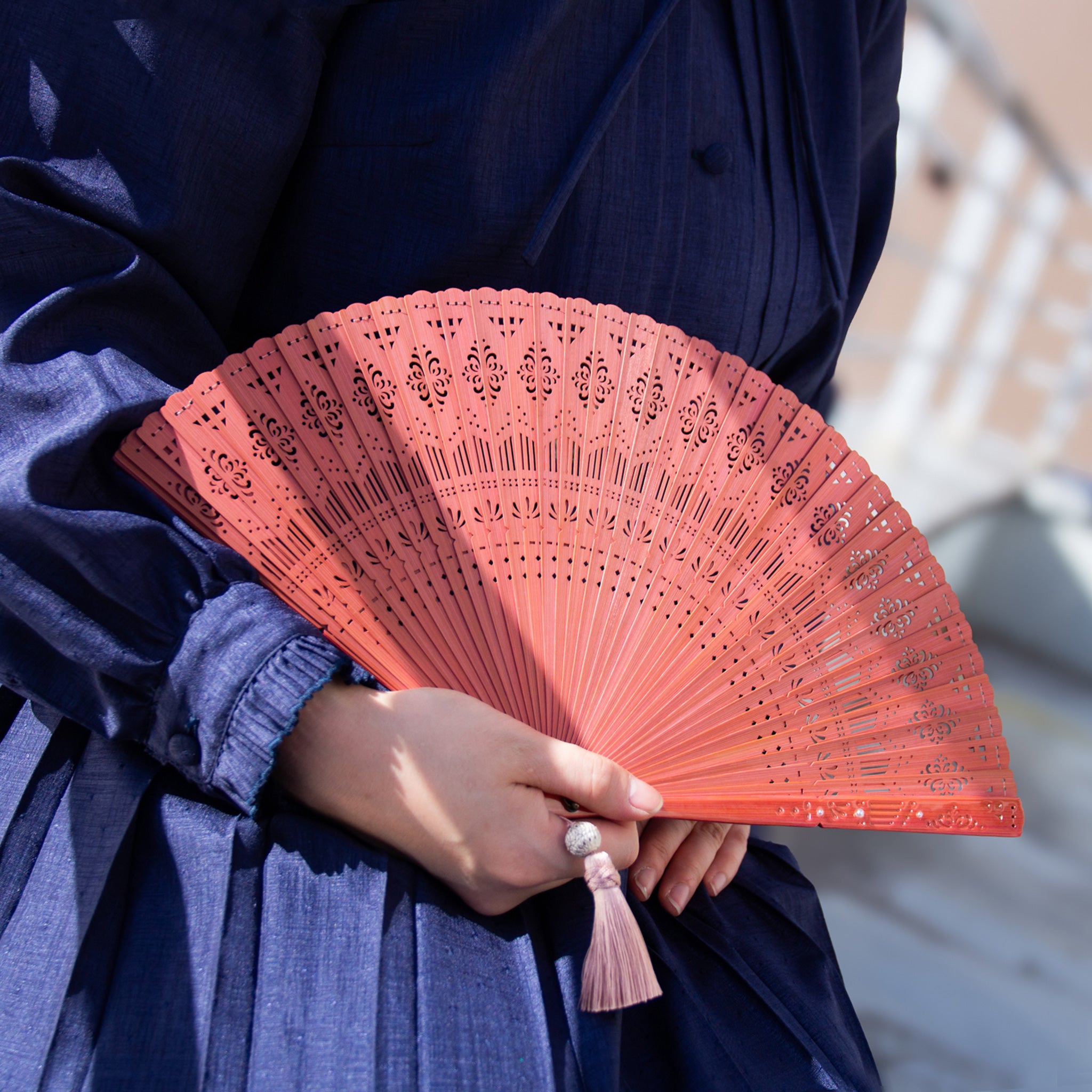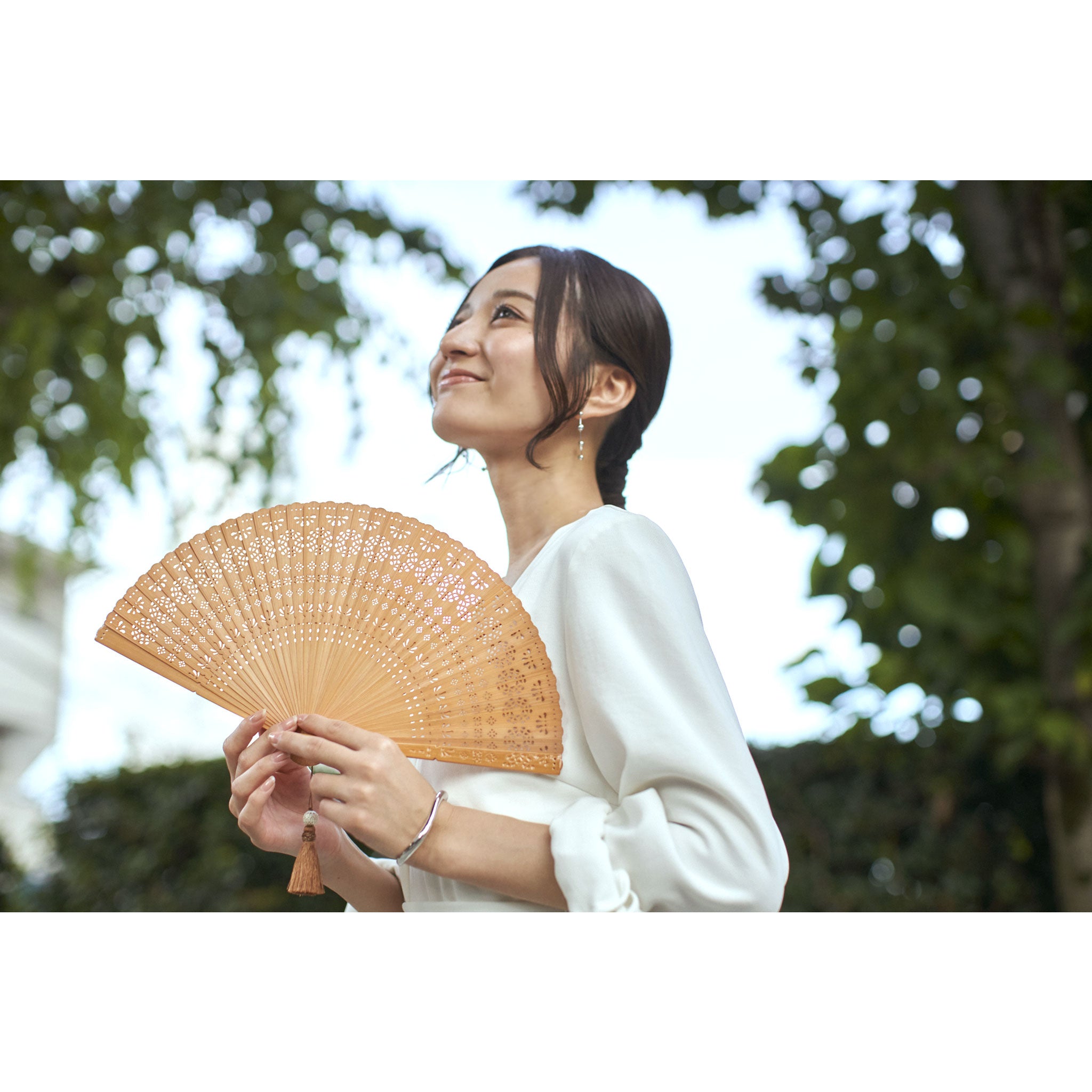 竹のみでつくられた透かし彫りが美しい扇子です。”しゃらん”と流れるように開閉でき、所作まで優雅に演出。