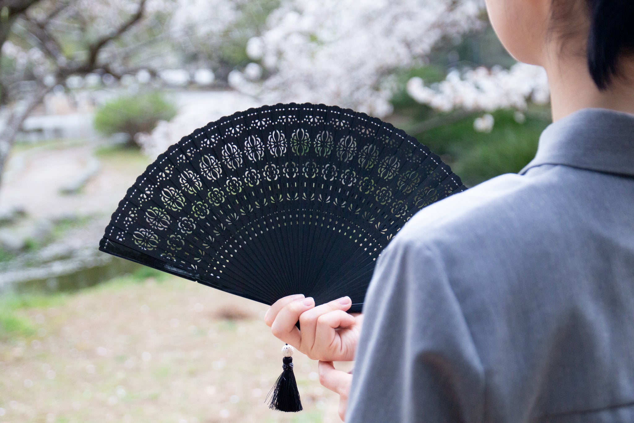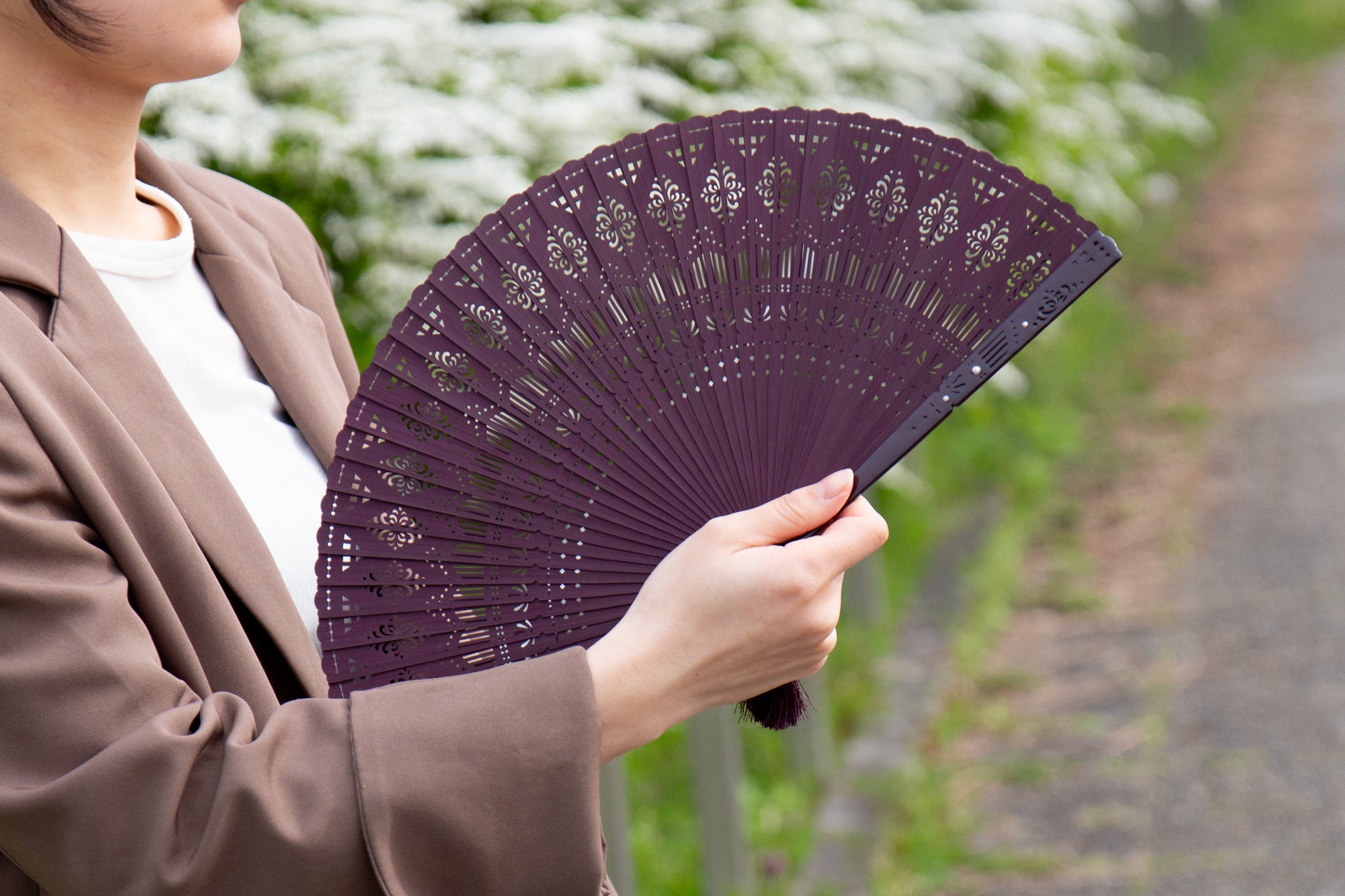 優雅にゆっくりあおいでそよ風を楽しむ、そんな扇子ですね。
