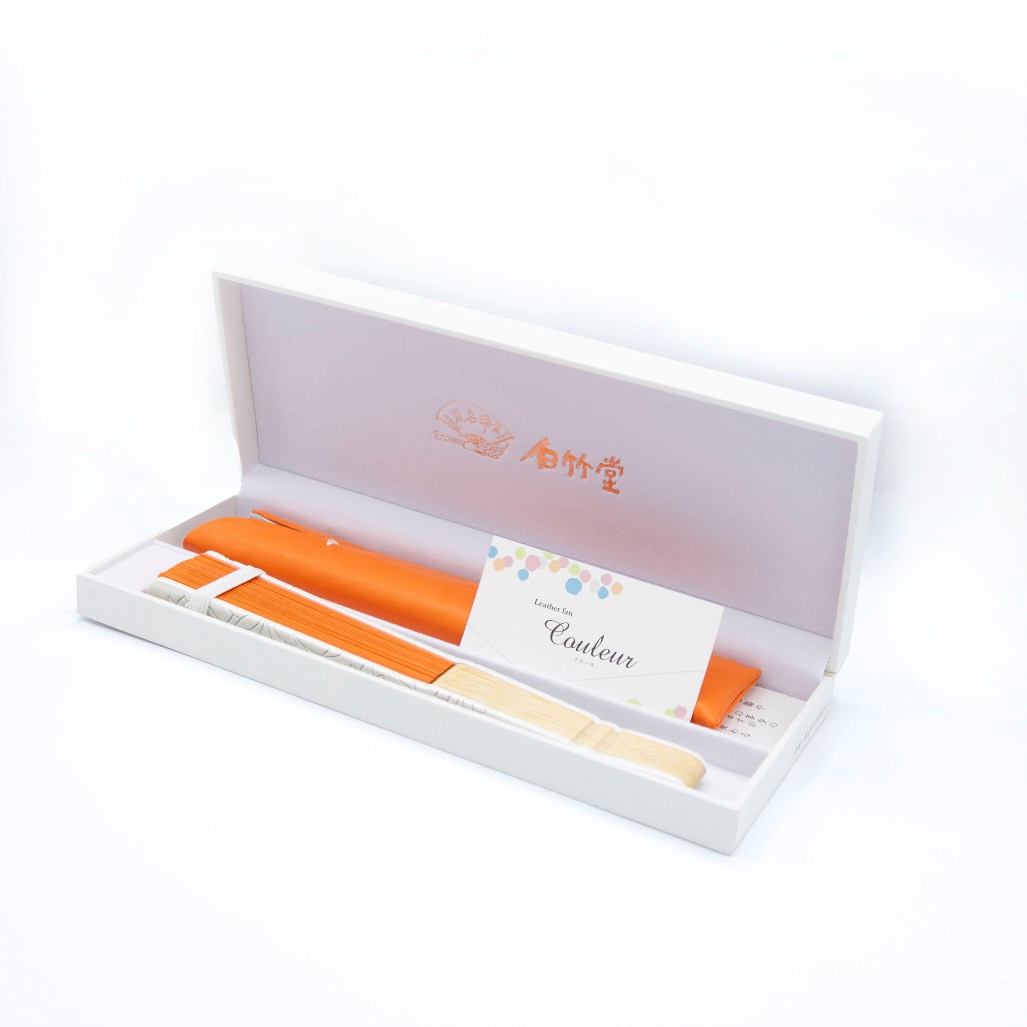 コバルトとペアーの2本を購入しました。馬革というのは初めてみましたが、牛革よりも柔らかな感触がしますね。色も美しいです。扇子にあわせてファッションを考えるのが楽しいですね。でも、特に気に入ったのは箱です。笑 白竹堂さんのロゴ入りで非常に高級感があります。白色なので、扇子を収納したときにより輝くような気がします。満足です。