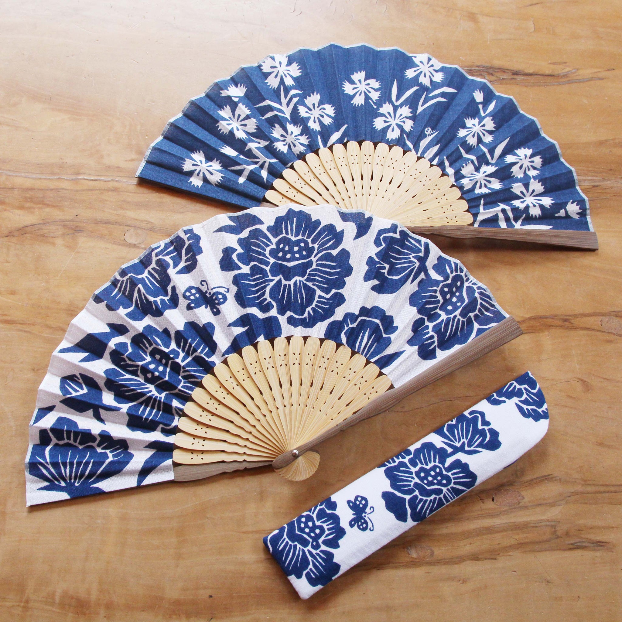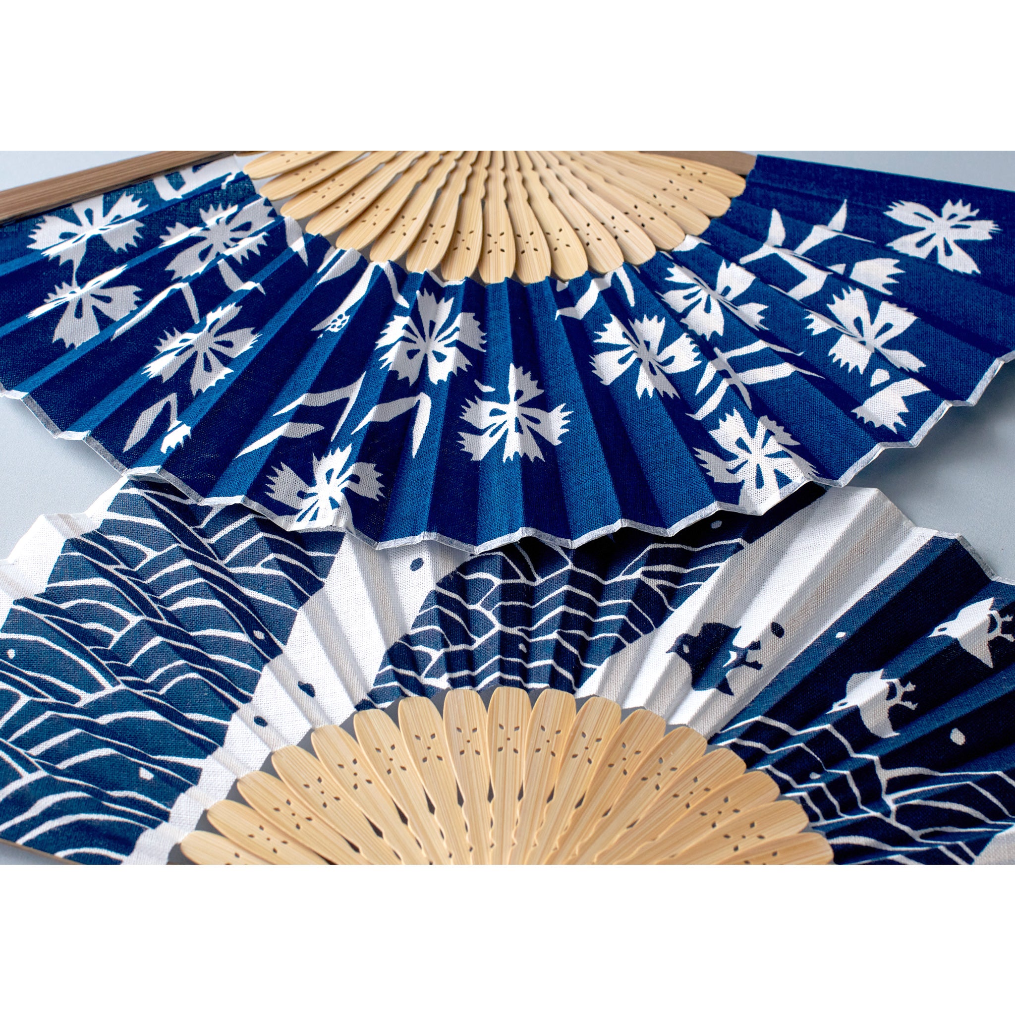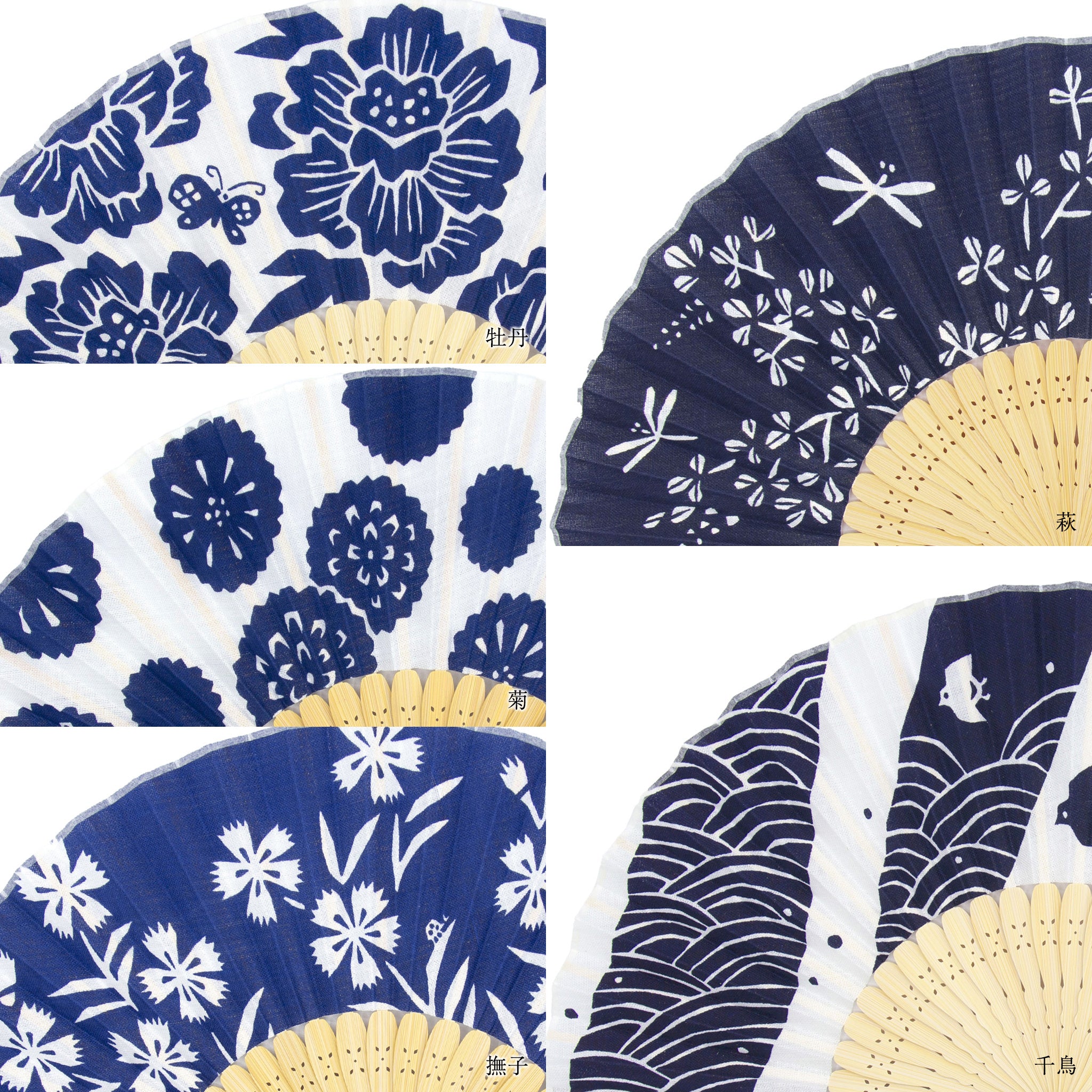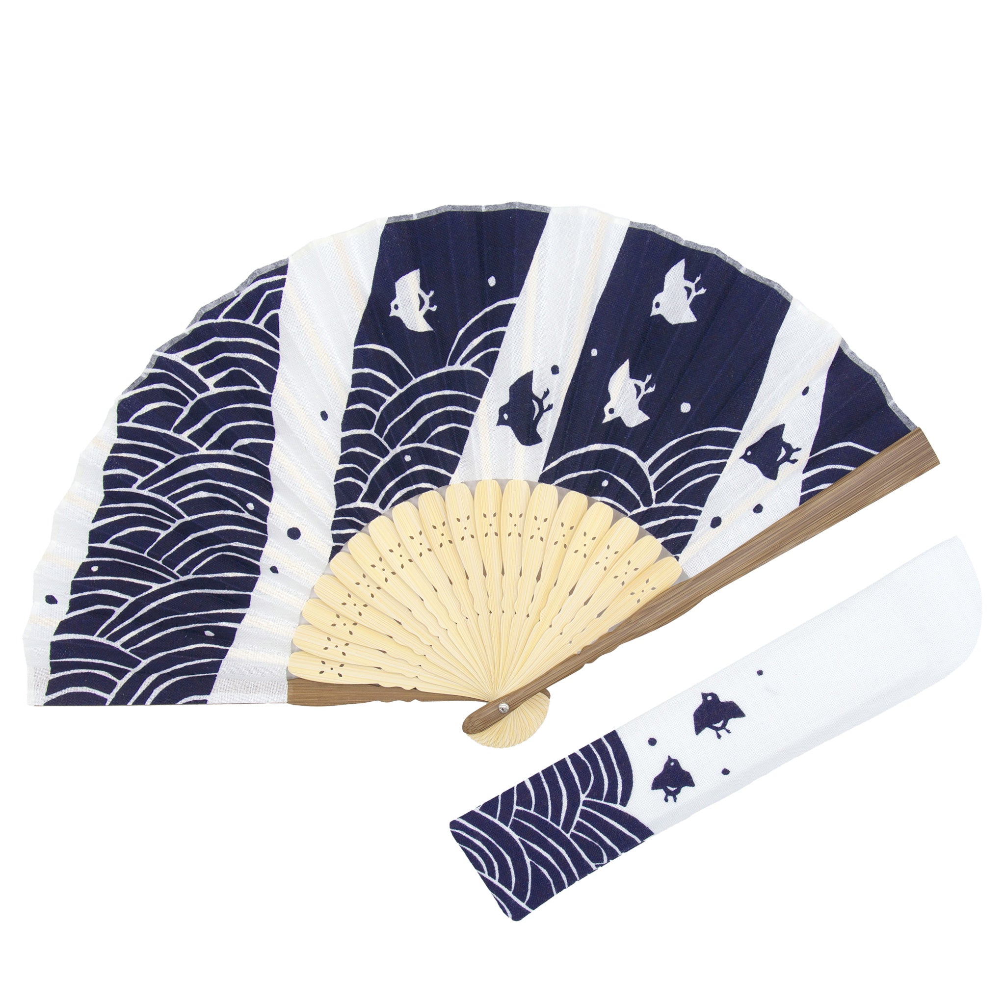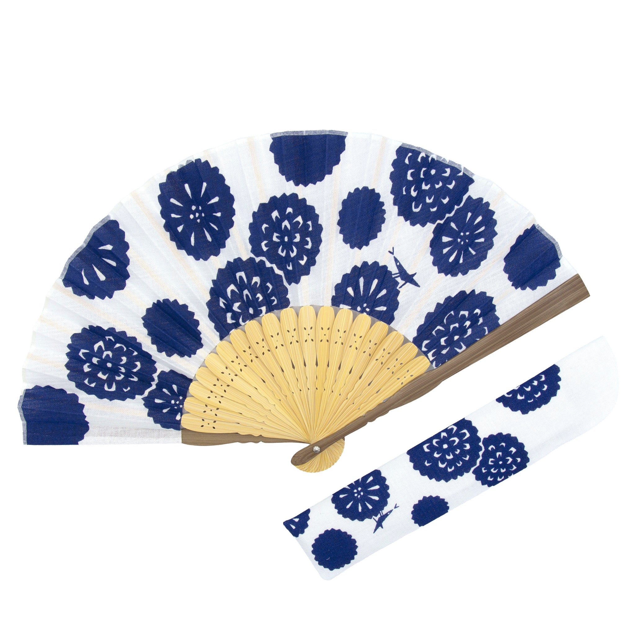 扇面には綿を使用し、浴衣をイメージした白×紺の組み合わせが涼しげ。