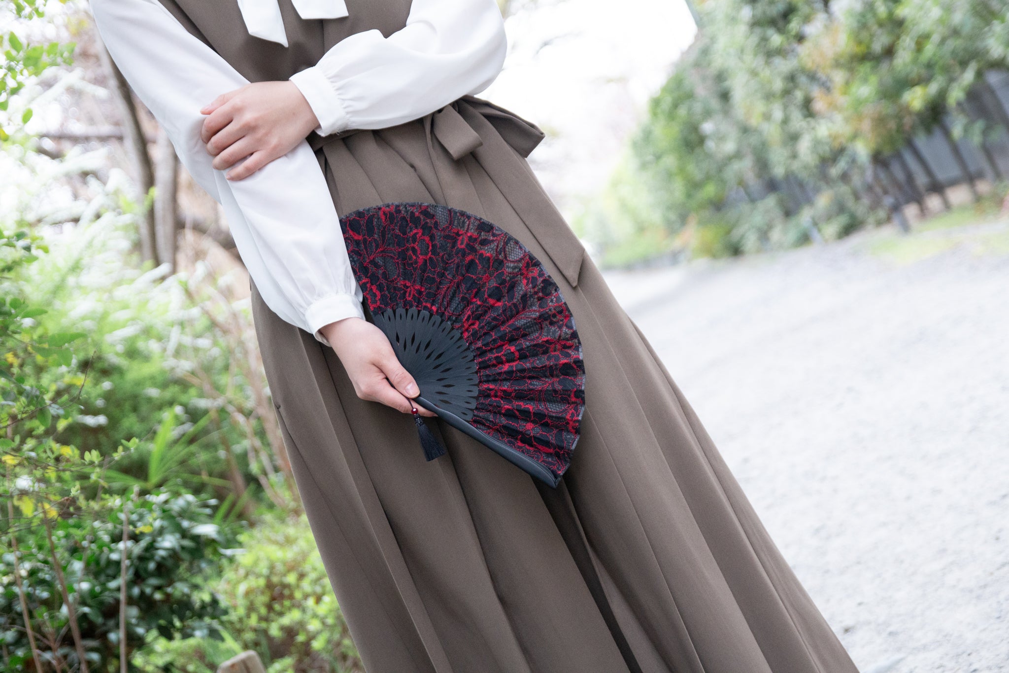 レースの花びらが咲き誇る扇面は、かわいらしくも上品な魅力にあふれています。