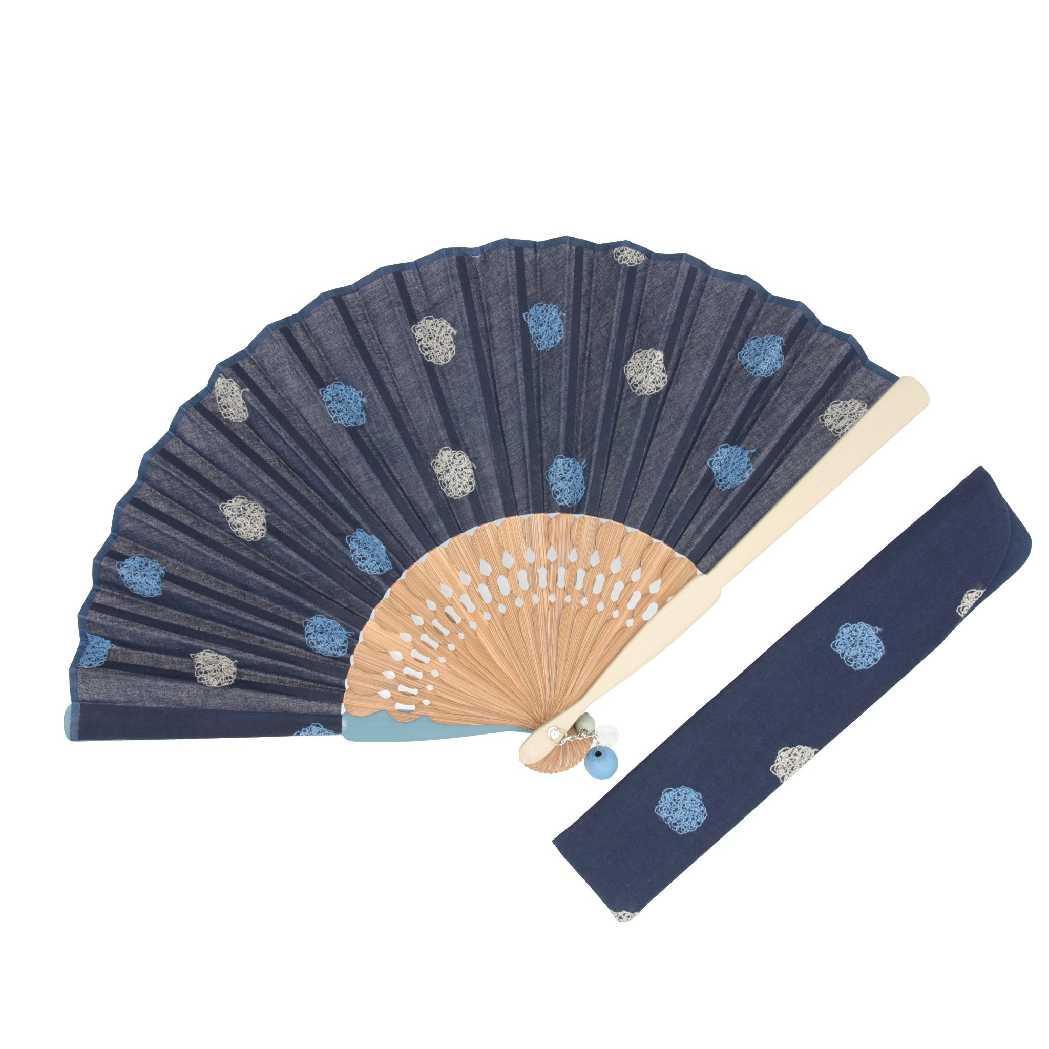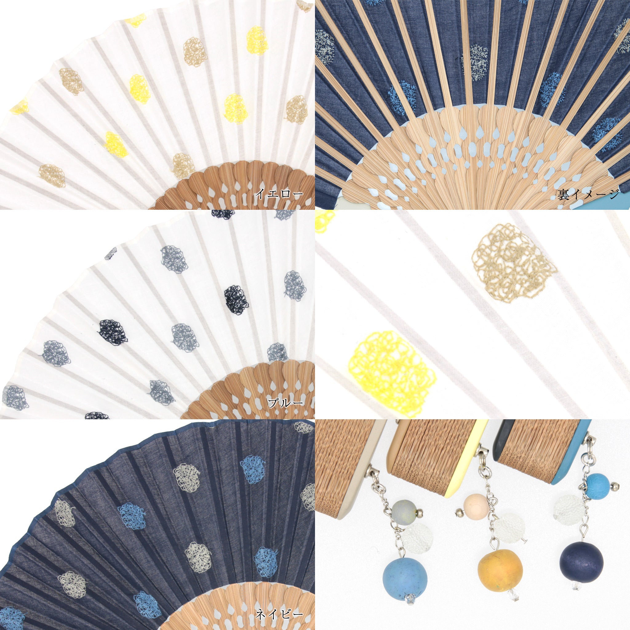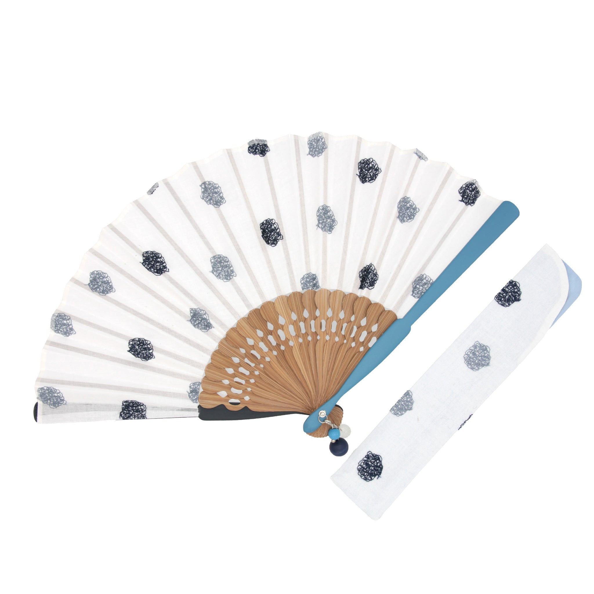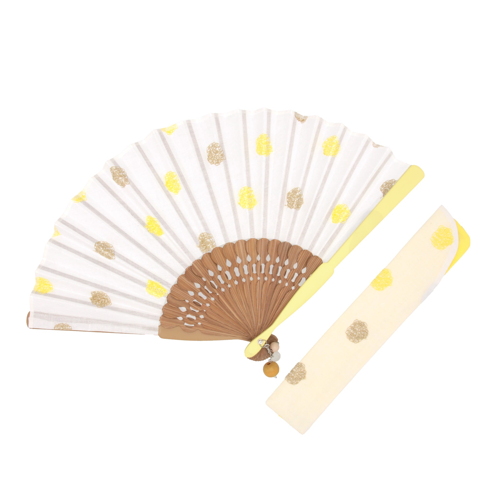 ポルカドット柄が織り込まれた爽やかなデザインのコットン扇子。