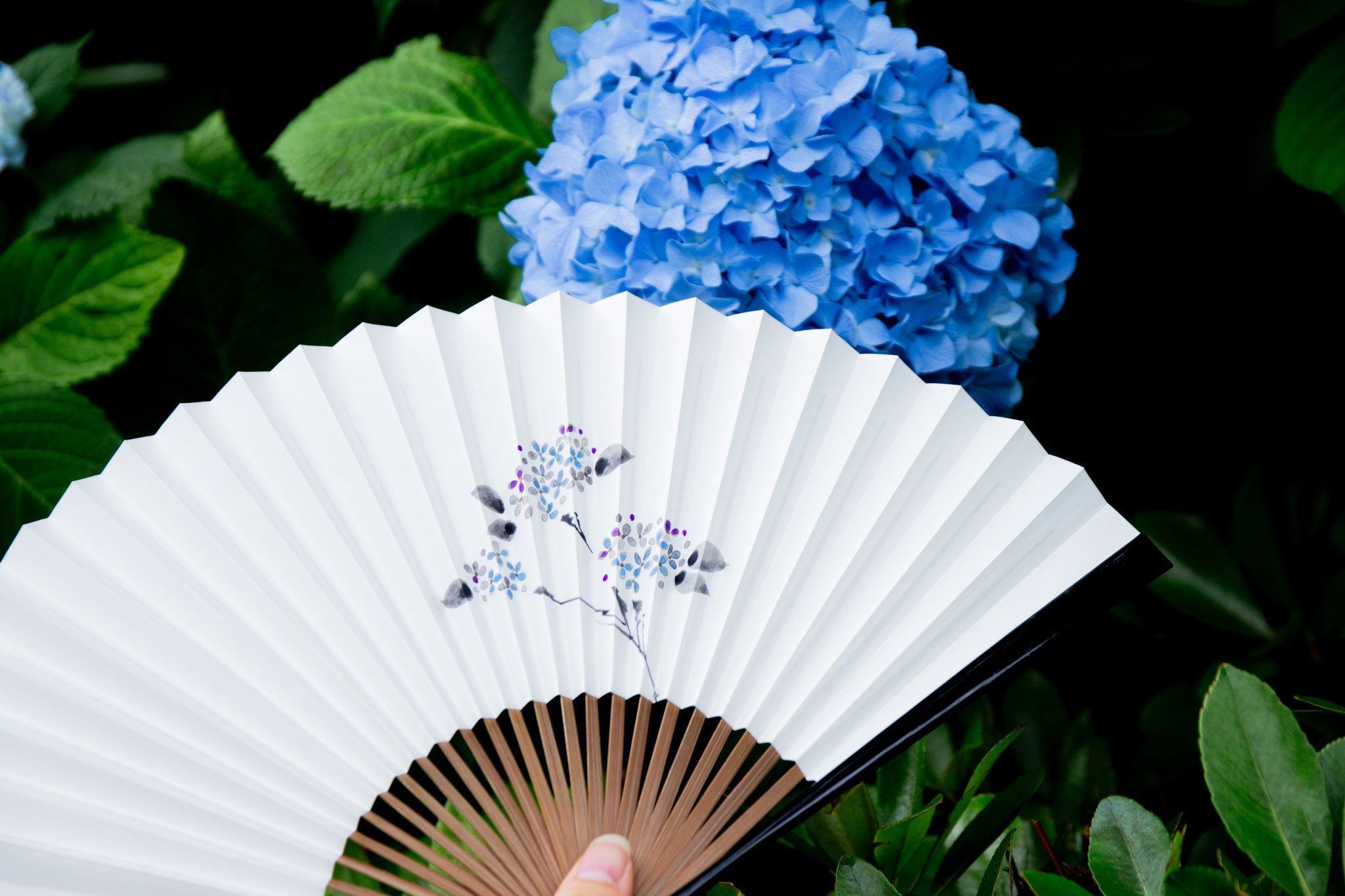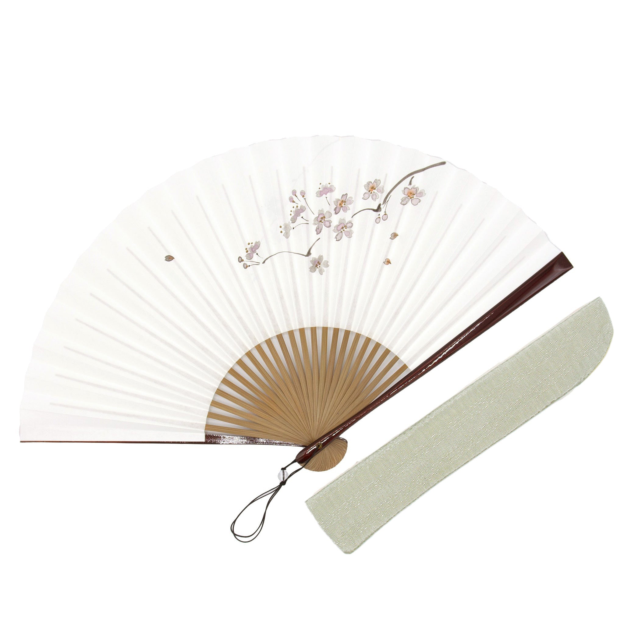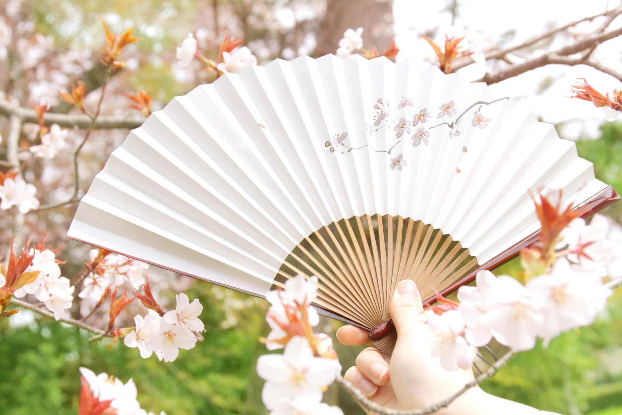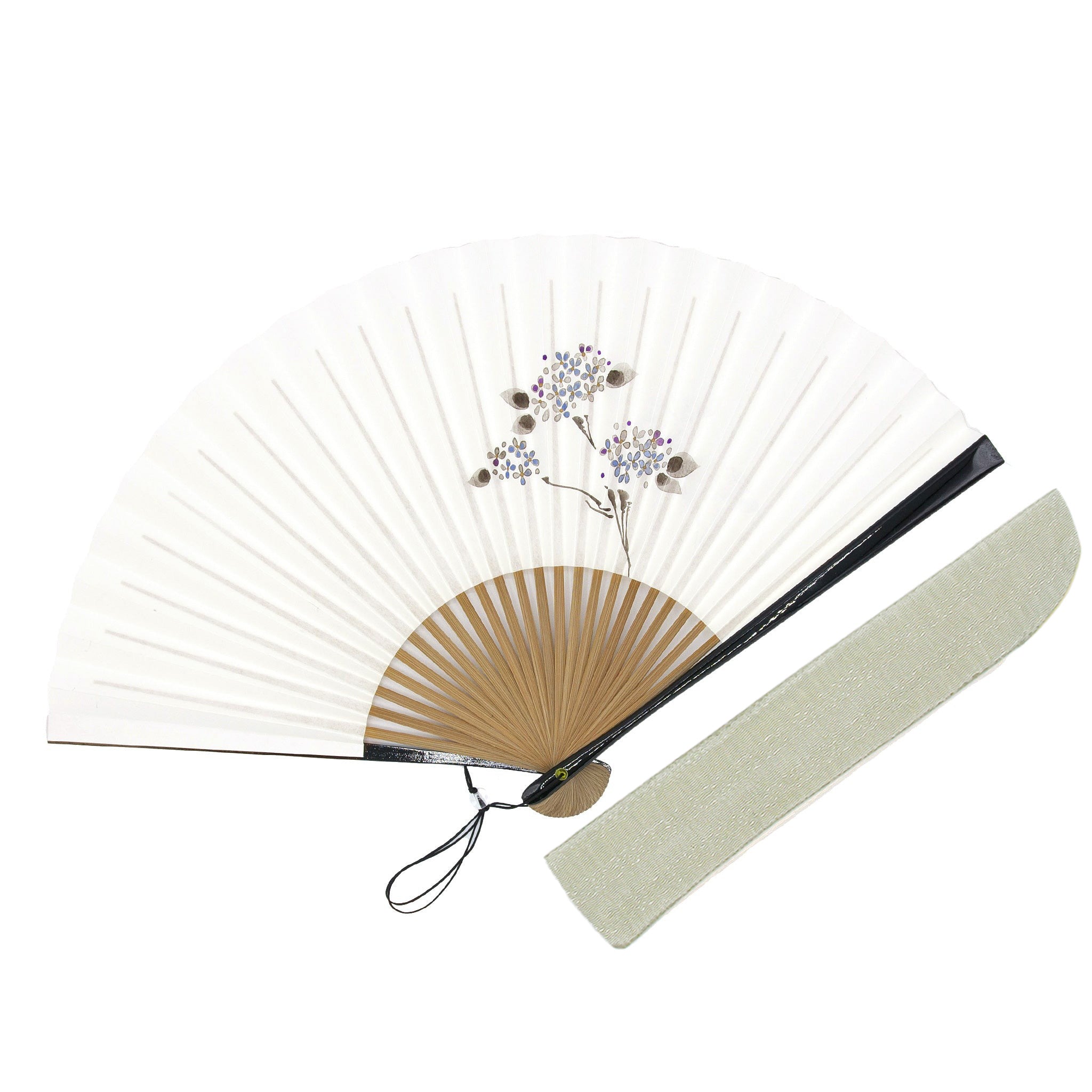 手描きで描かれた上品な花の扇面に塗りの親骨を組み合わせた、性別に関係なくお持ちいただける扇子です。