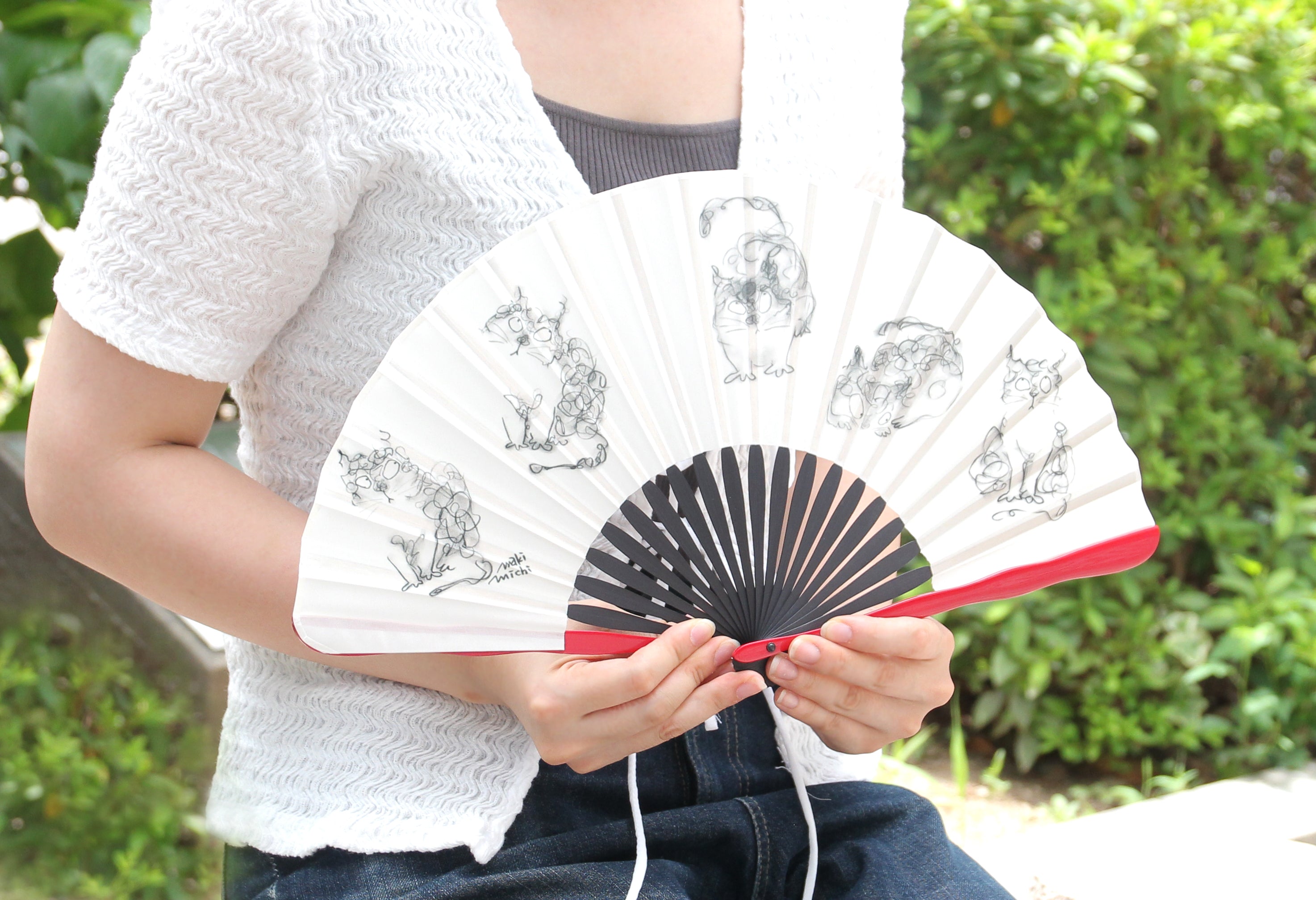 イラストレーターmakimichiさんのイラストをもとにした生地製の扇子。