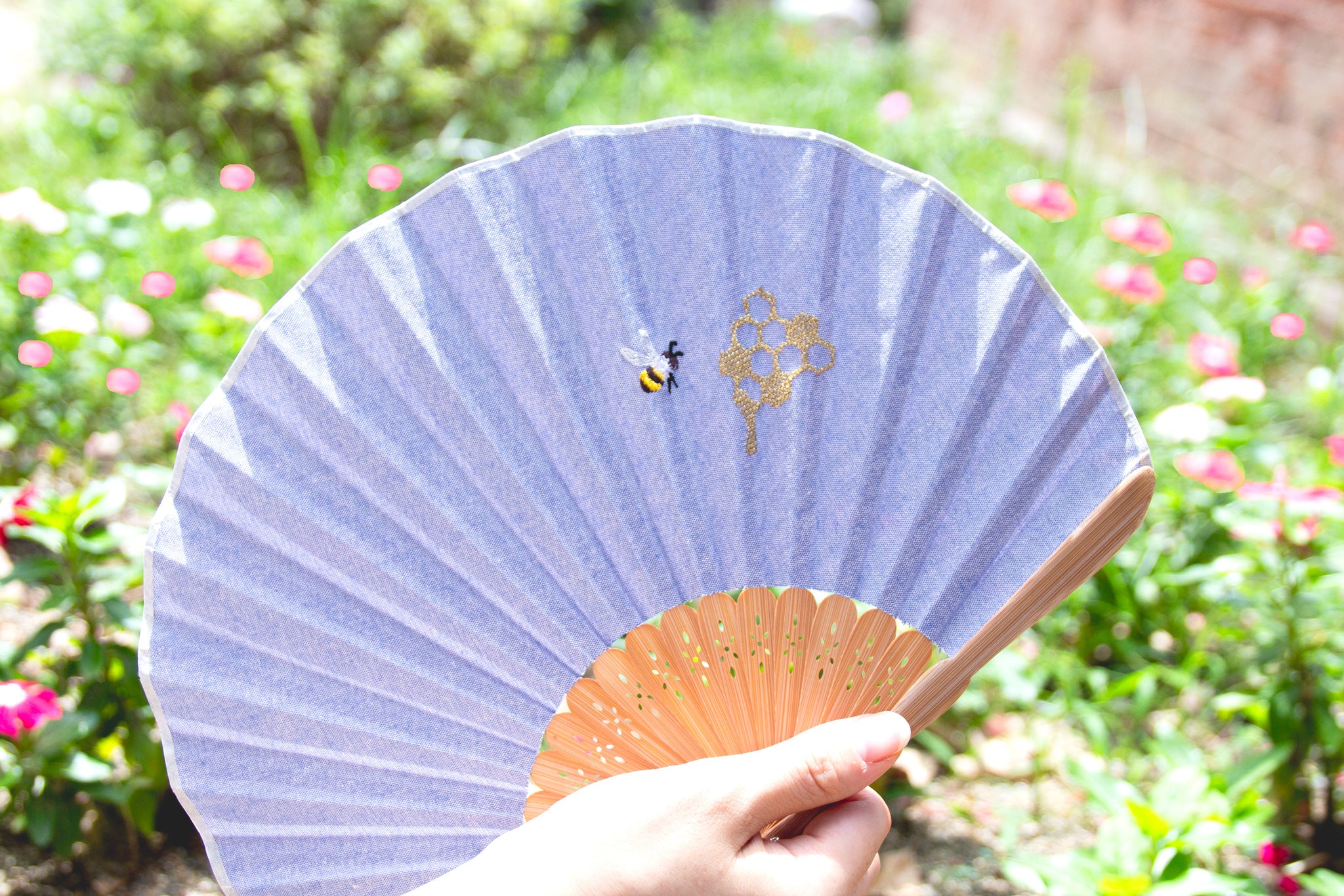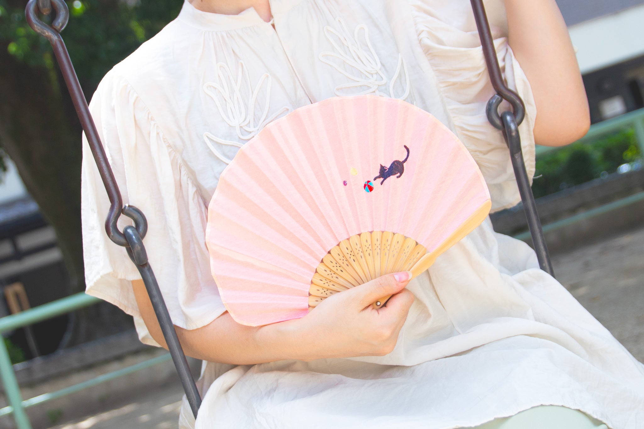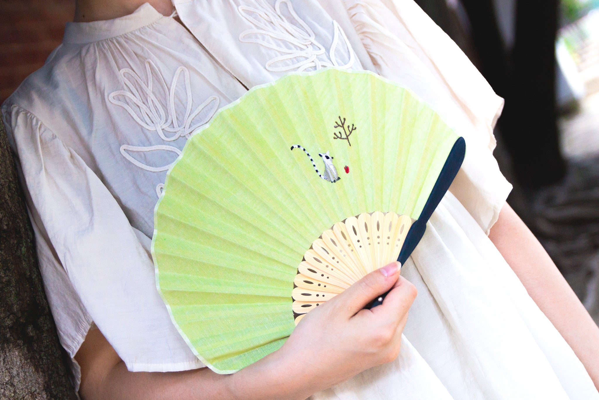 まるくコンパクトなシェル型の扇子なので、カジュアルな服装にぴったり。