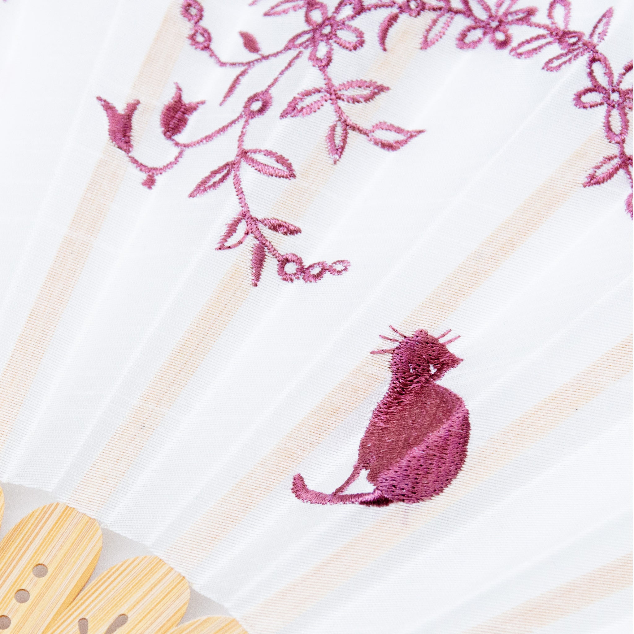 猫のシルエットと花が繊細な刺繍で表現されたデザイン。