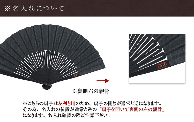 - 名入れ箇所は、<扇子裏面の左端の親骨>です