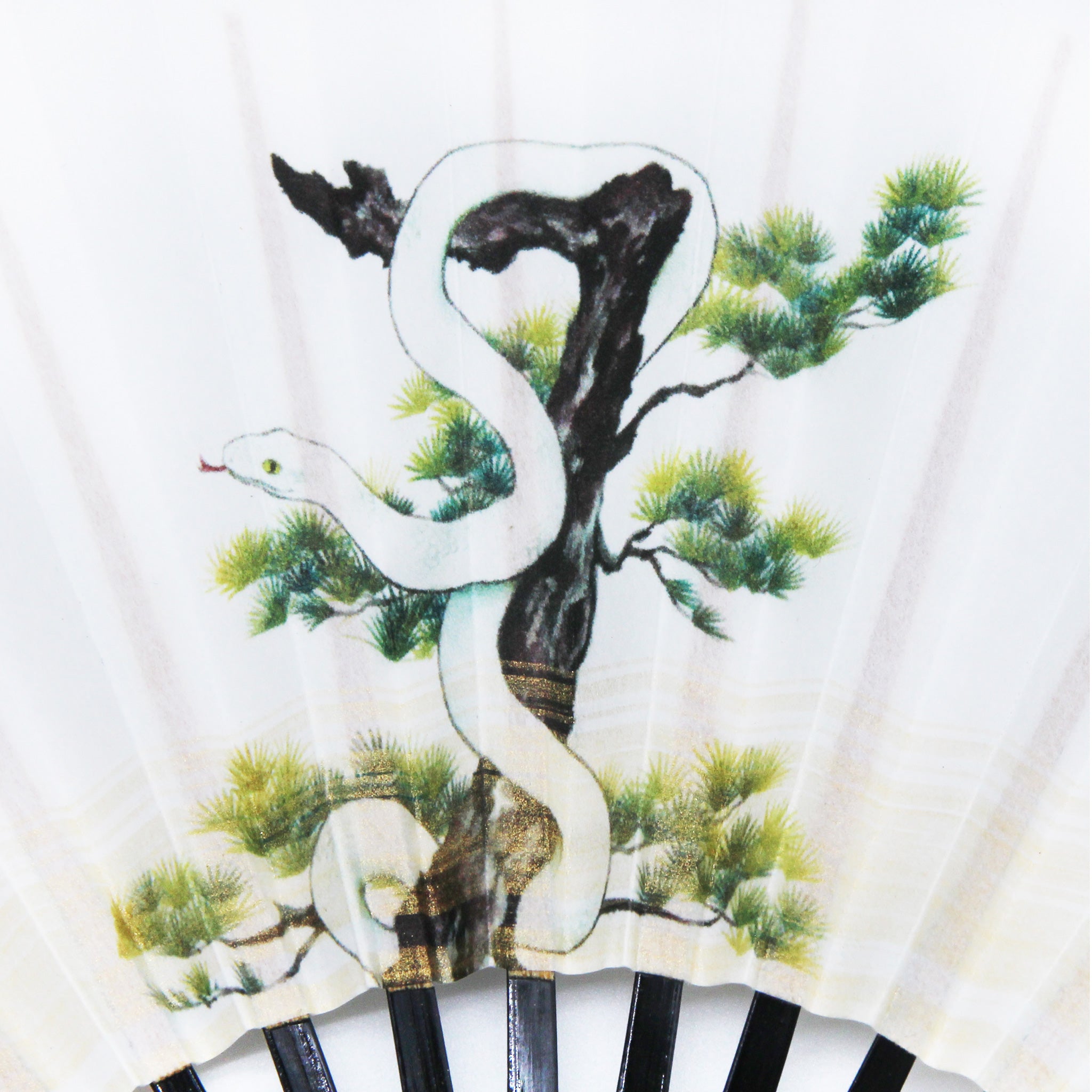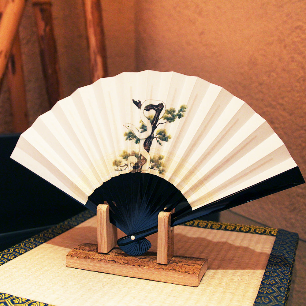 高級感のある黒塗りの骨に、扇面は干支である『巳(へび)』のデザインです。