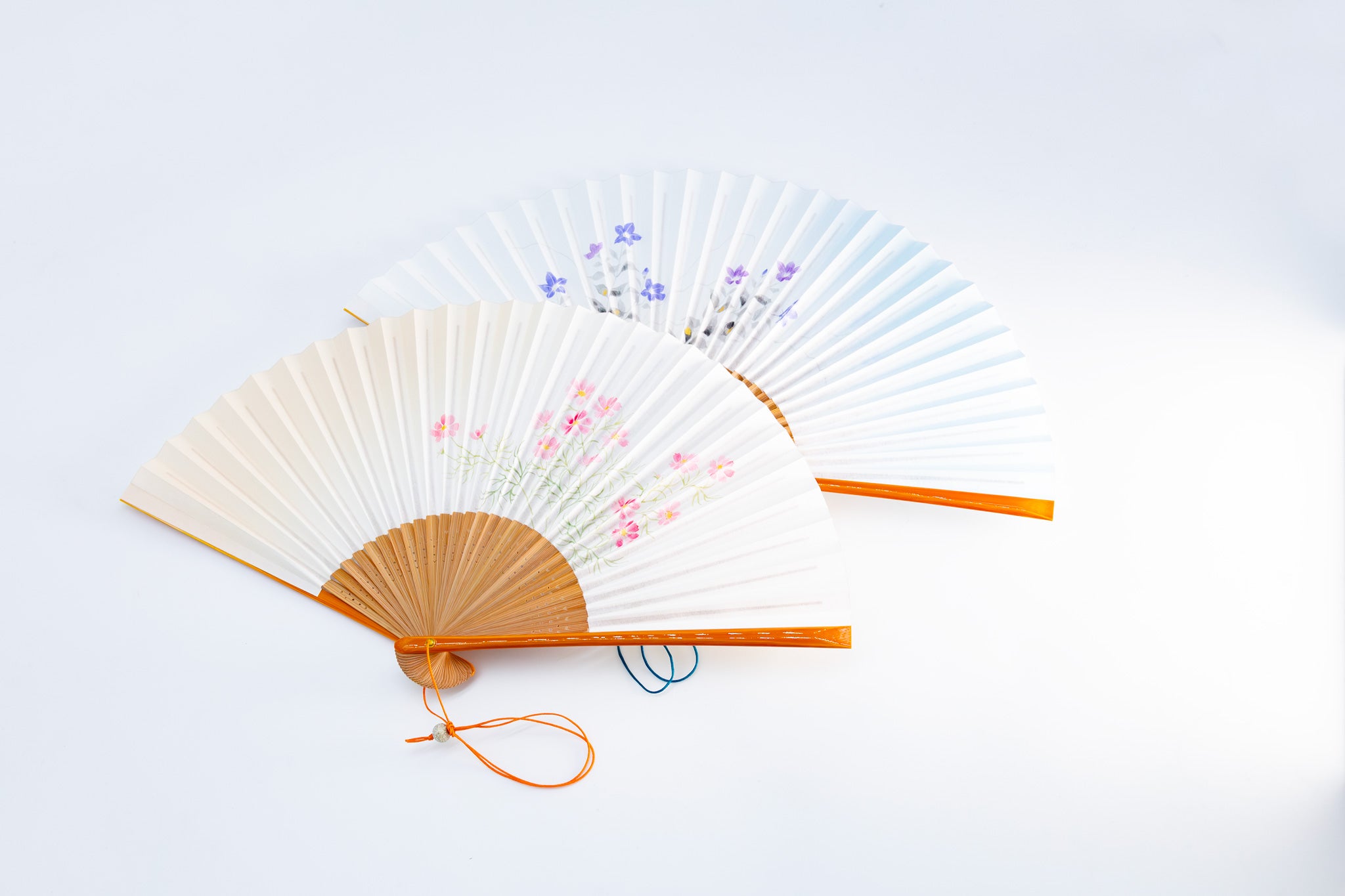 上品にさり気なく輝くパール加工を施した扇面には、手描きの花々が描かれています。