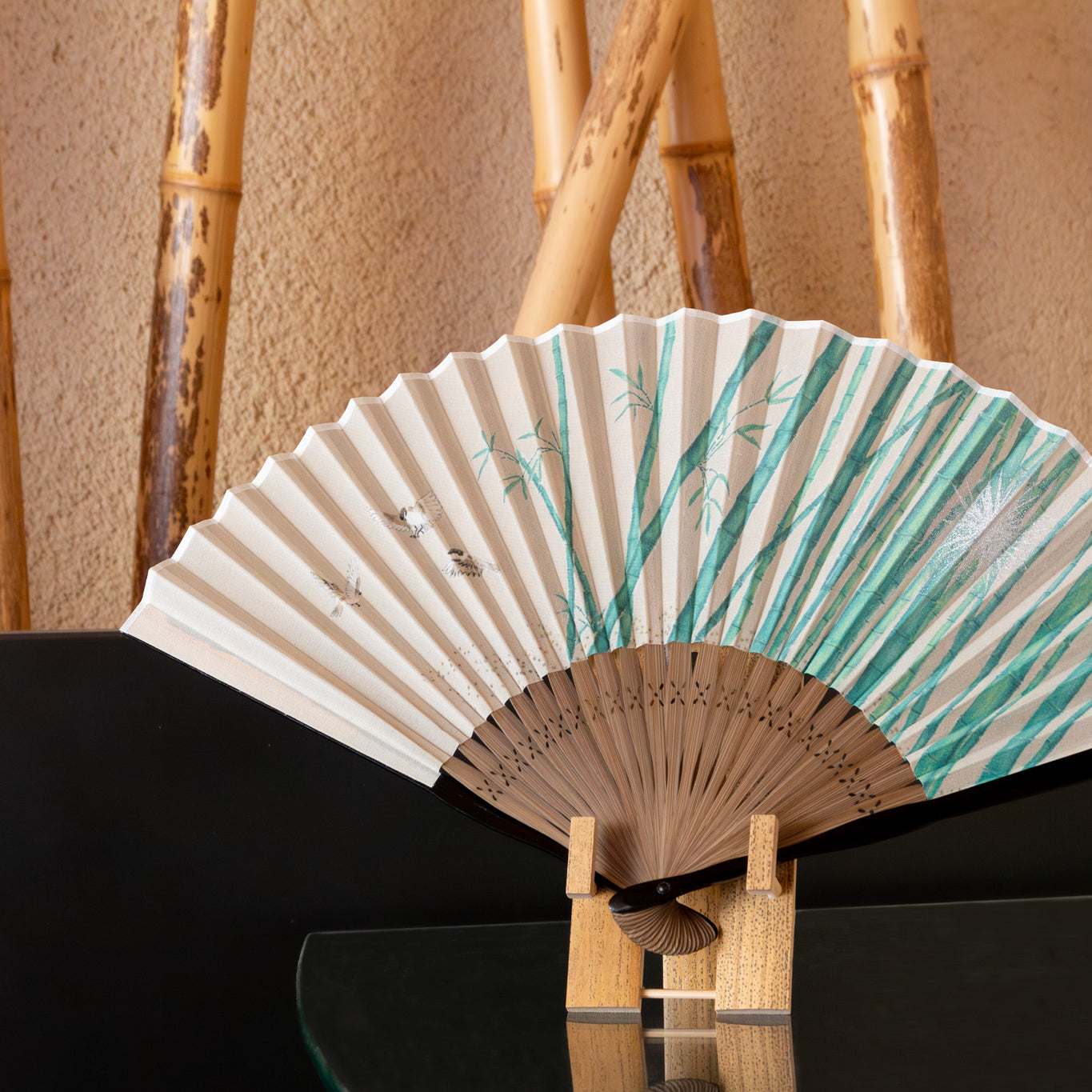 京扇子は、日本製の素材を用いて京都を中心に作られている扇子のことです。多くの職人たちにより分業で行われる京扇子づくりの制作工程数は八十八にもなります。美しさ・手へのなじみやすさ・しなやかな風が魅力です。